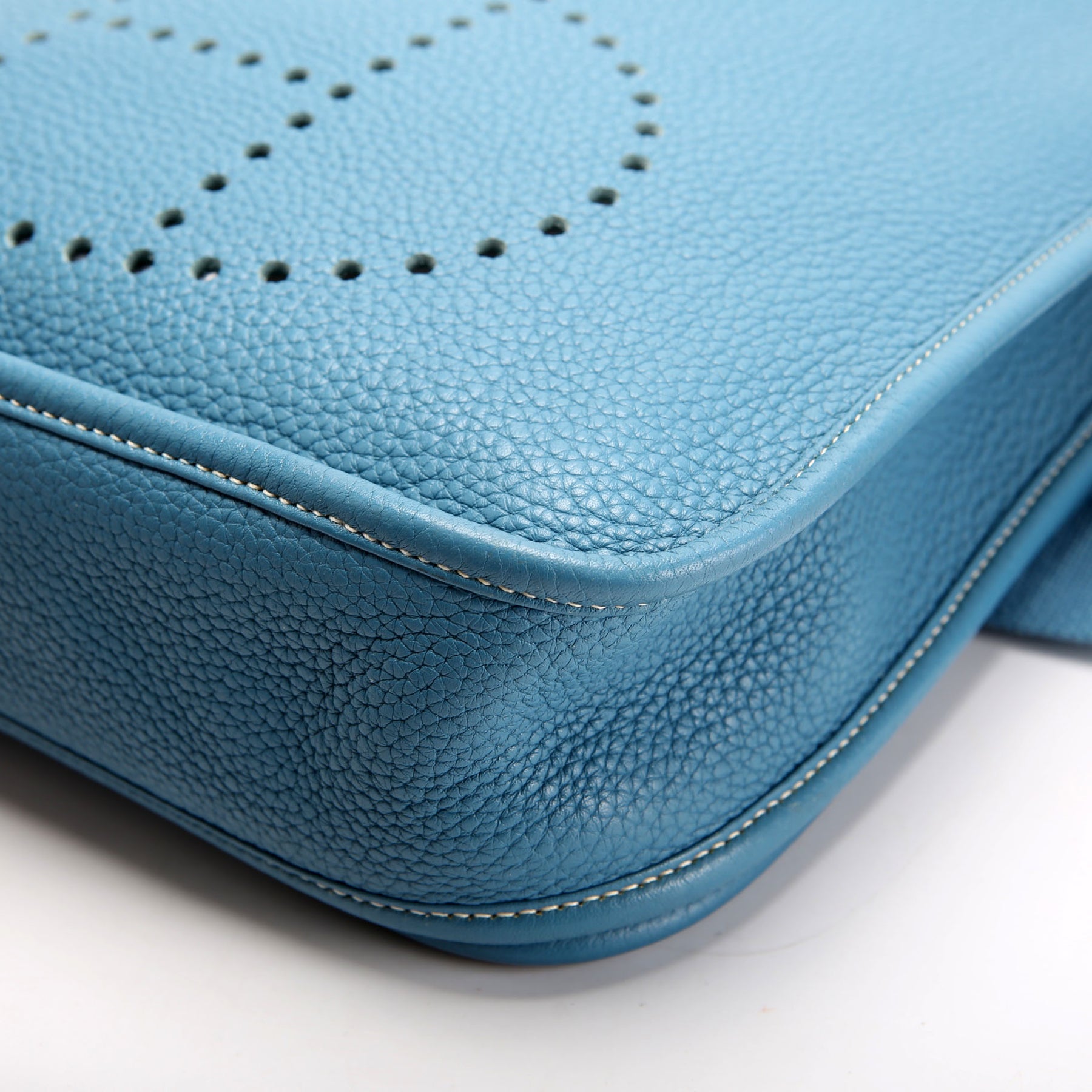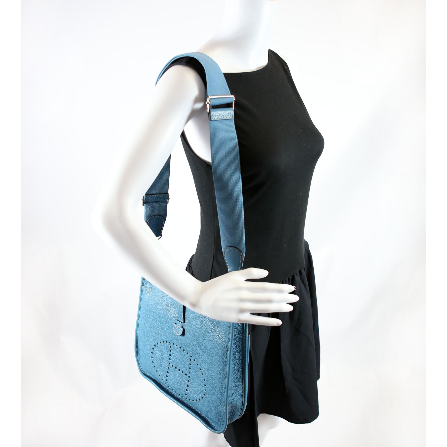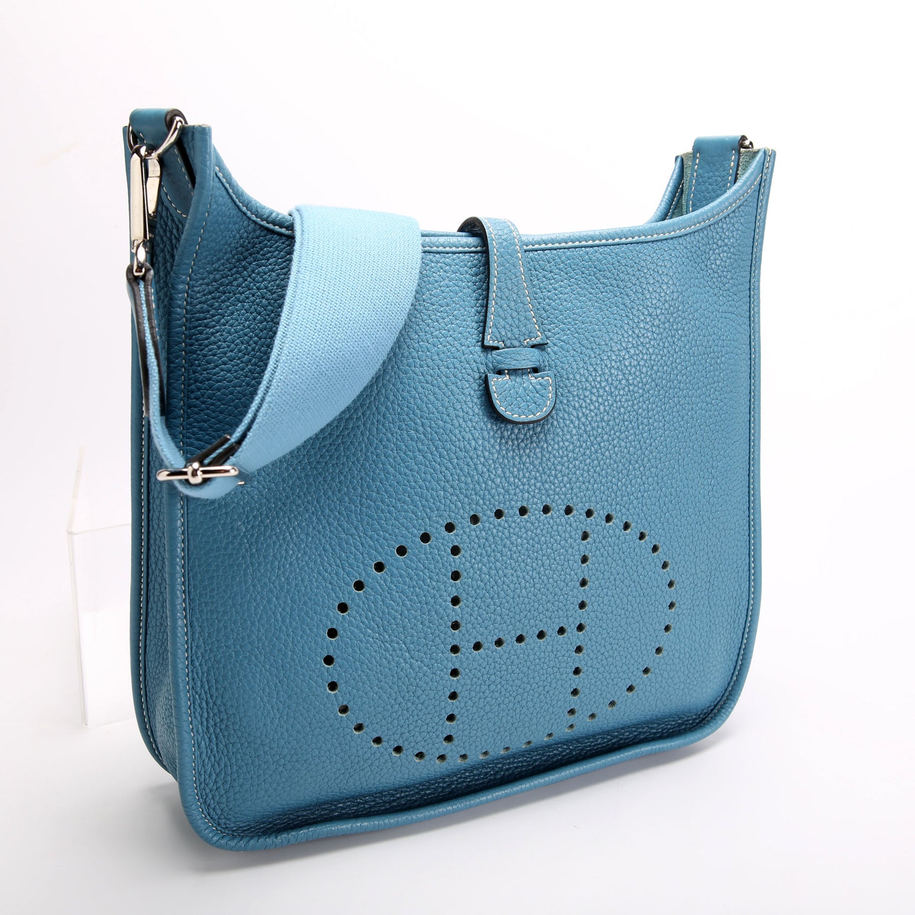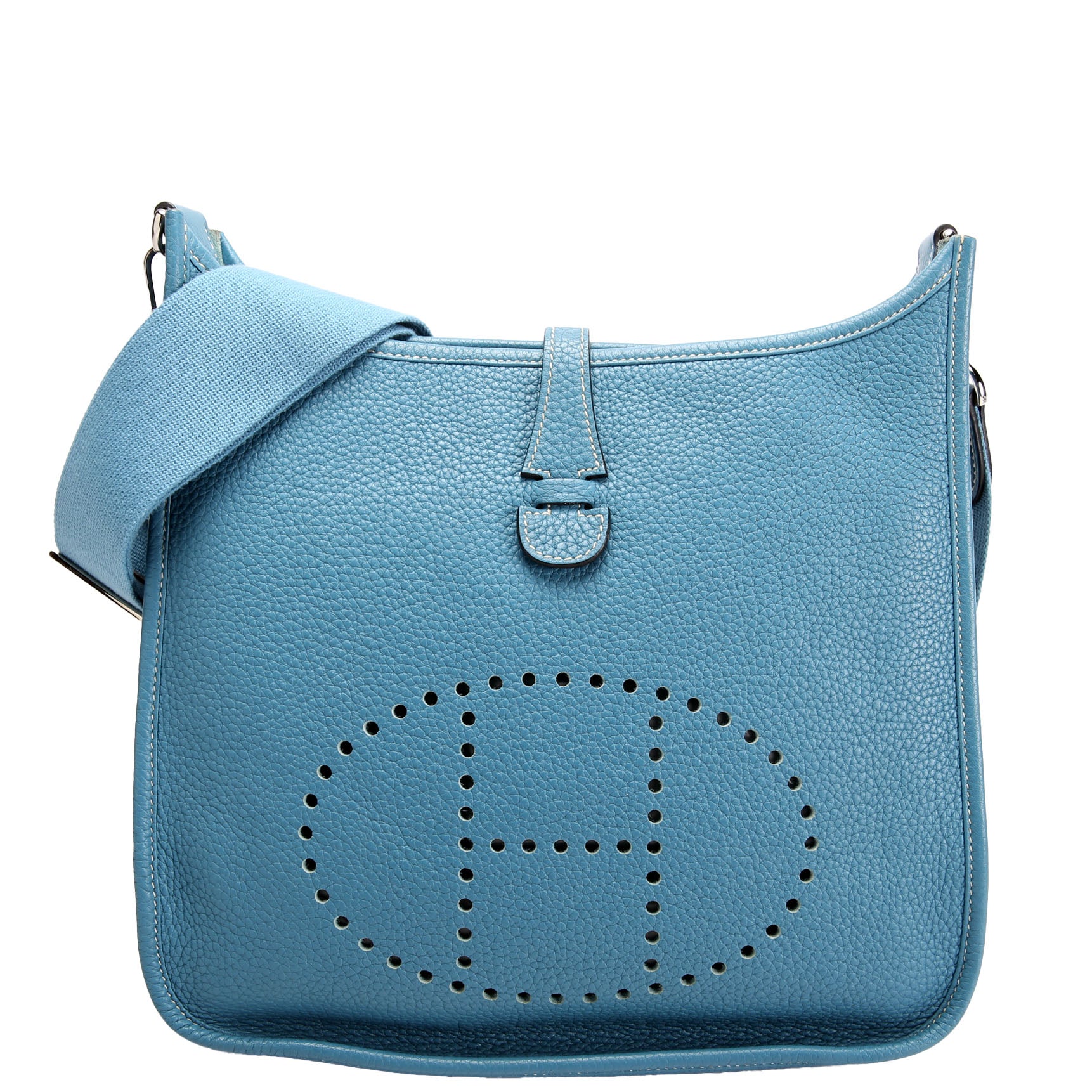 This pre-owned Hermes Evelyne III PM is guaranteed 100% authentic. The exterior is in the classic Hermes Clemence Leather