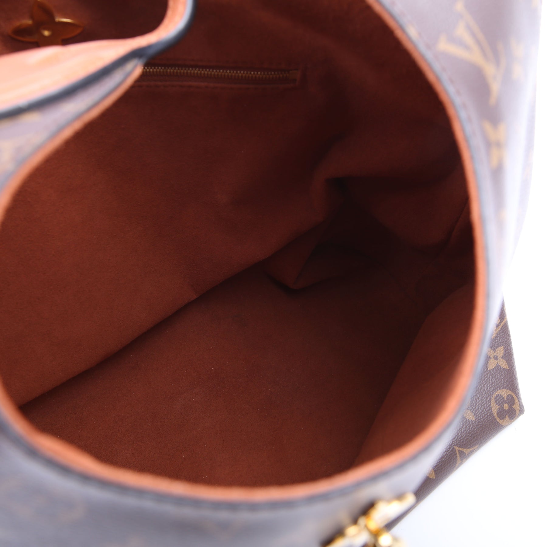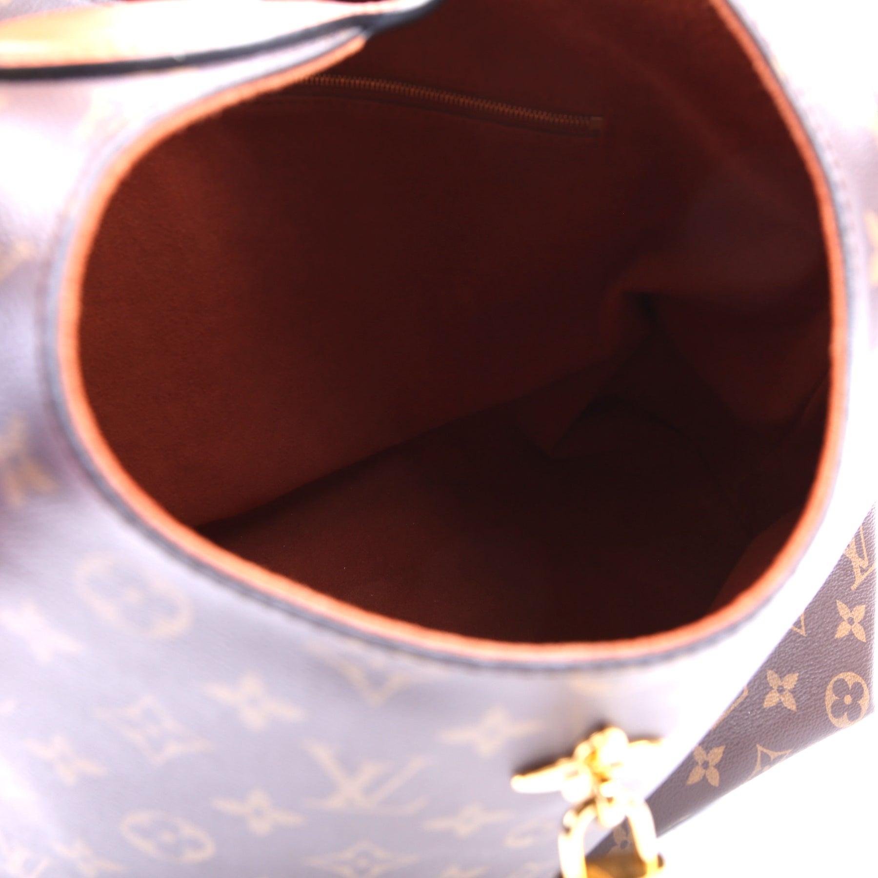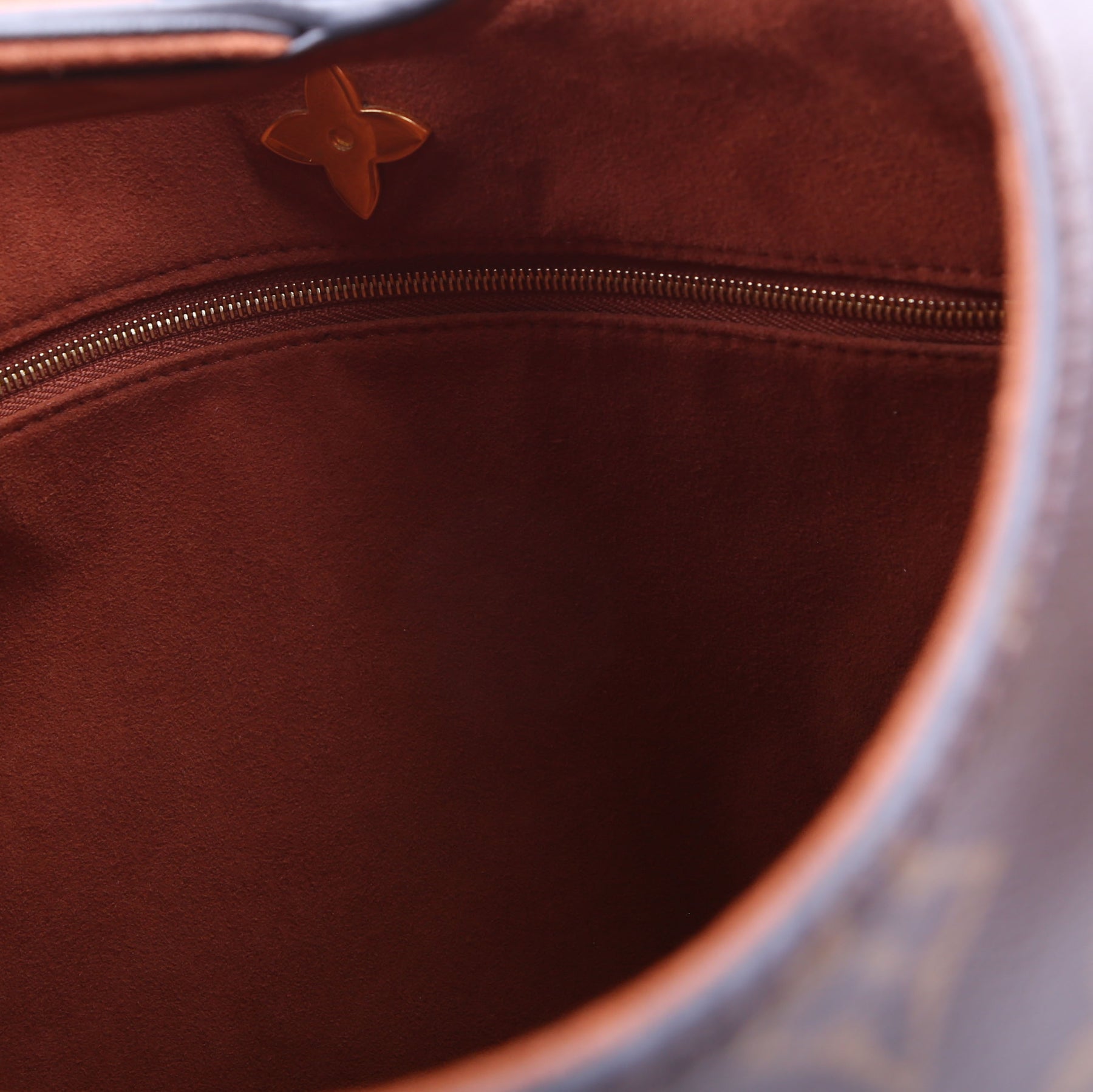 This pre-owned Louis Vuitton Flower Hobo is guaranteed 100% authentic. The exterior is in the classic Louis Vuitton Monogram coated canvas.