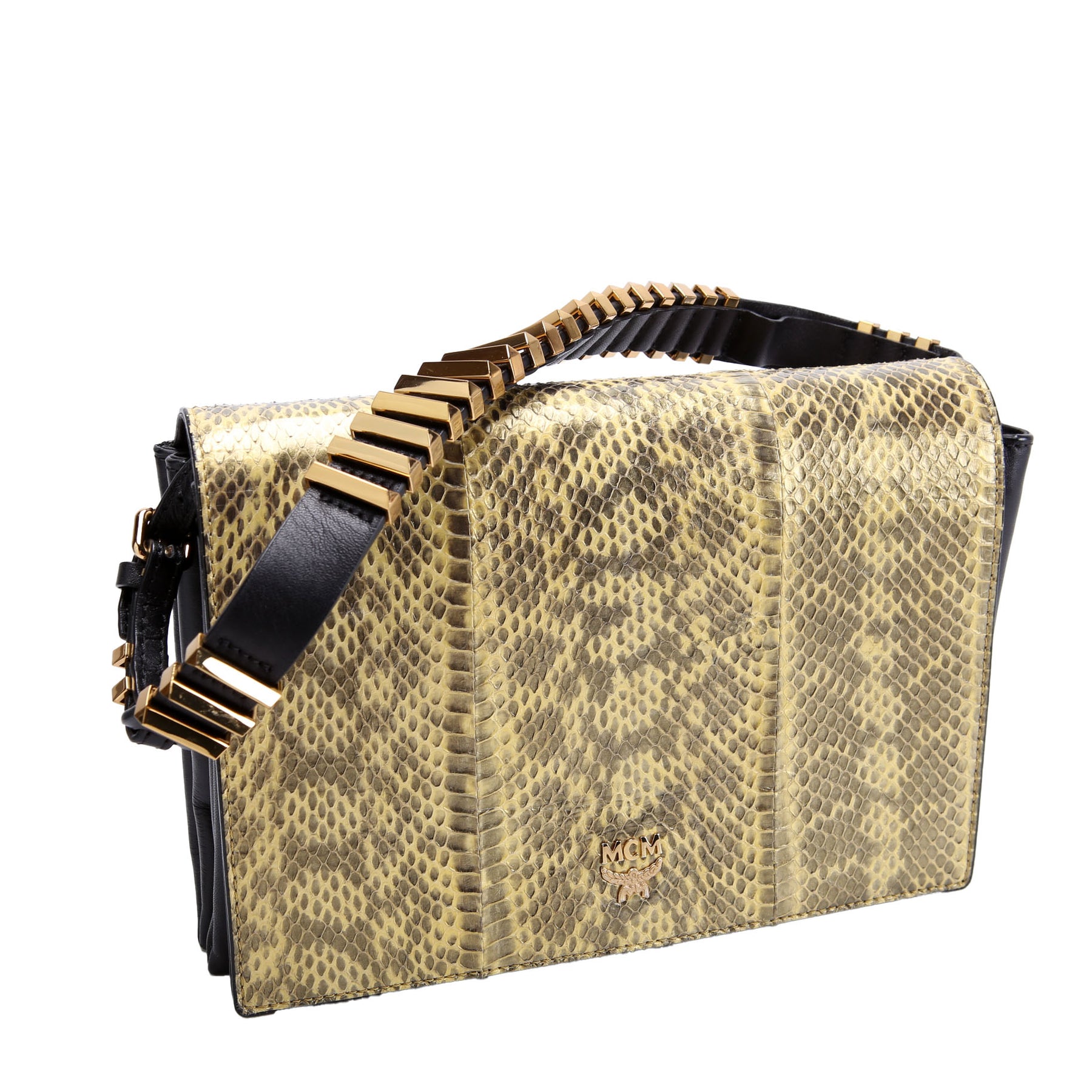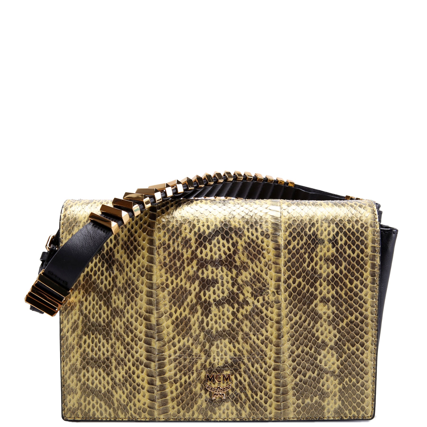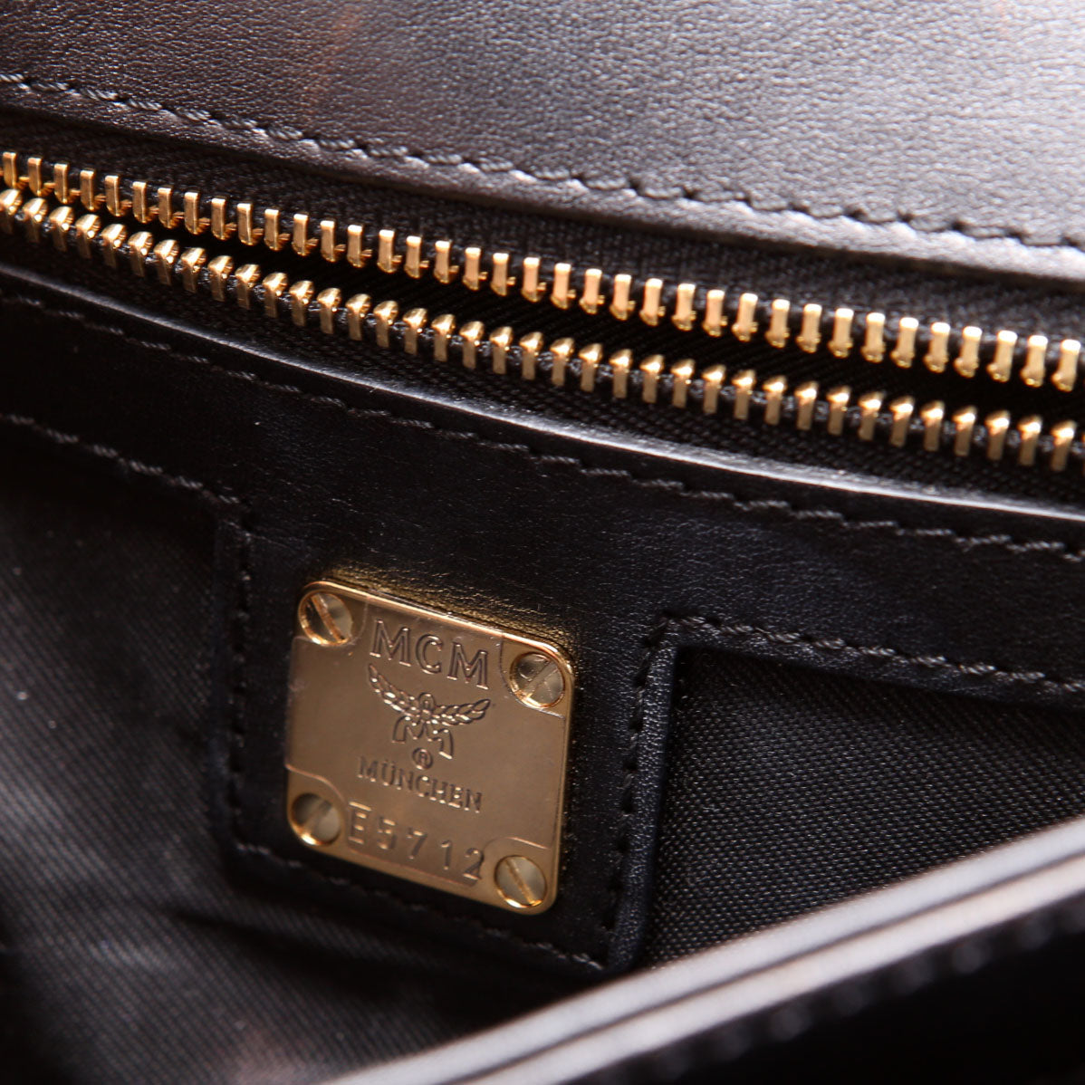 This pre-owned MCM Fold Over Crossbody is guaranteed 100% authentic. The exterior is in the classic MCM Python and Visetos leather.