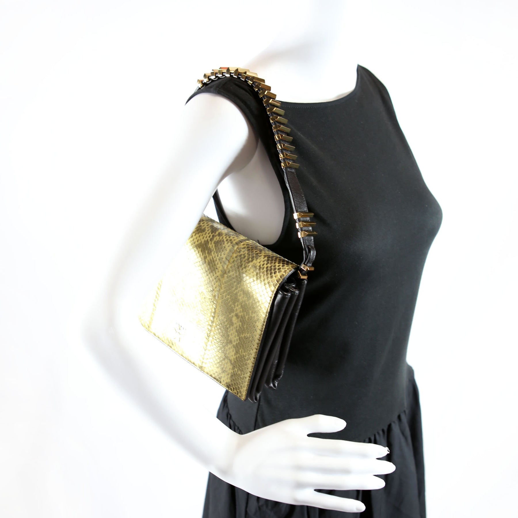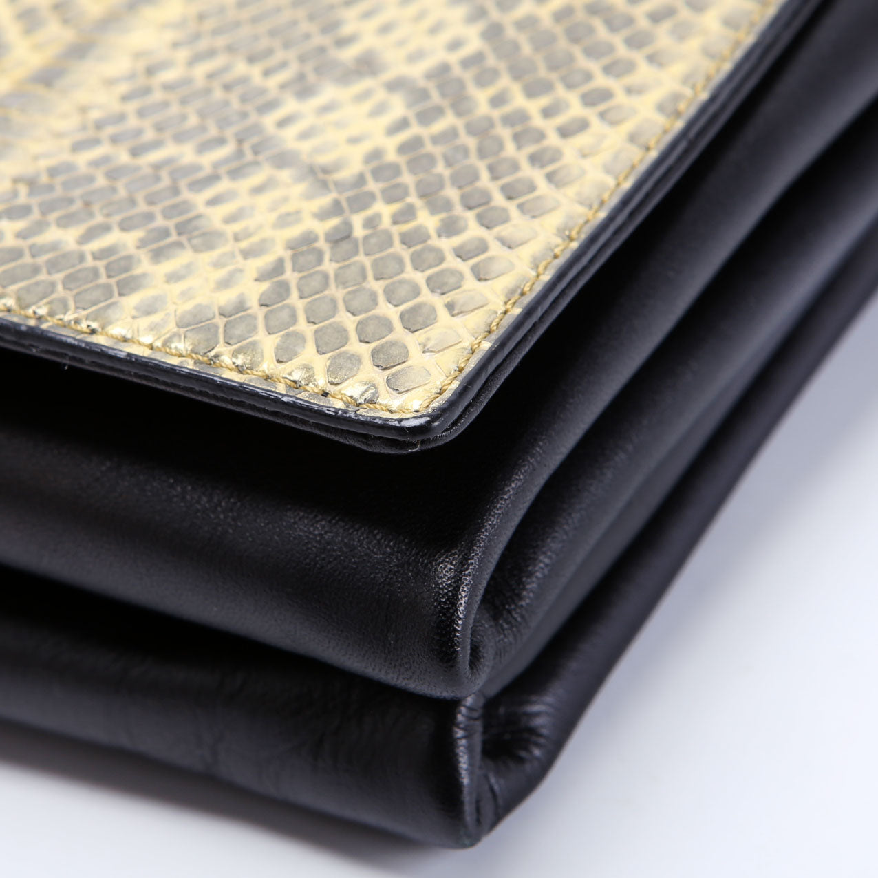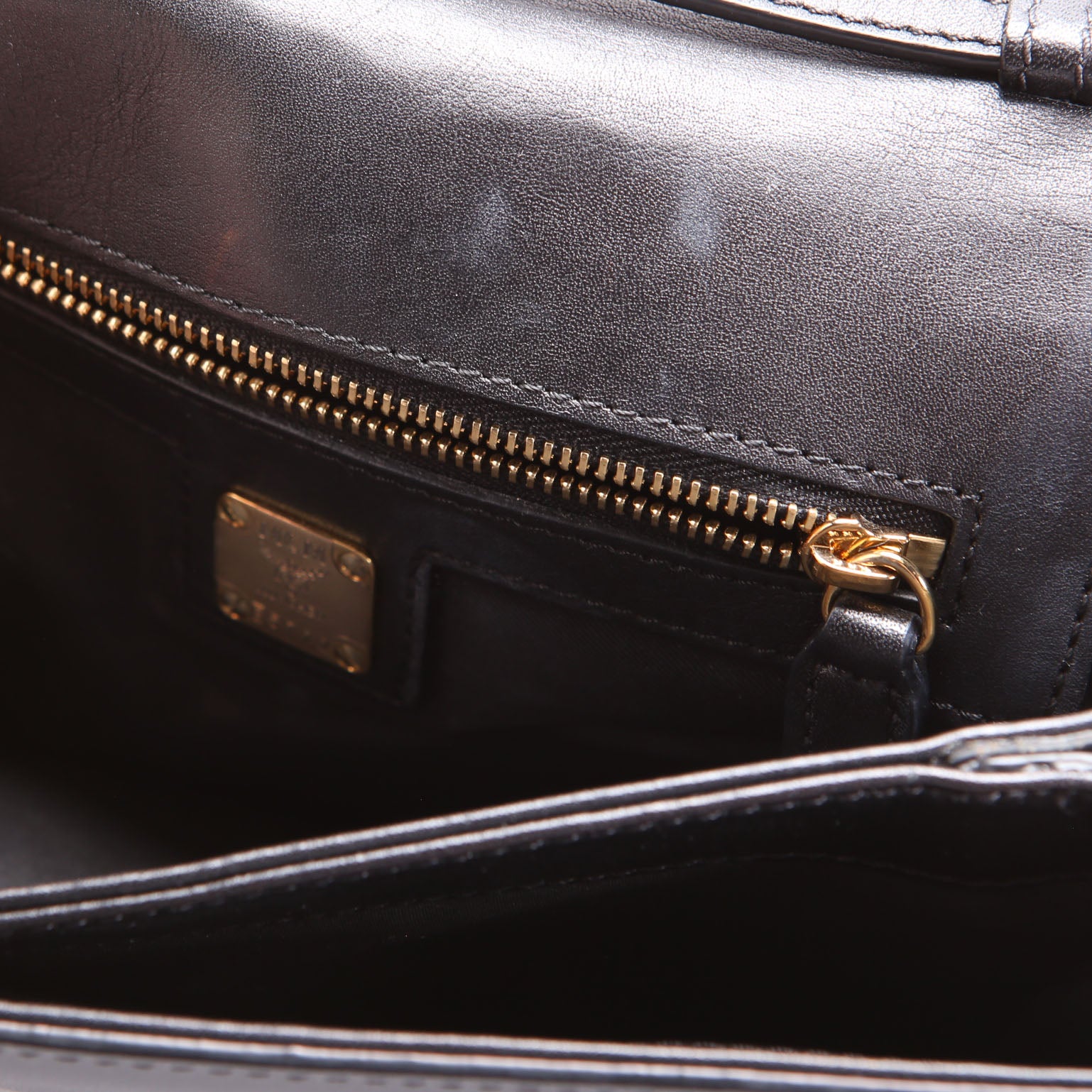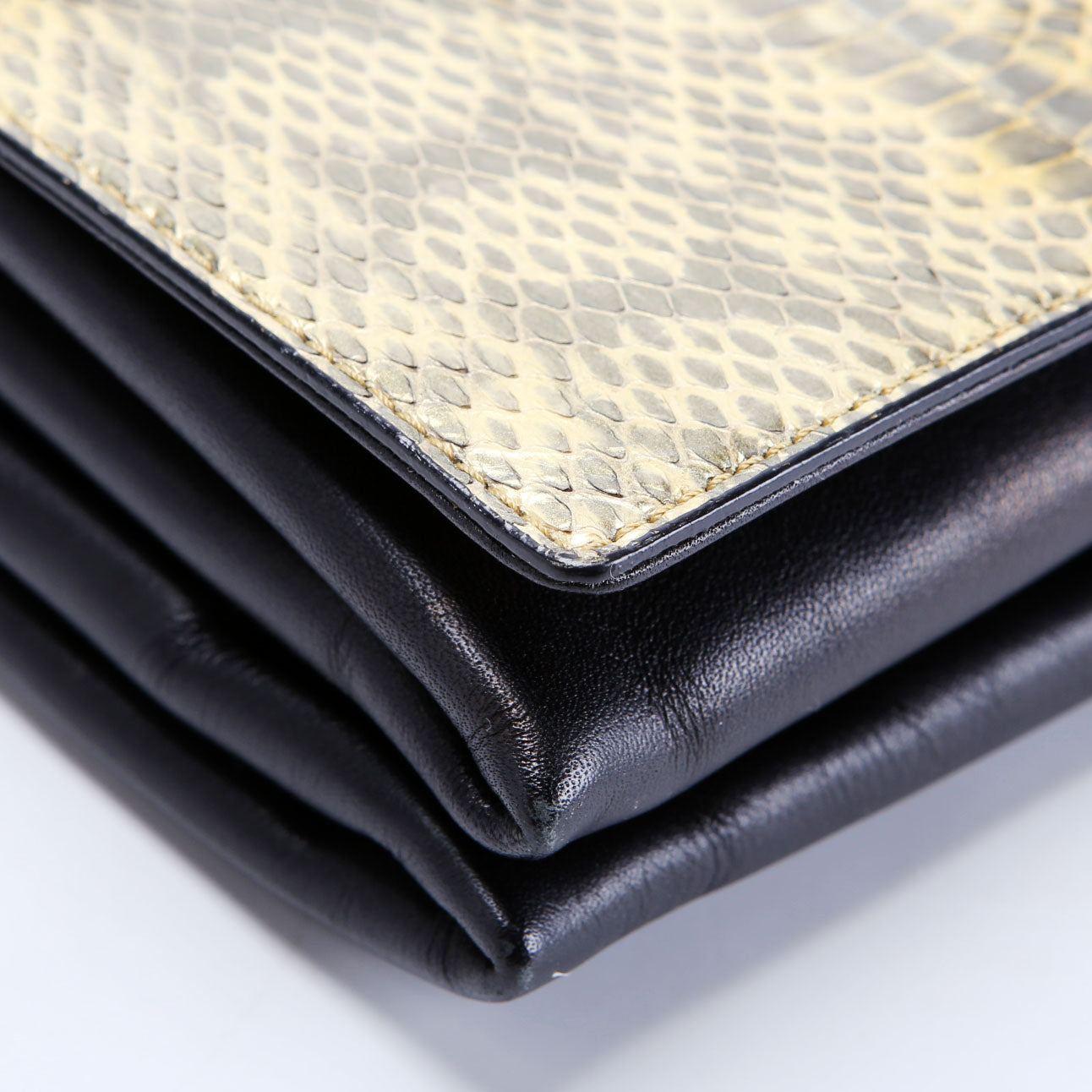 This pre-owned MCM Fold Over Crossbody is guaranteed 100% authentic. The exterior is in the classic MCM Python and Visetos leather.