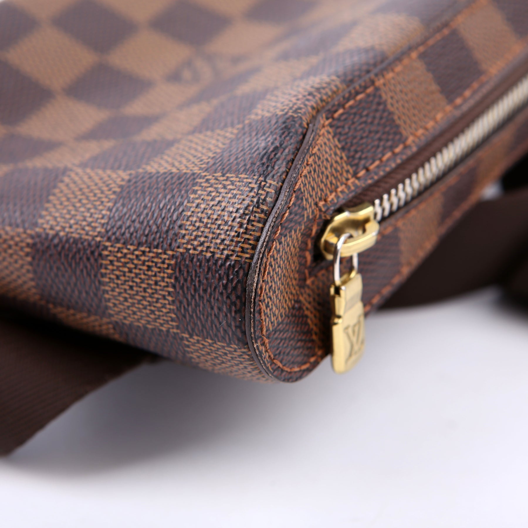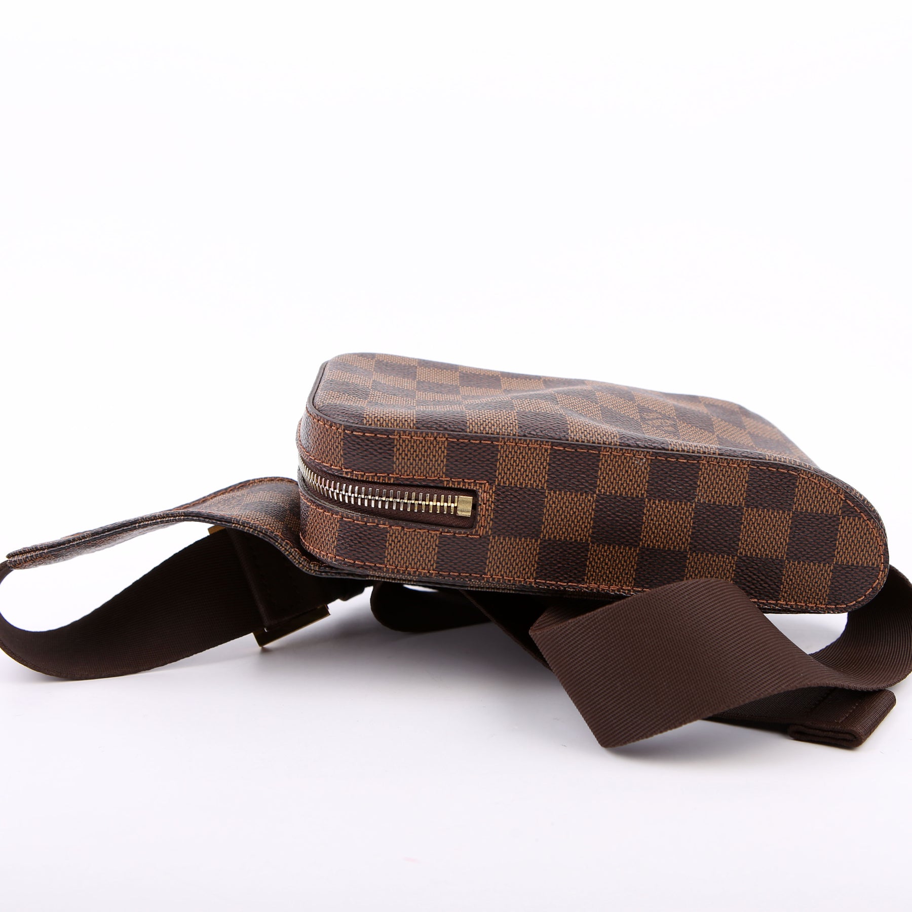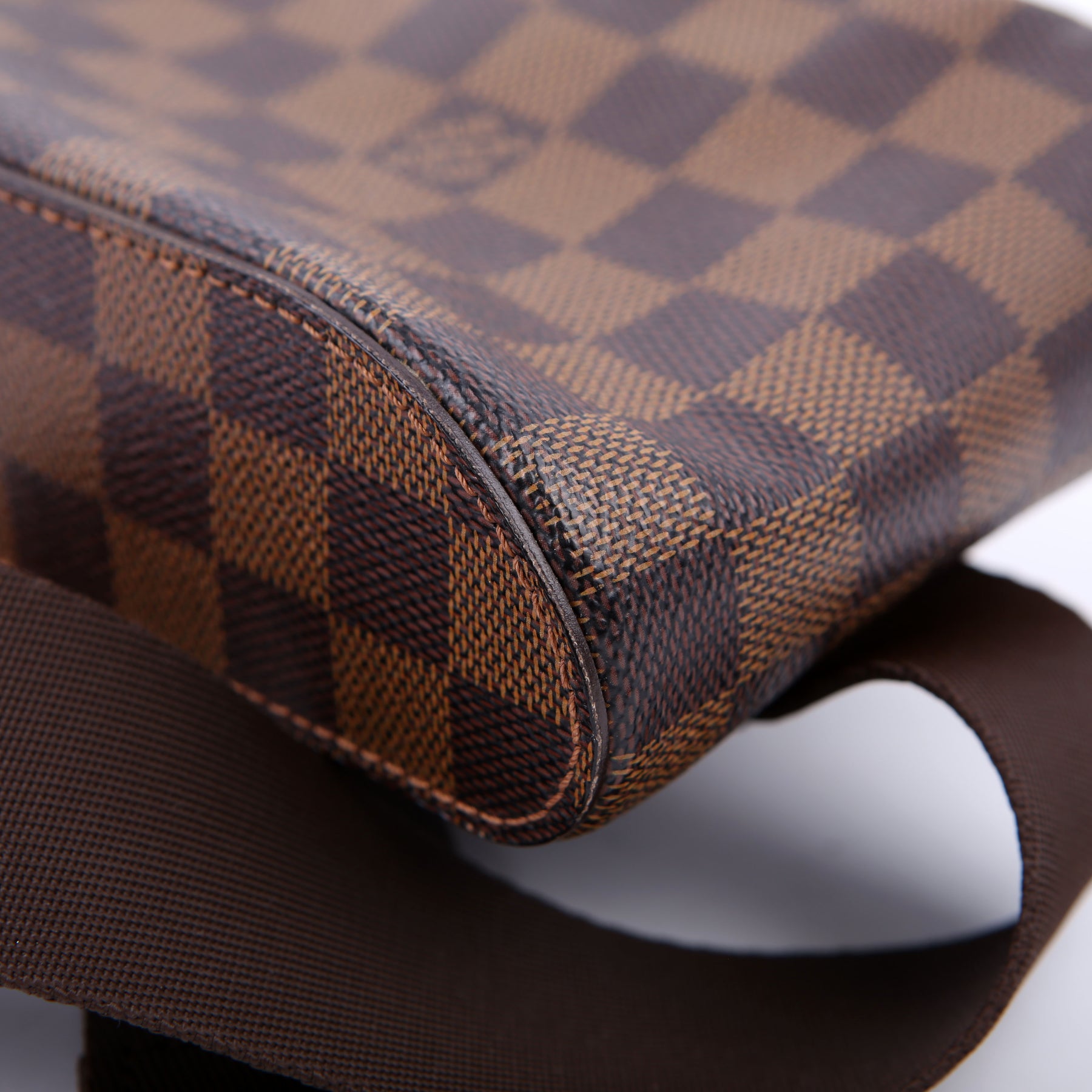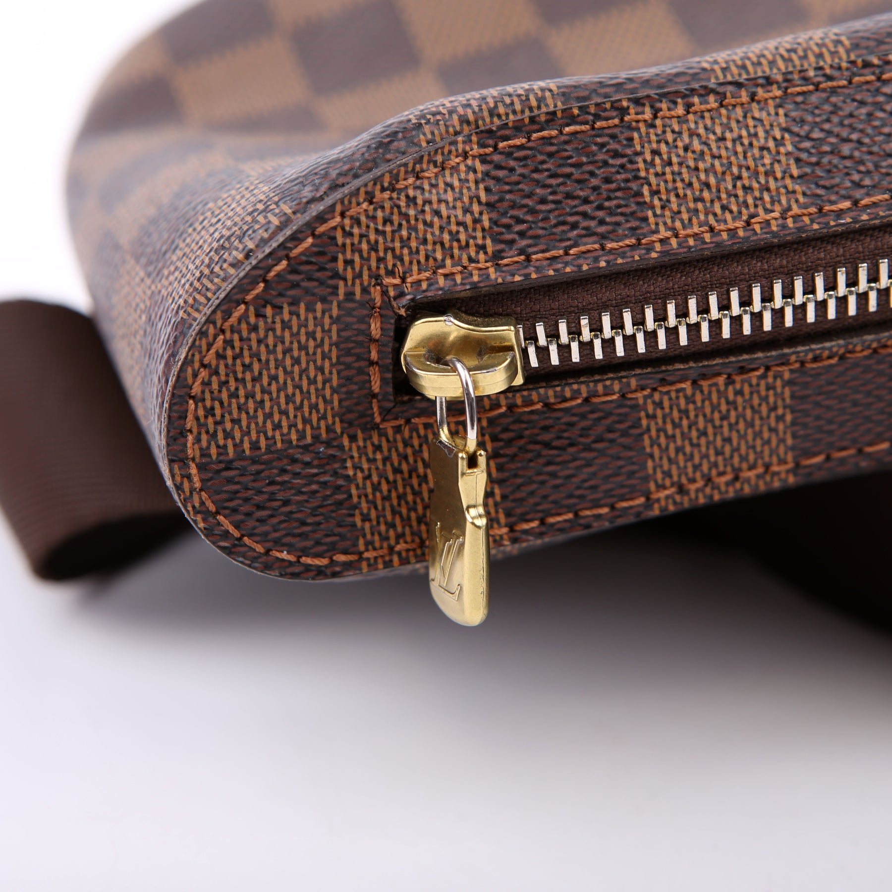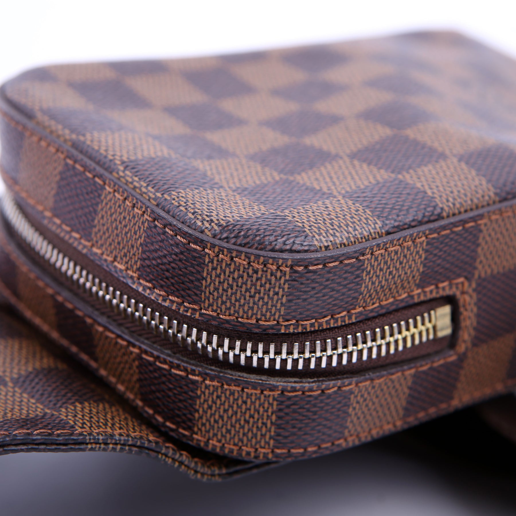 This pre-owned Louis Vuitton Geronimos is guaranteed 100% authentic. The exterior is in the classic Louis Vuitton Damier Ebene coated canvas.