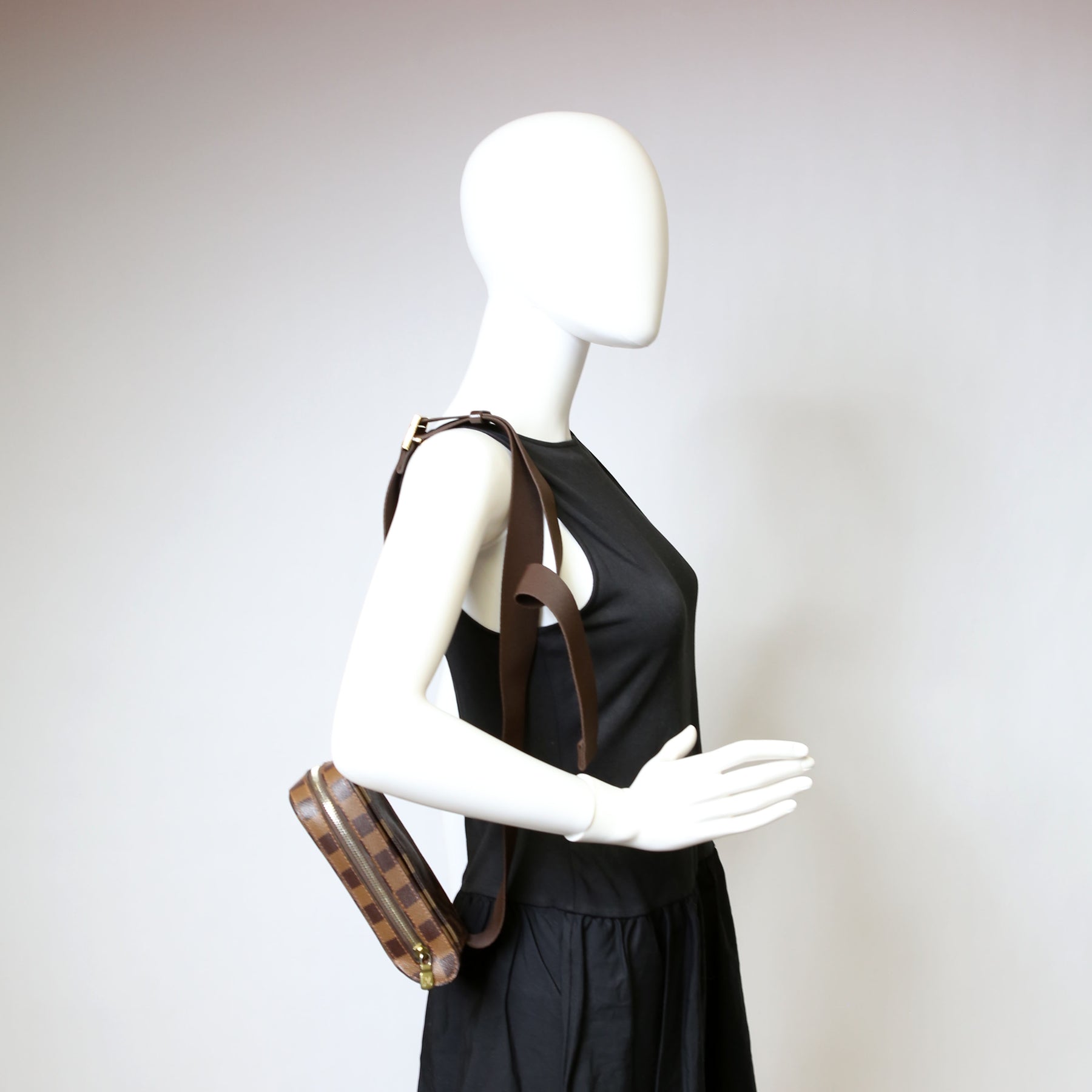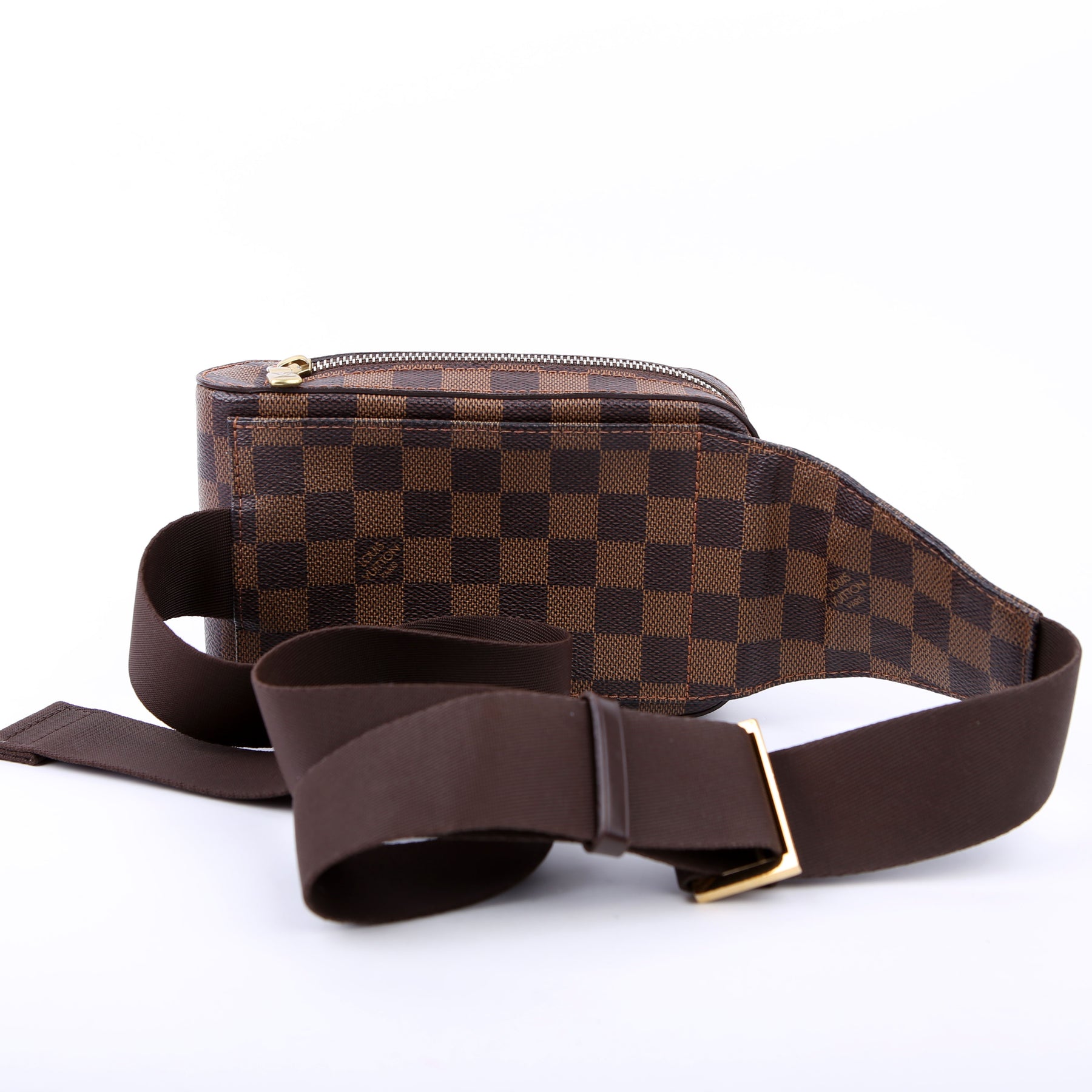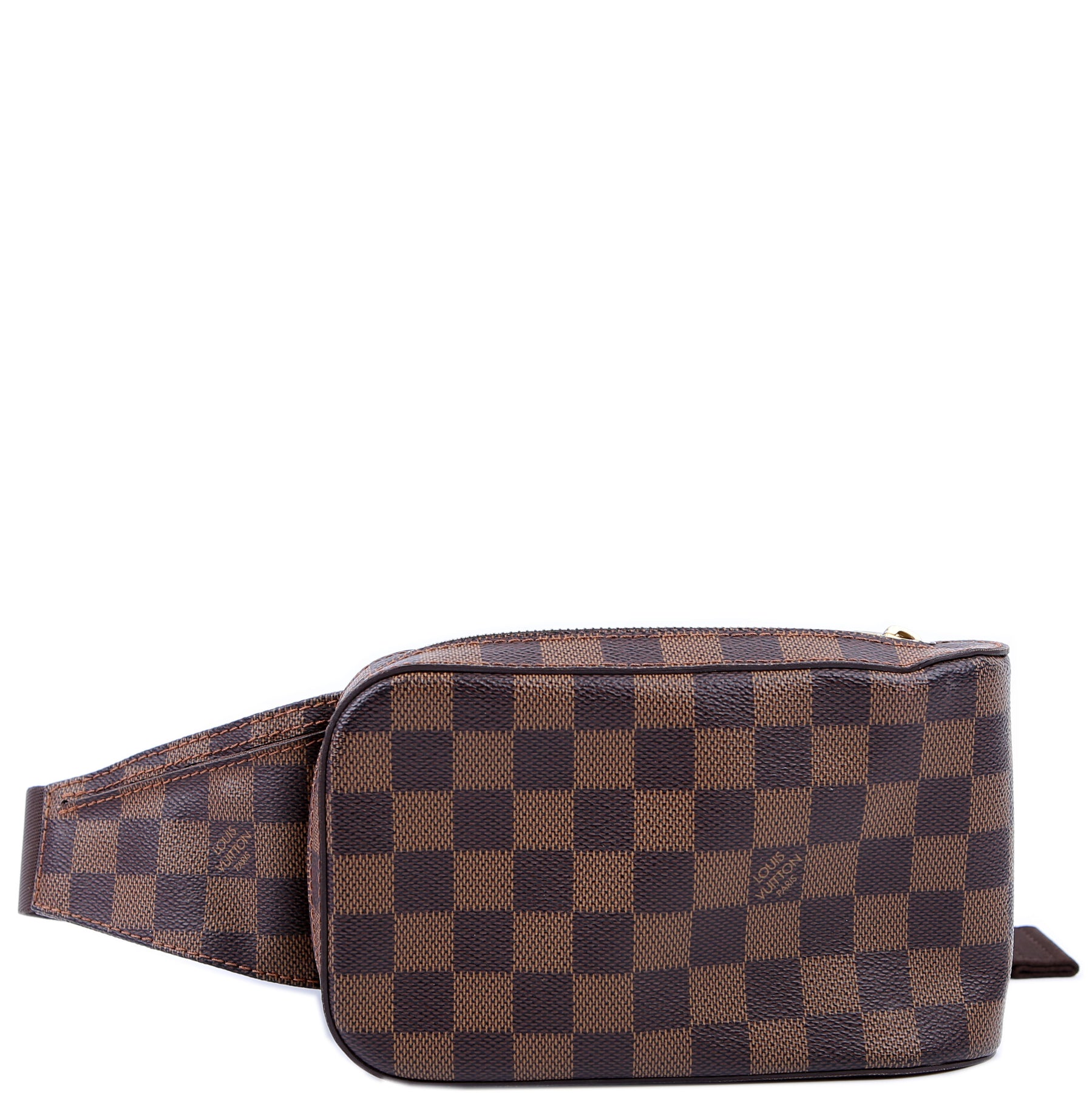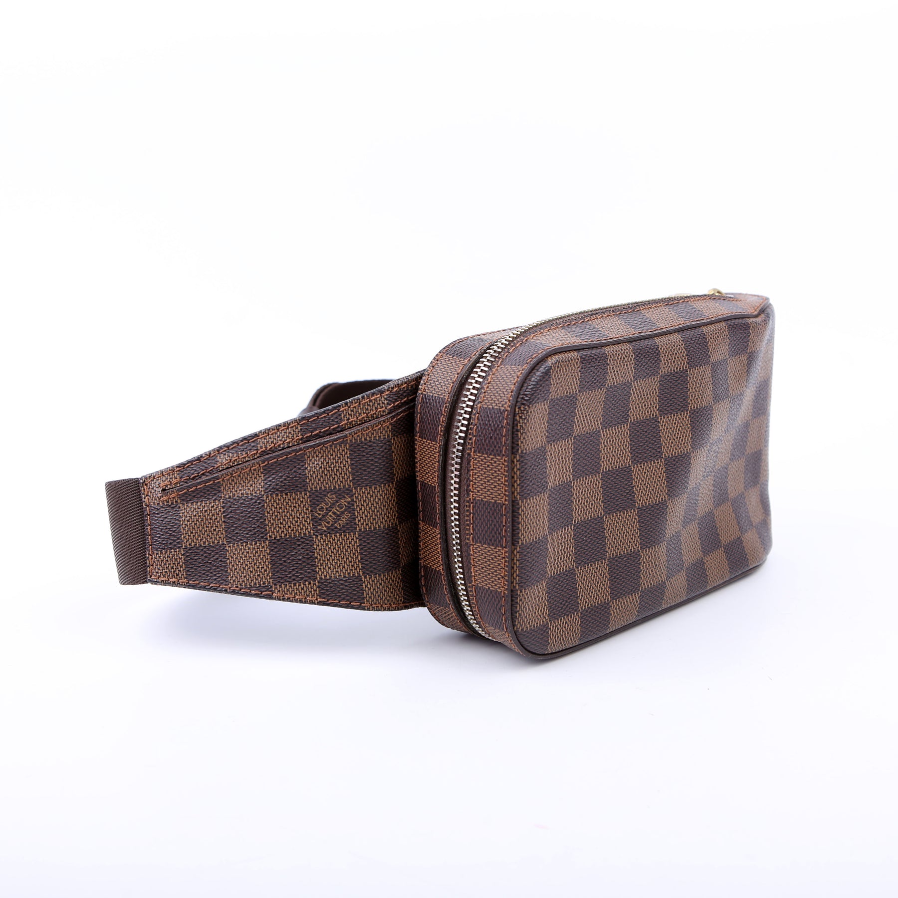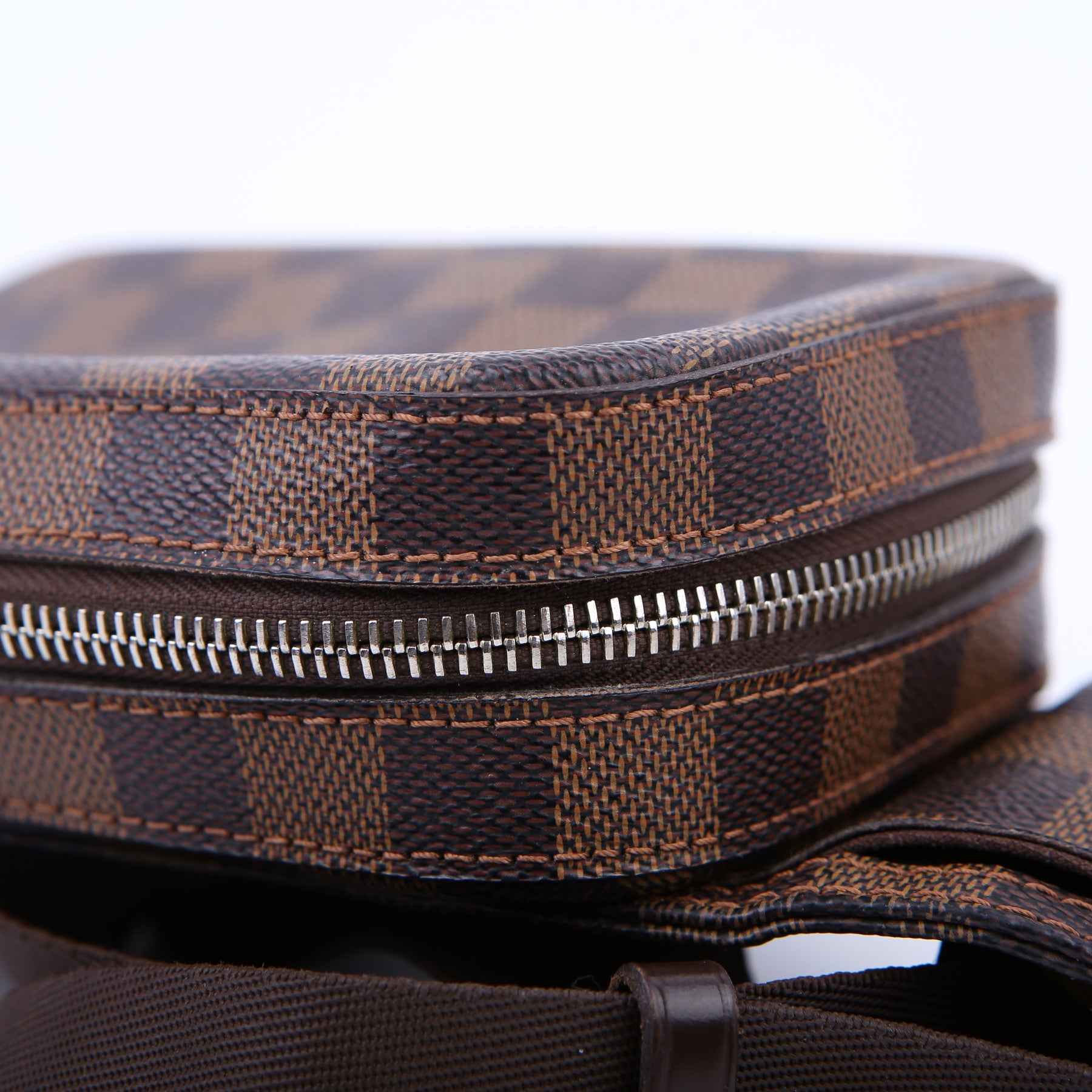 This pre-owned Louis Vuitton Geronimos is guaranteed 100% authentic. The exterior is in the classic Louis Vuitton Damier Ebene coated canvas.
