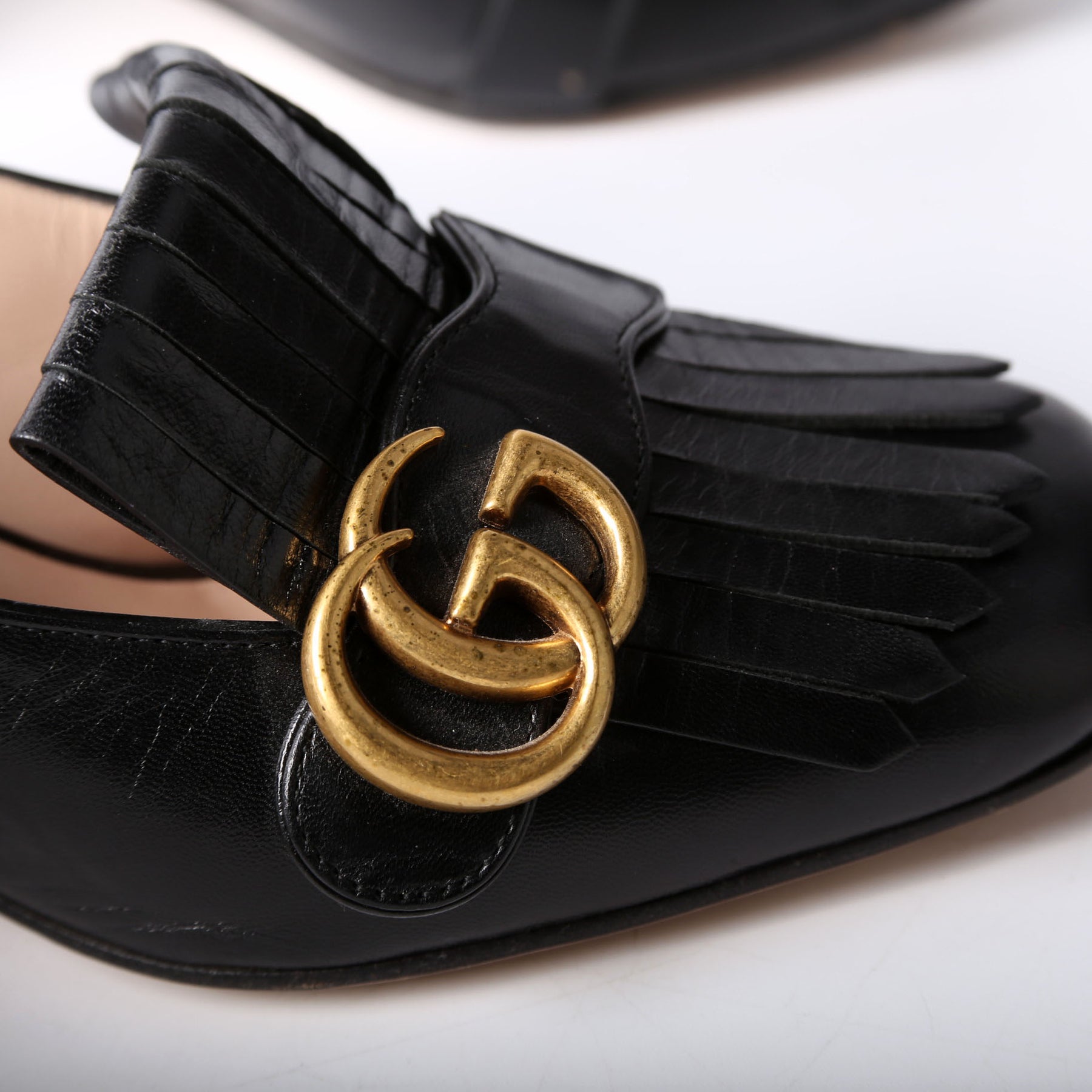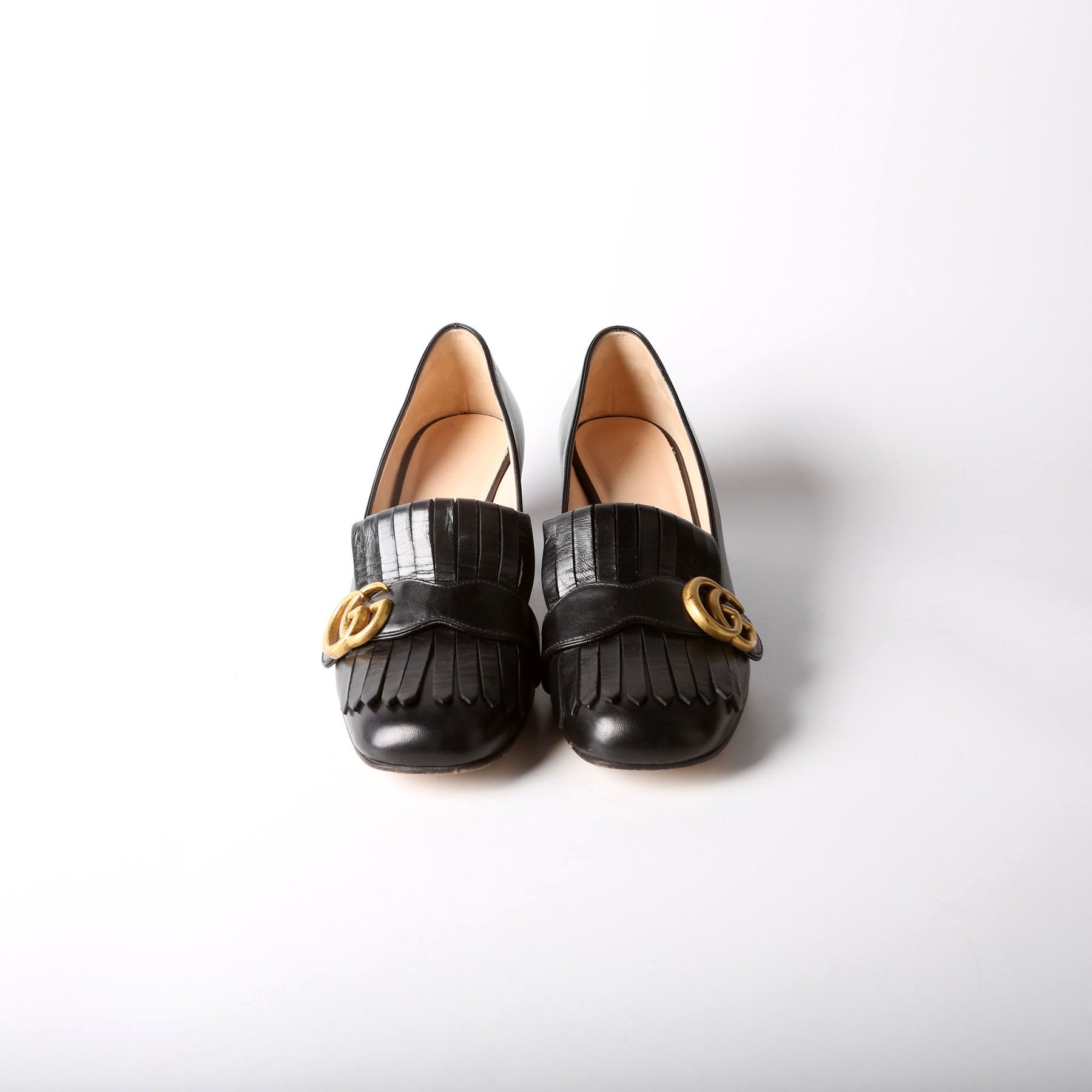 These pre-owned Gucci GG Marmont Fringe Loafers are guaranteed 100% authentic.