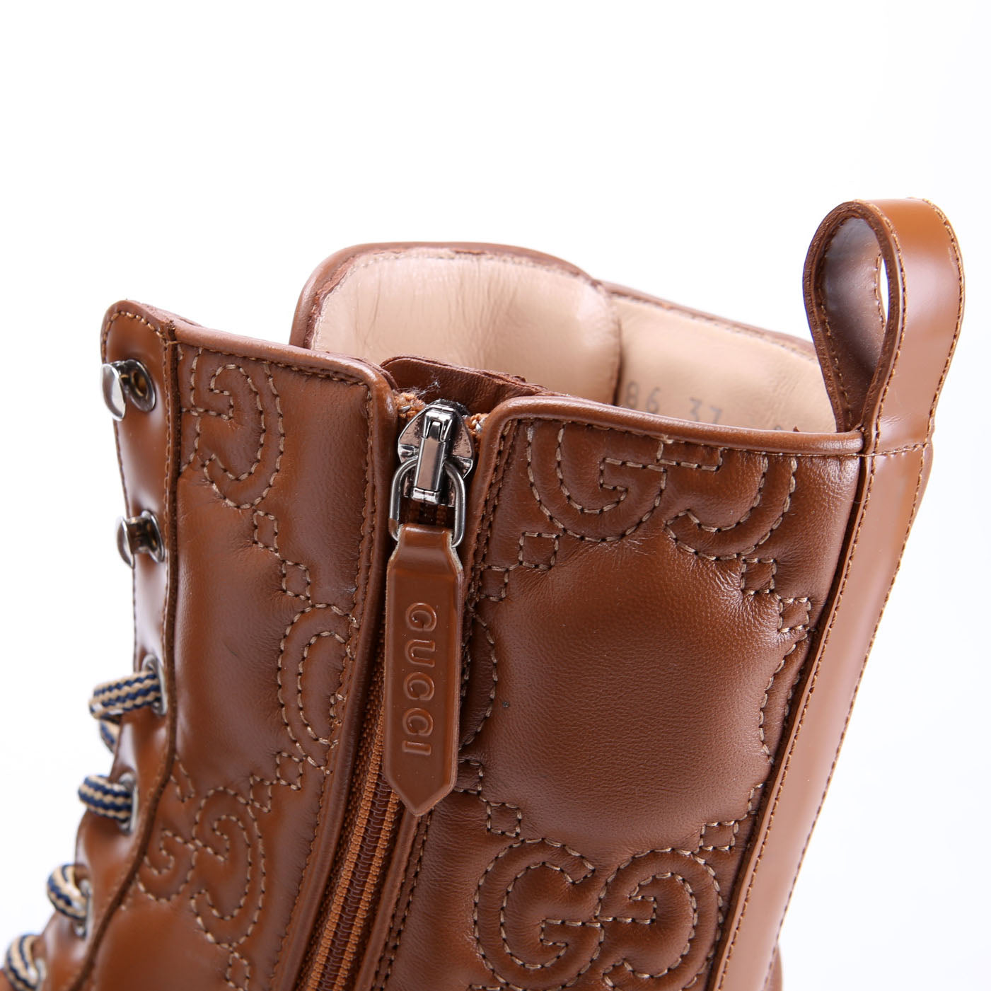 These pre-owned GG Matelasse Lace Up Boots are guaranteed 100% authentic.