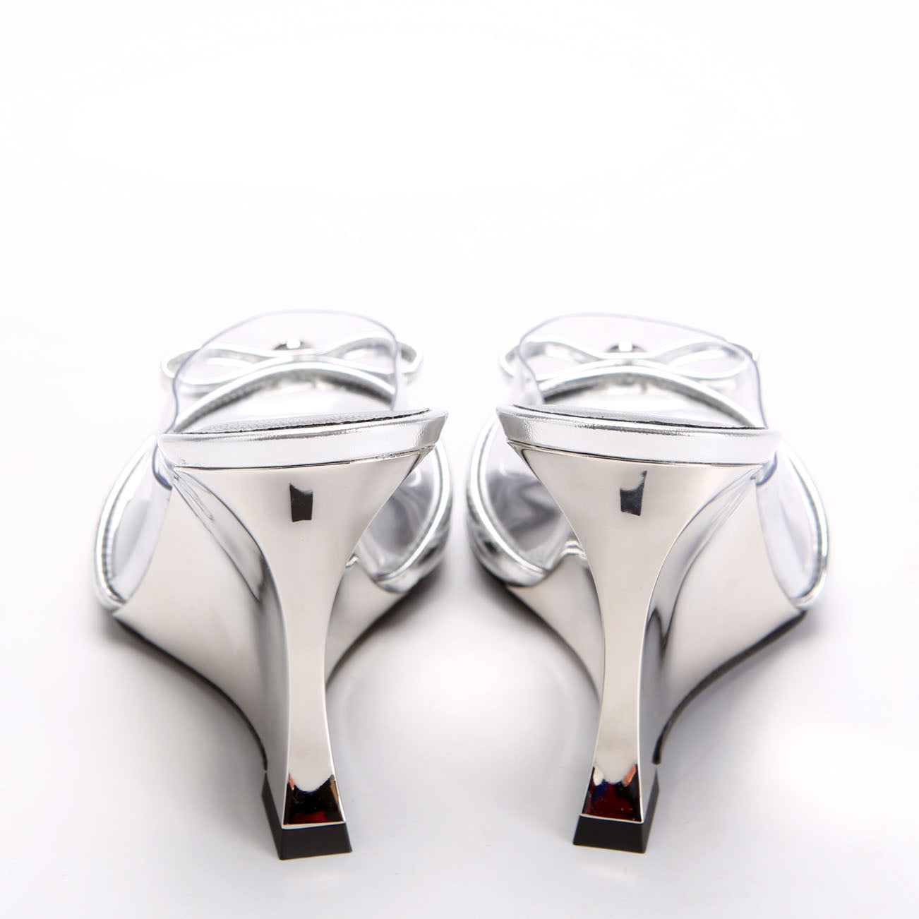 Gianni Ribbon 95MM Wedge Mule Size 36 Silver