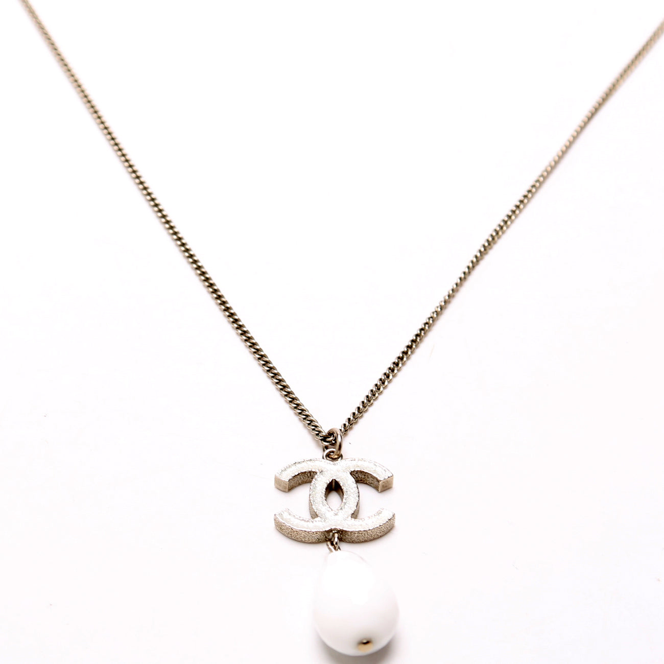 This pre-owned Chanel Glitter CC Resin Teardrop Necklace is guaranteed 100% authentic.