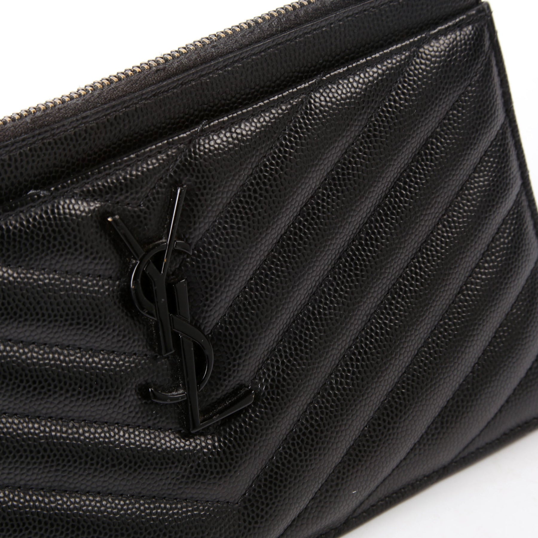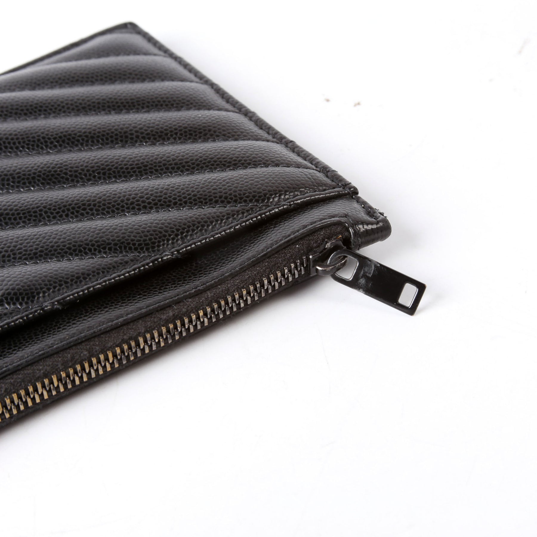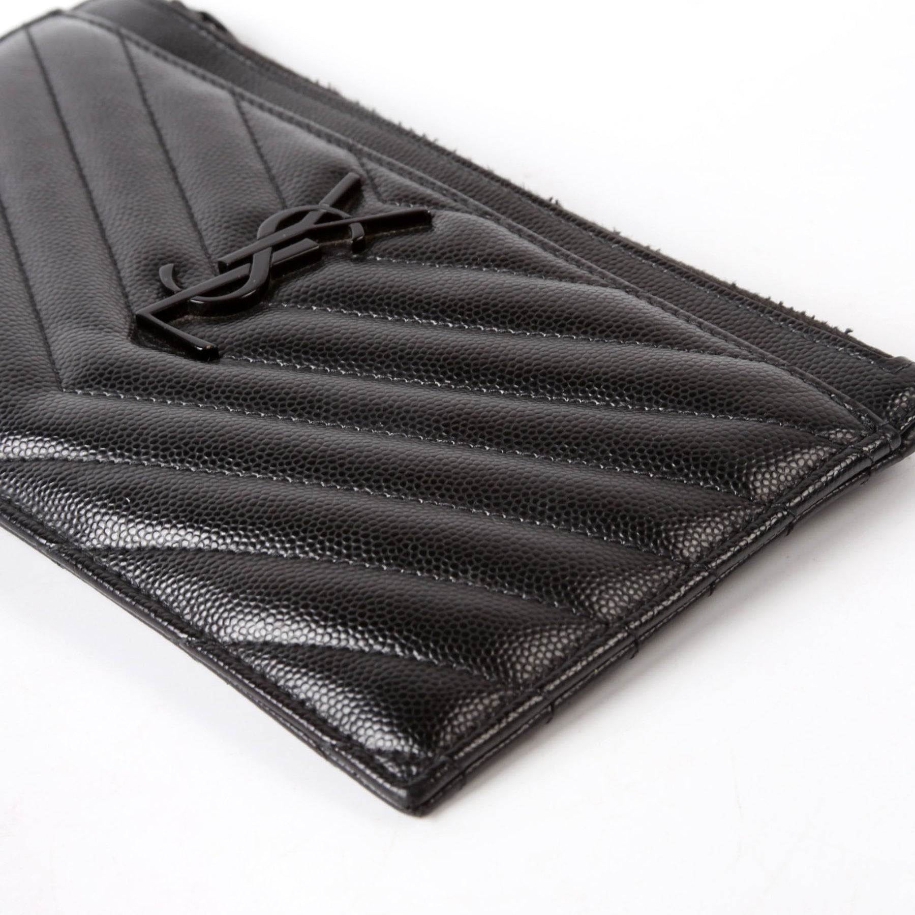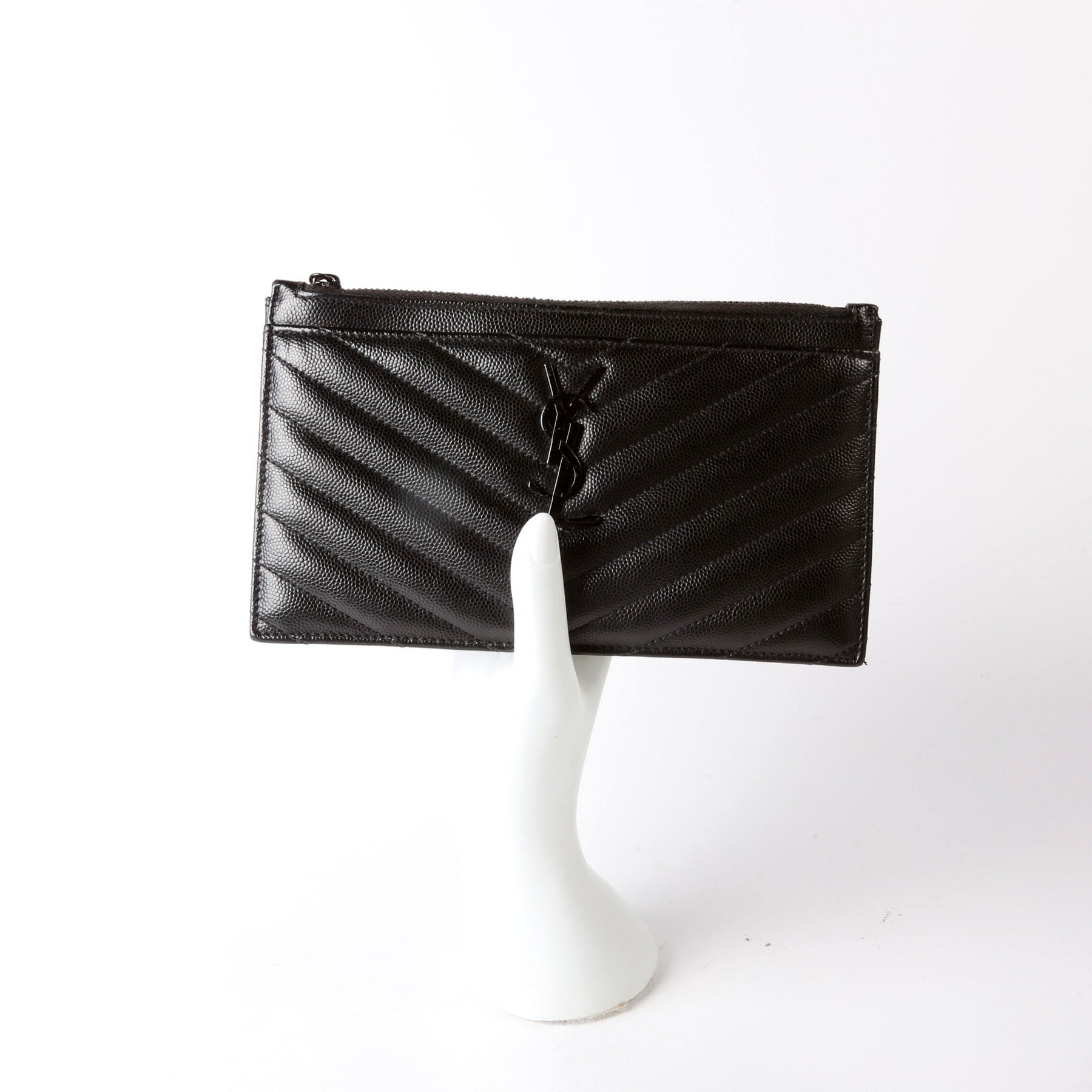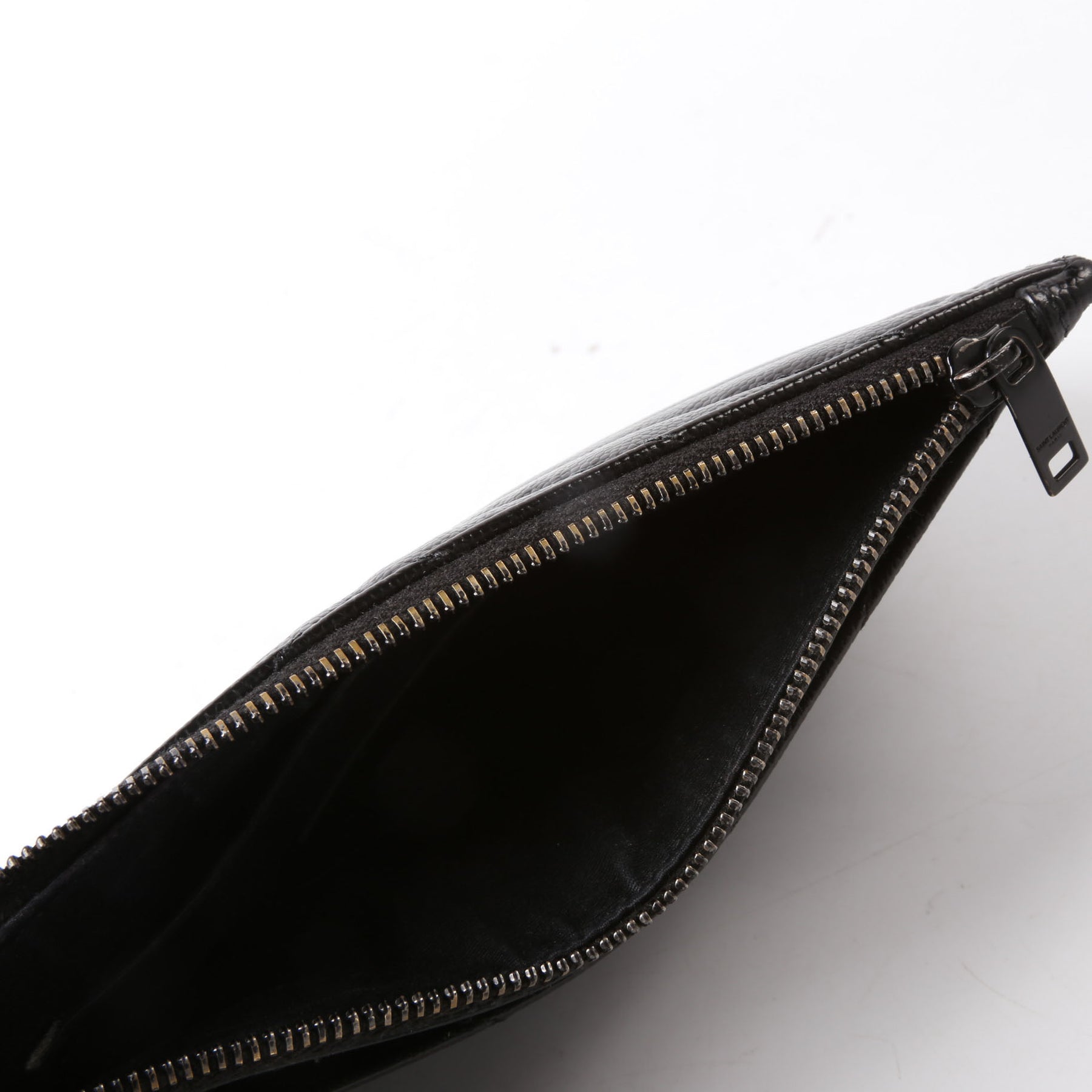 This pre-owned Saint Laurent Bill Pouch is guaranteed 100% authentic. The exterior is in the classic Saint Laurent Grain De Poudre leather.