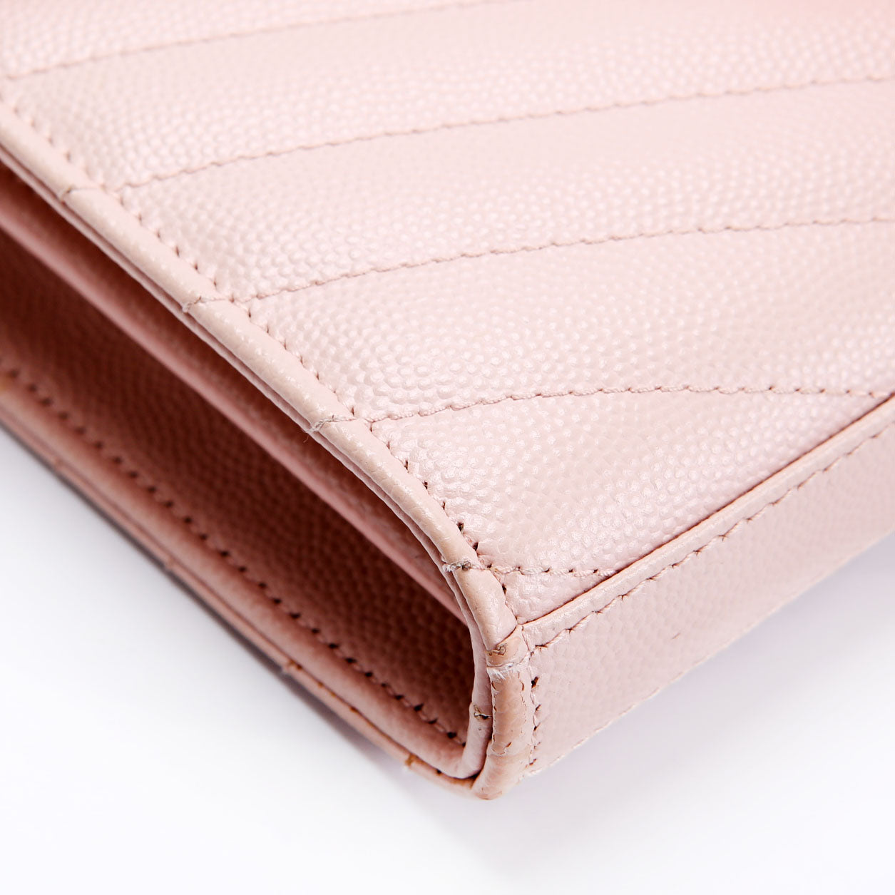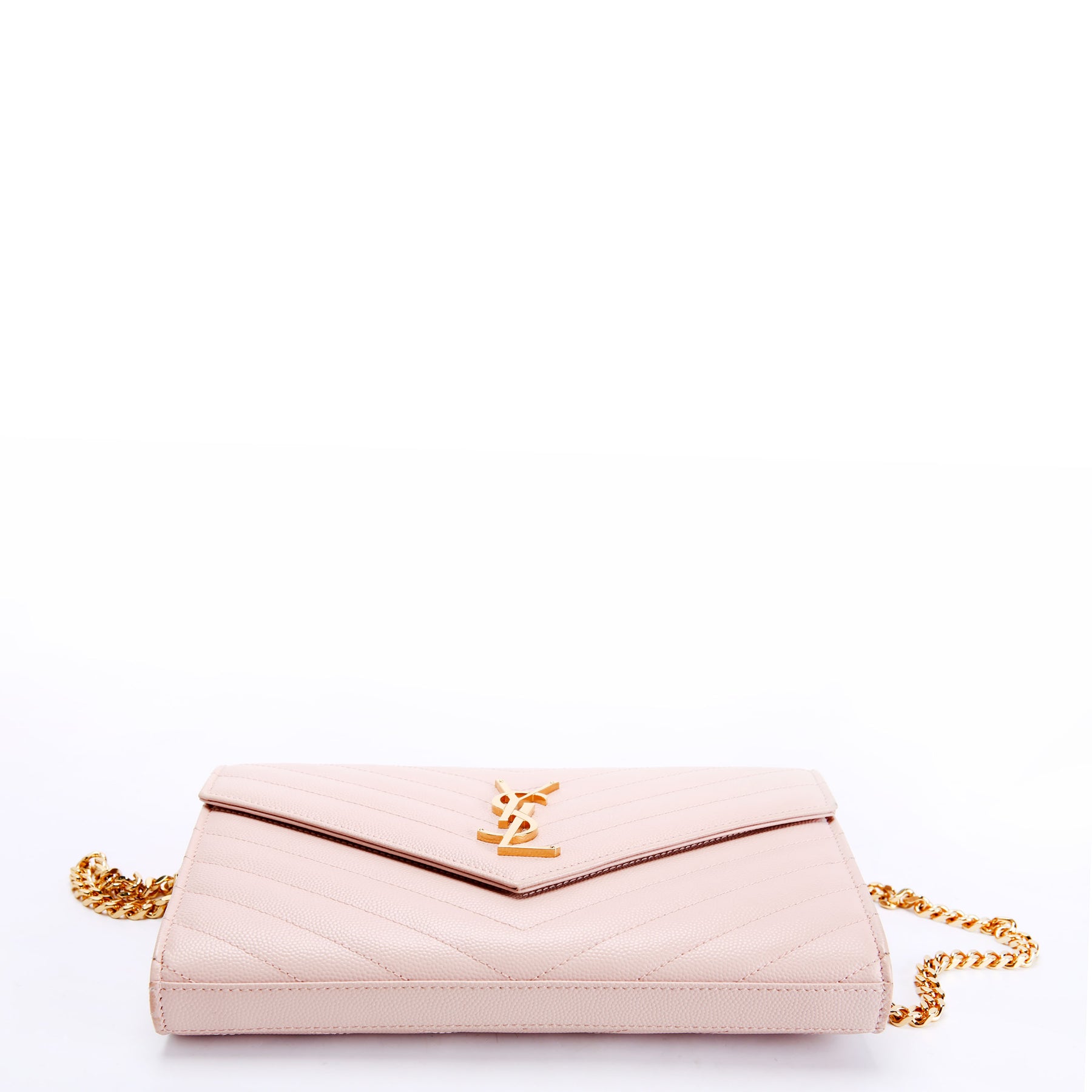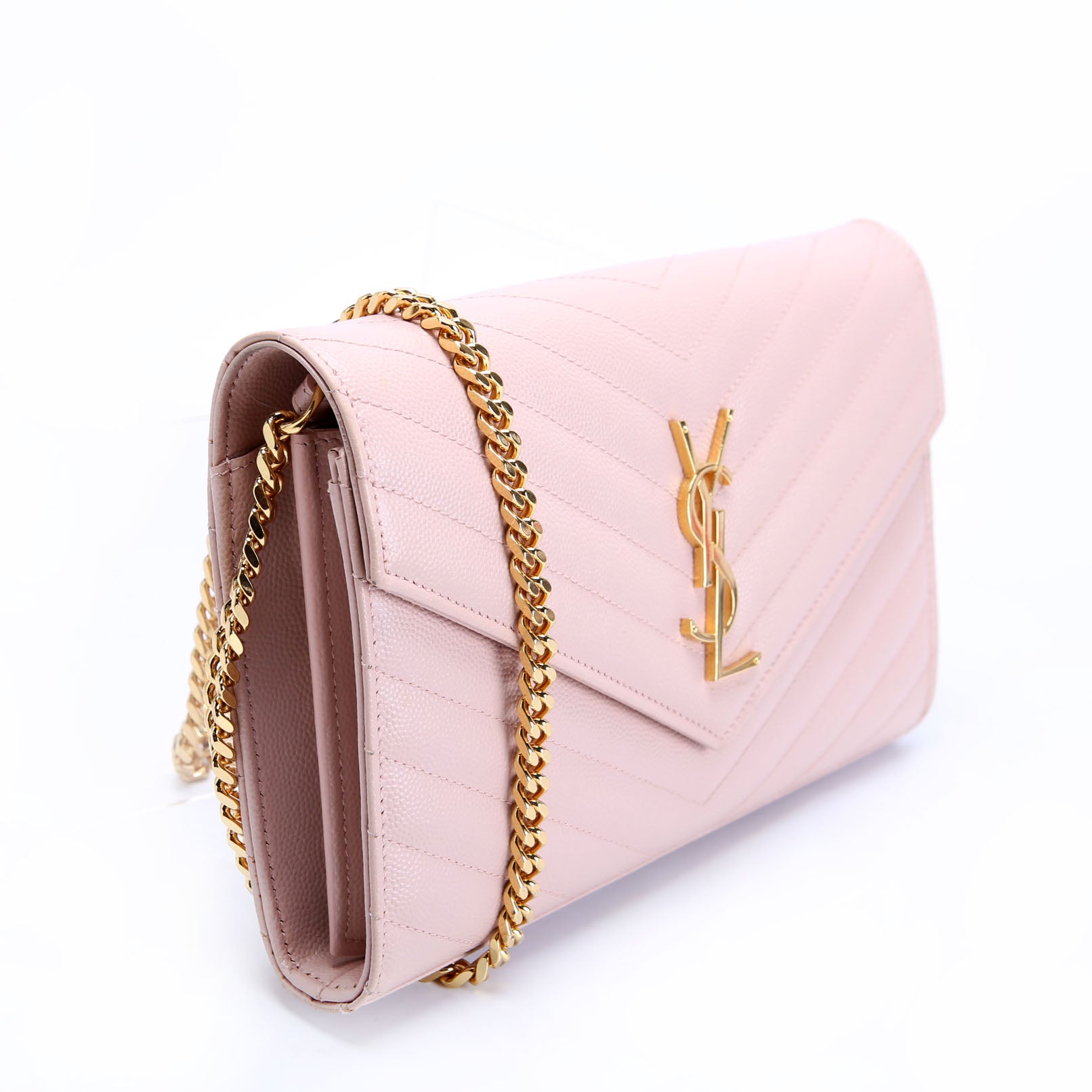 This pre-owned Saint Laurent Chain Wallet is guaranteed 100% authentic. The exterior is in the classic Saint Laurent Grain De Poudre leather.