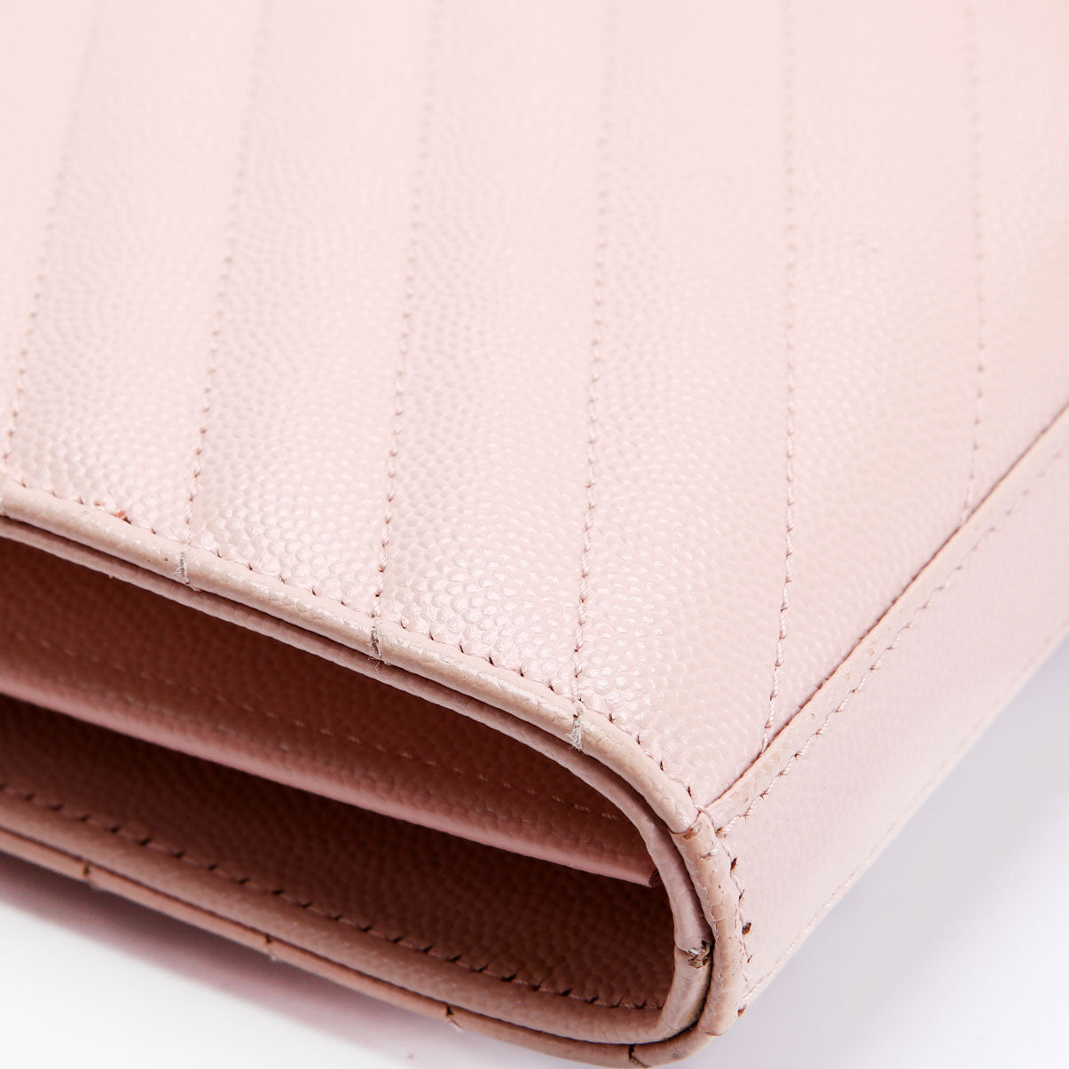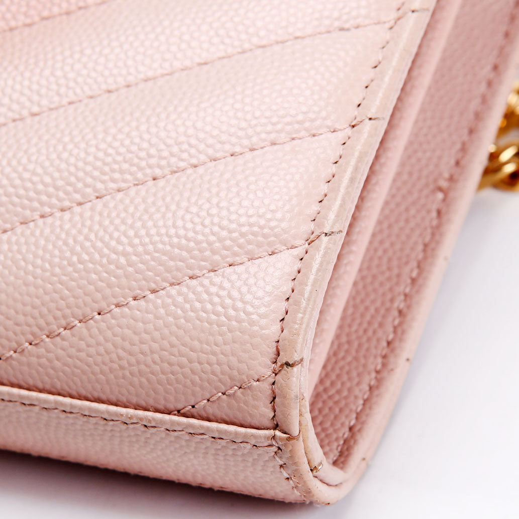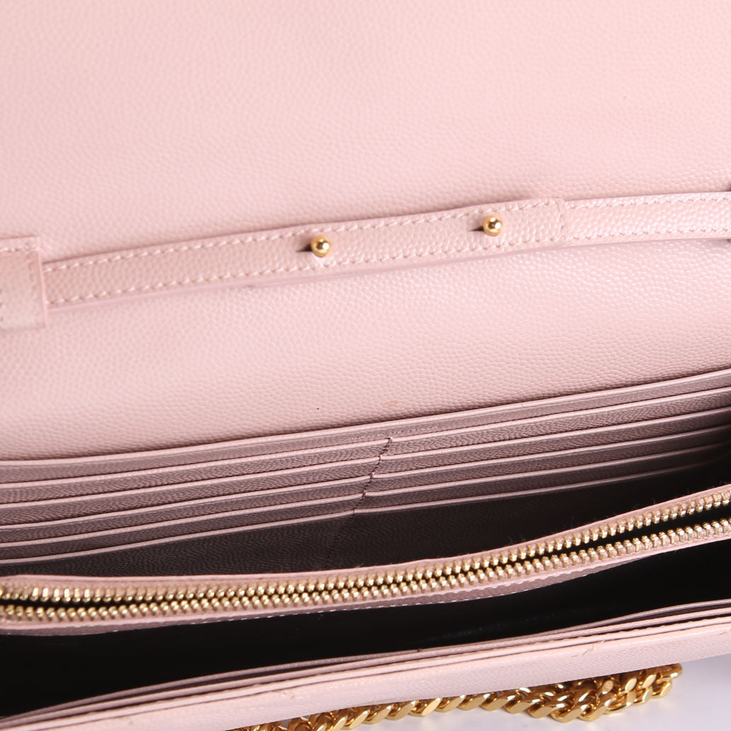 This pre-owned Saint Laurent Chain Wallet is guaranteed 100% authentic. The exterior is in the classic Saint Laurent Grain De Poudre leather.