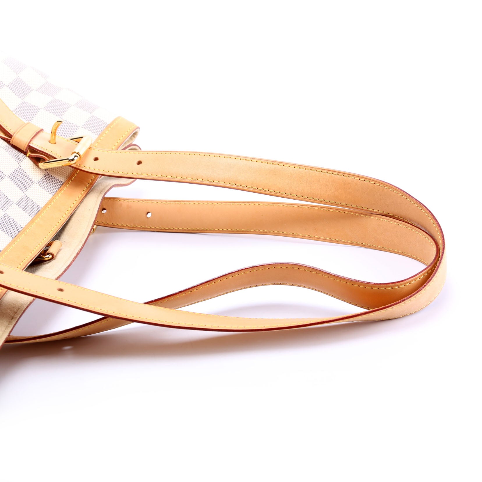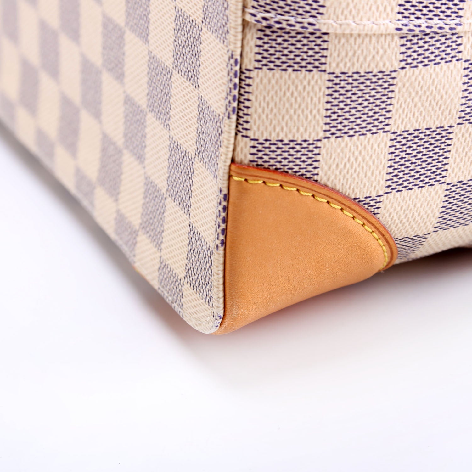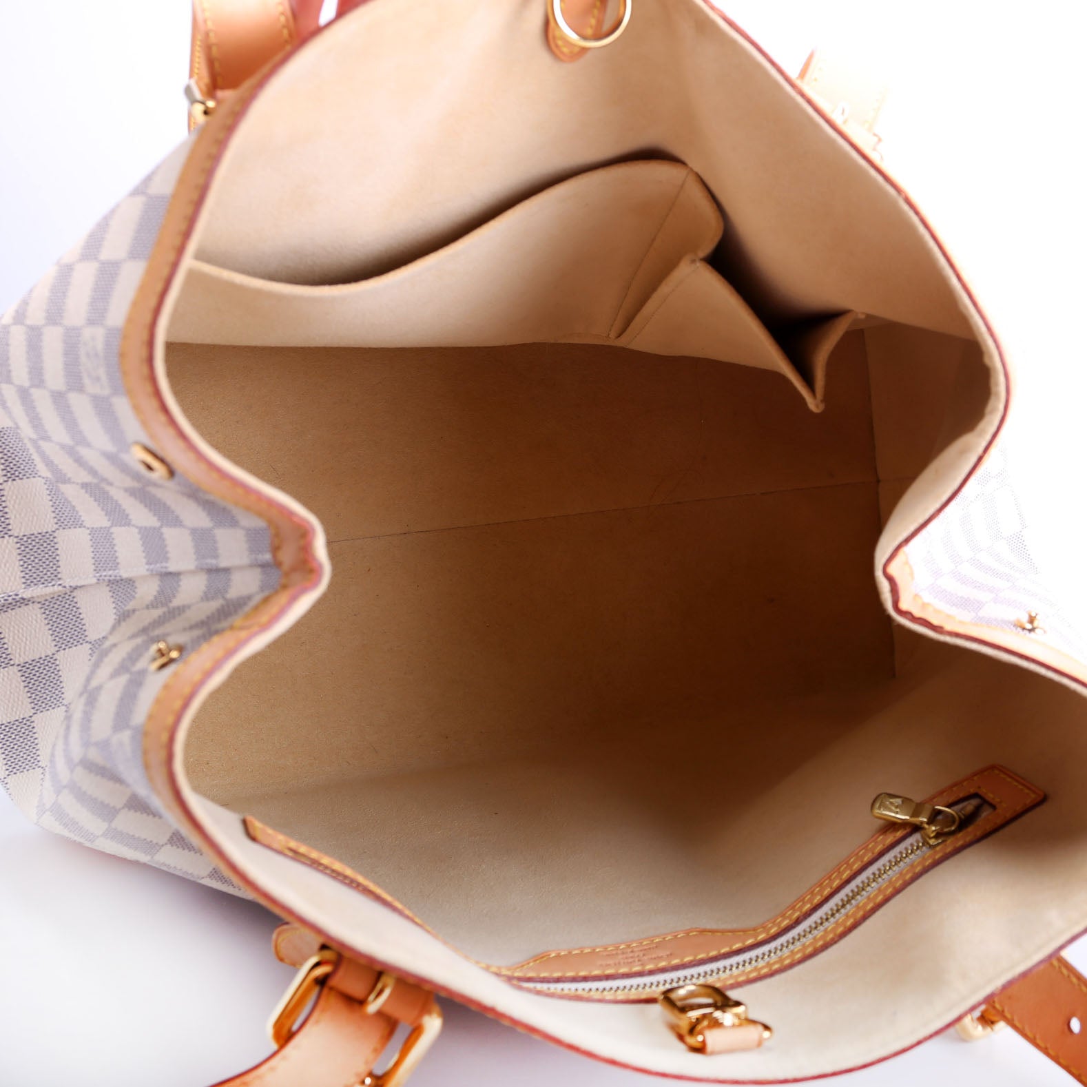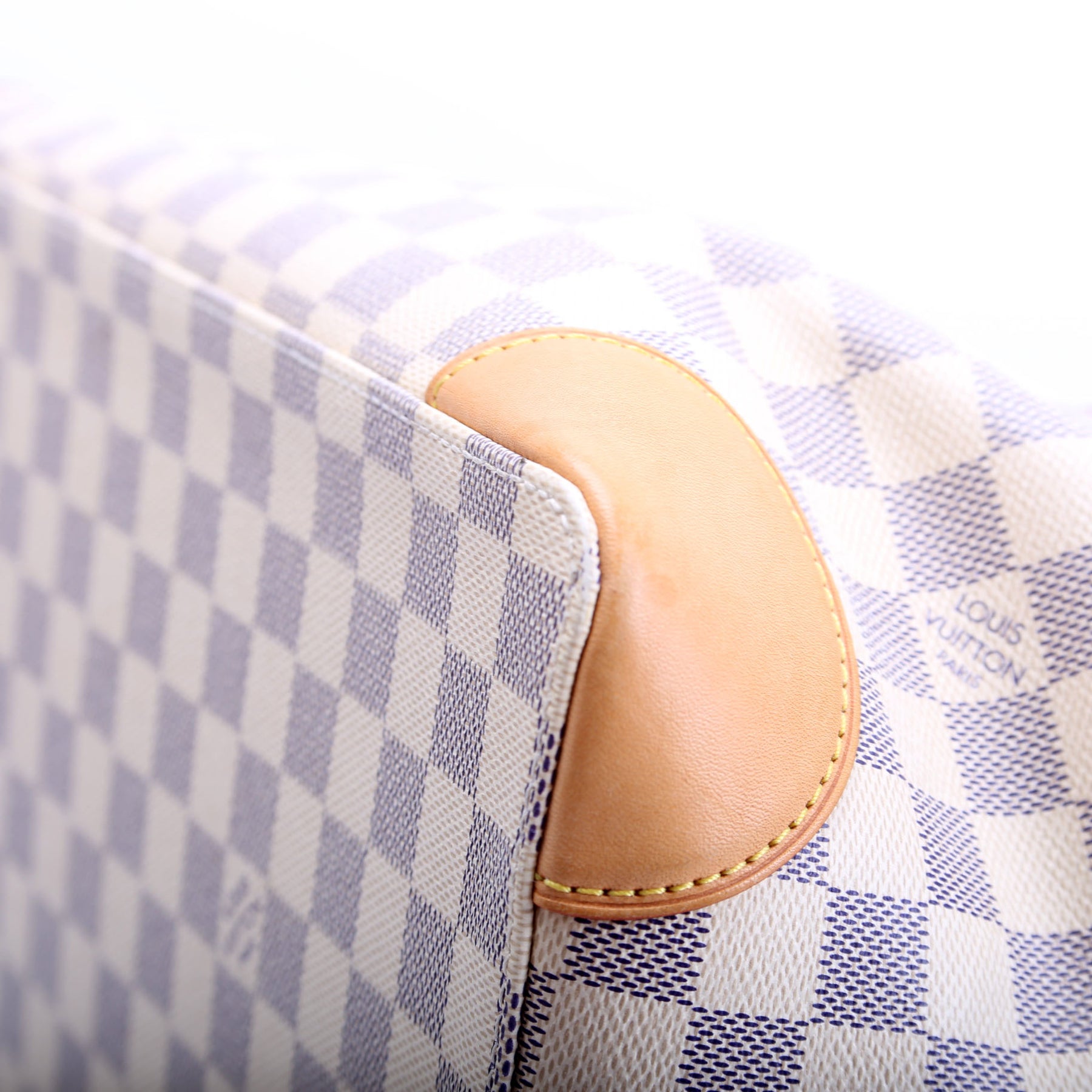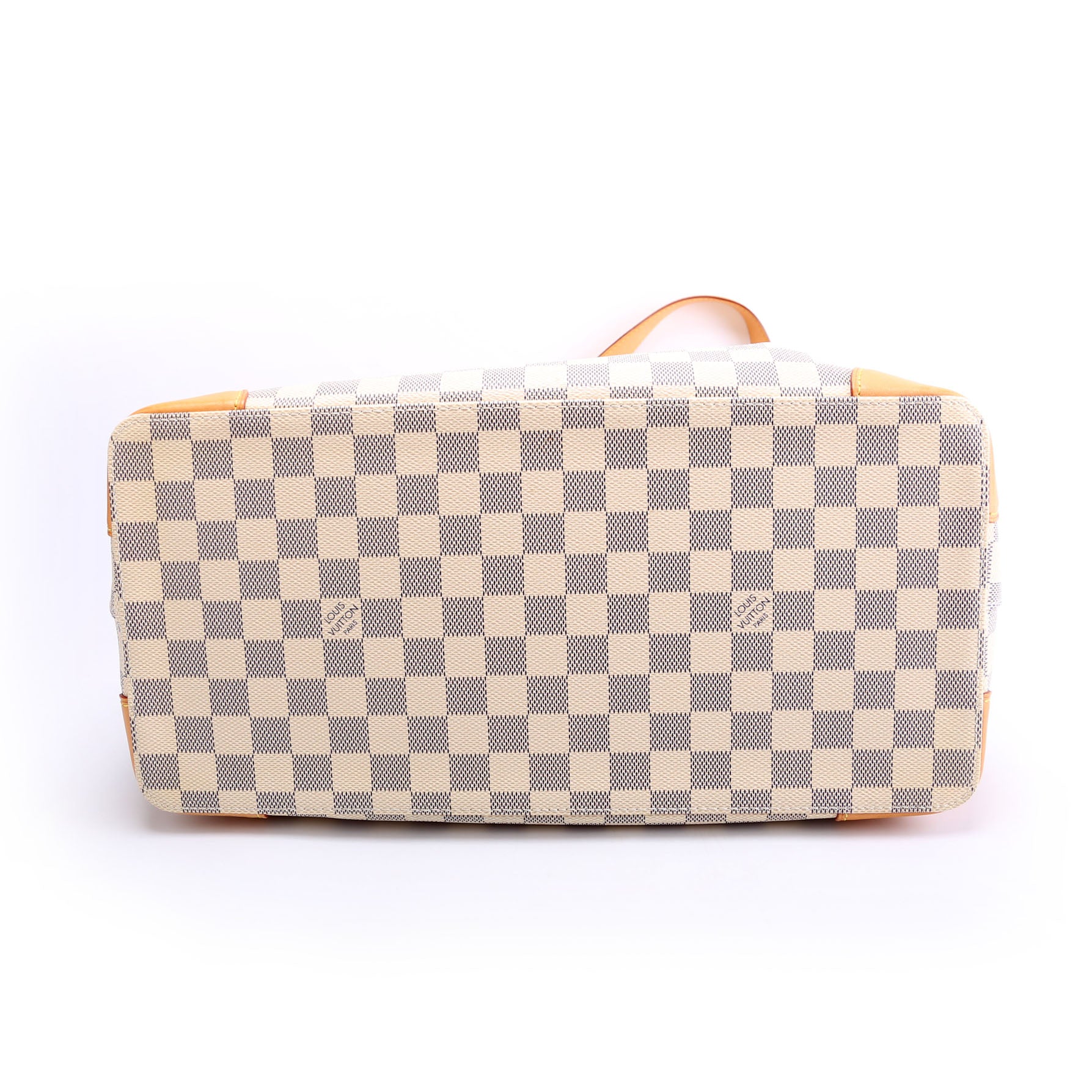 This pre-owned Louis Vuitton Hampstead MM is guaranteed 100% authentic. The exterior is in the classic Louis Vuitton Damier Azur coated canvas.