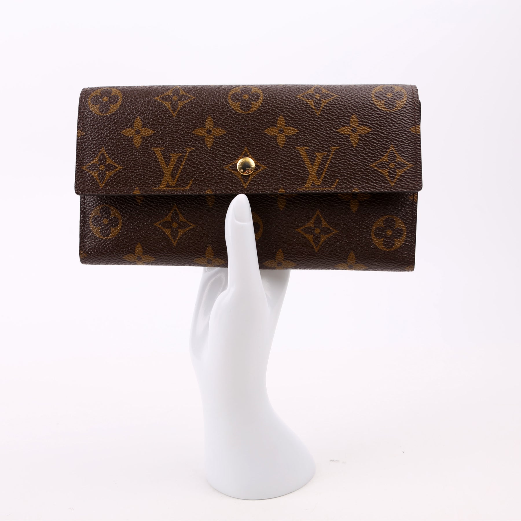 This pre-owned Louis Vuitton International Wallet is guaranteed 100% authentic. The exterior is in the classic Louis Vuitton Monogram coated canvas.