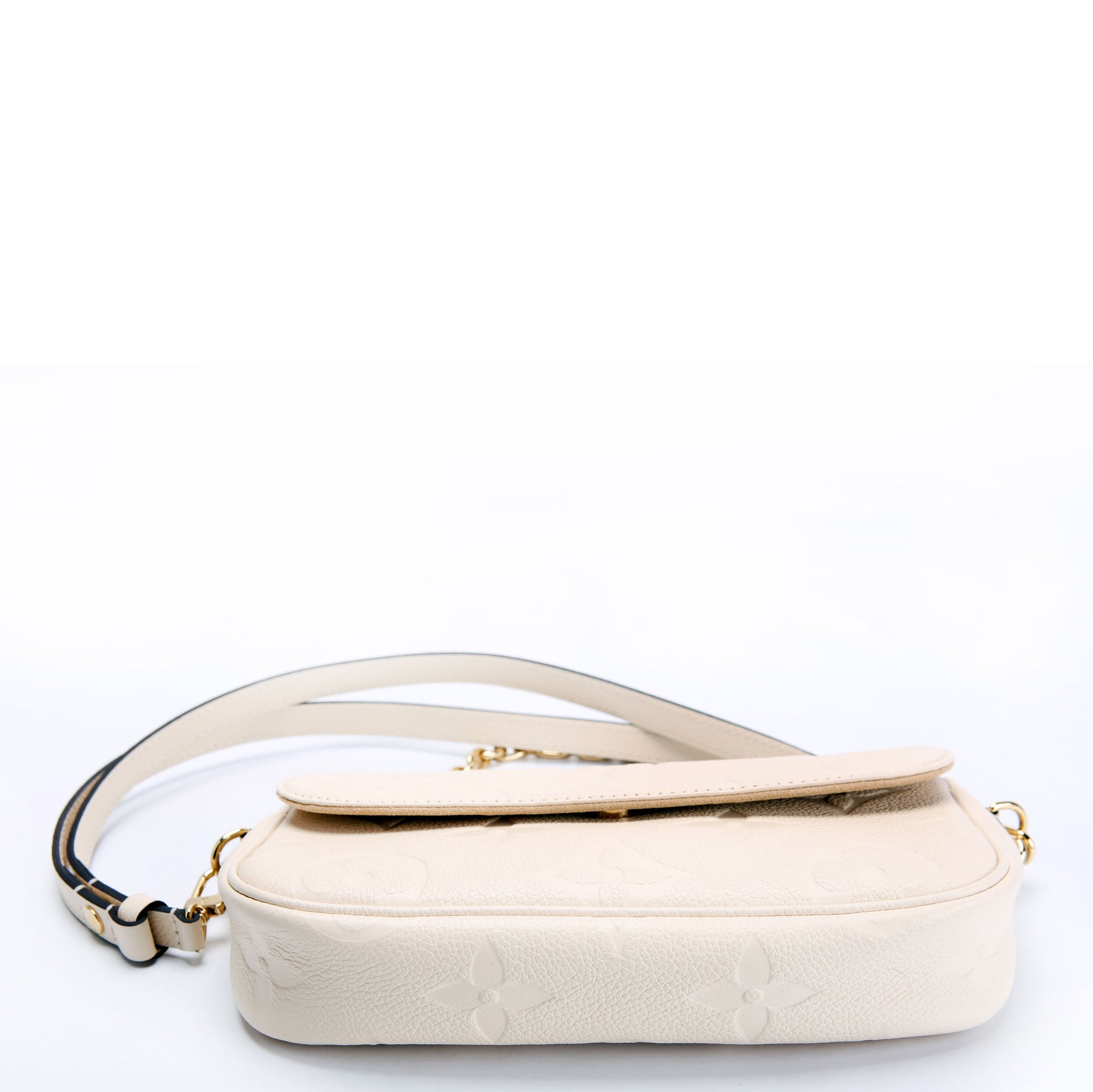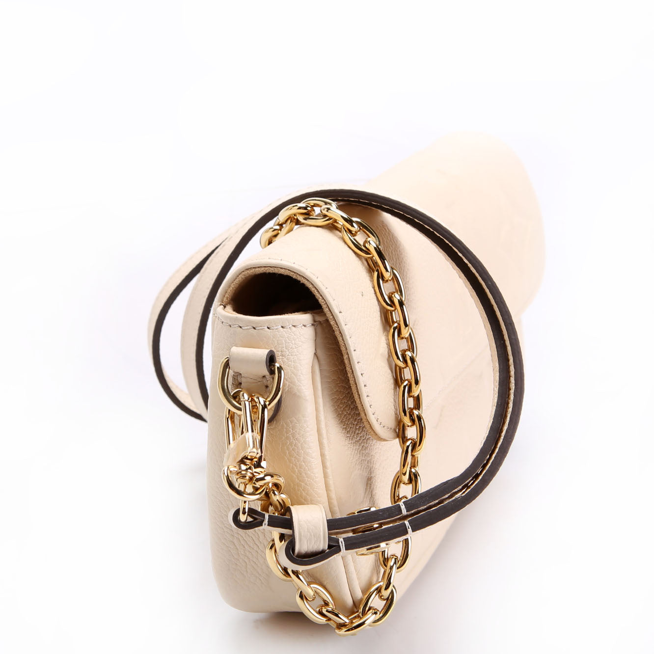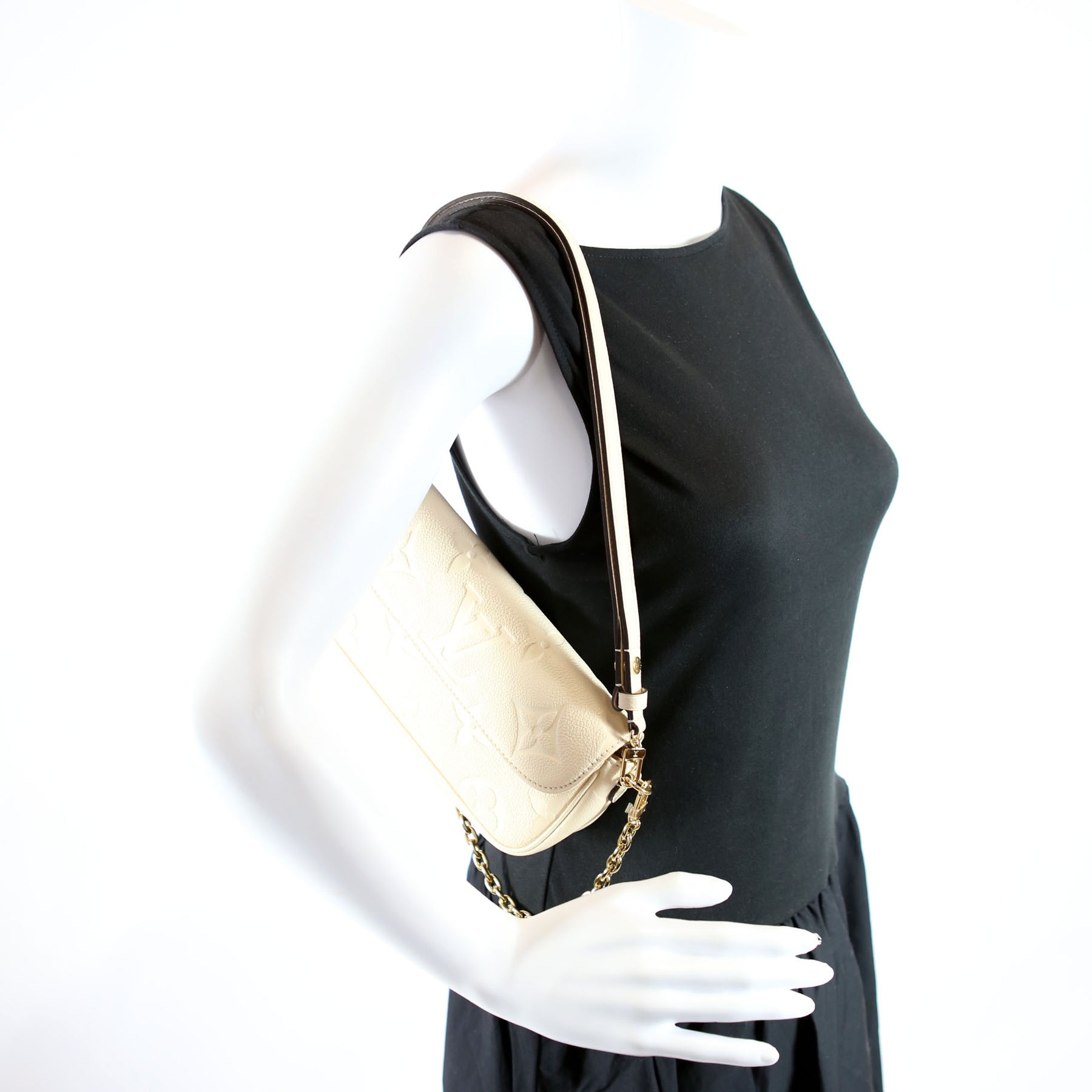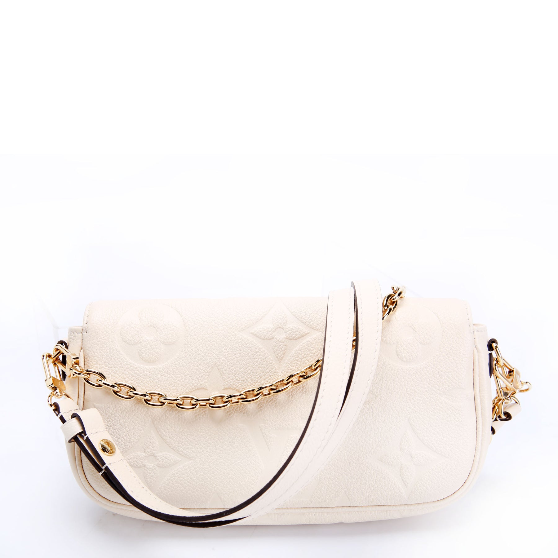 This pre-owned Louis Vuitton Ivy Wallet On Chain is guaranteed 100% authentic. The exterior is in the classic Louis Vuitton Empreinte leather.