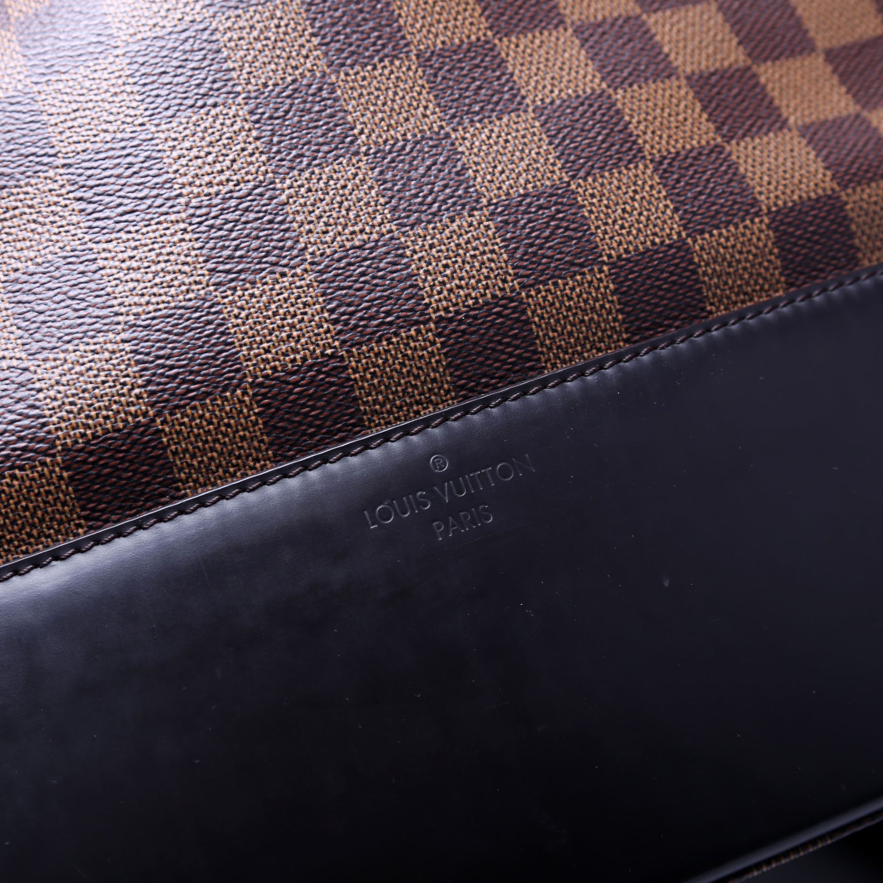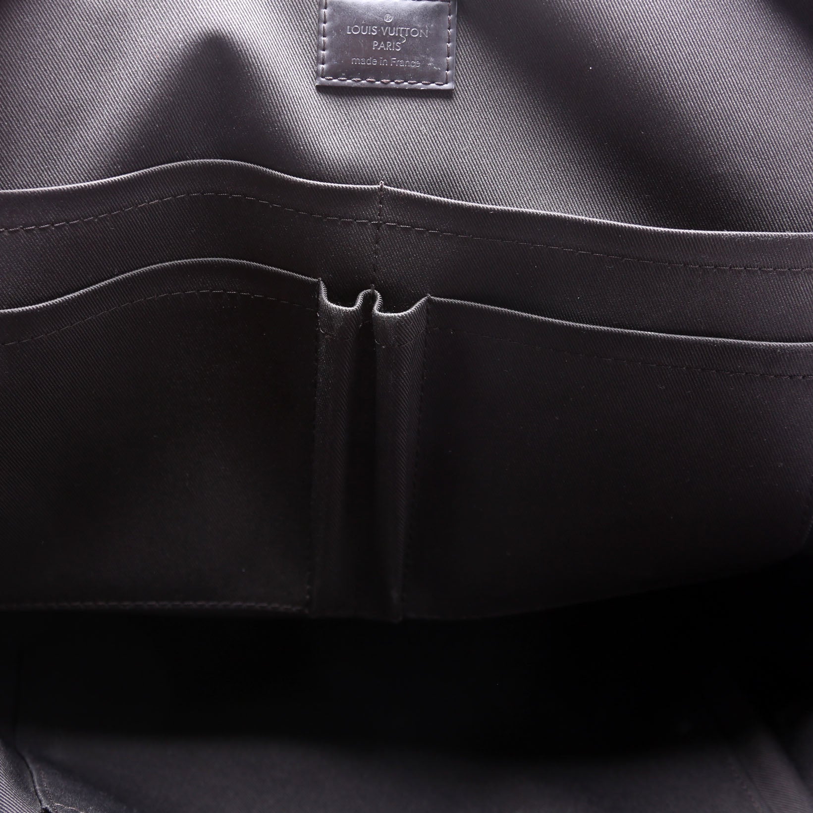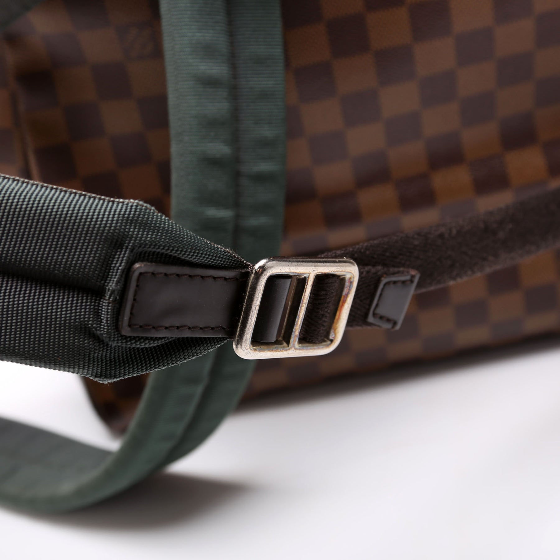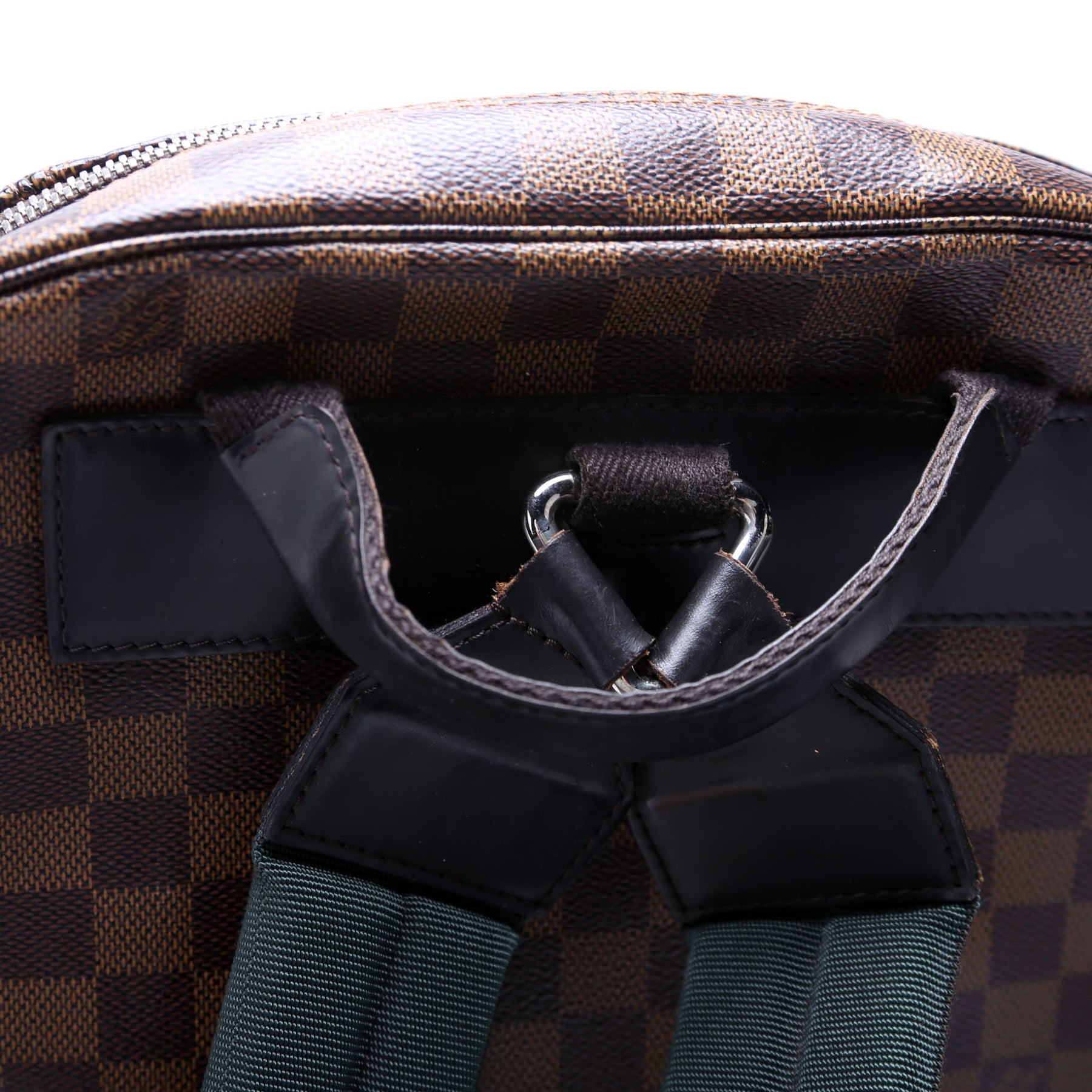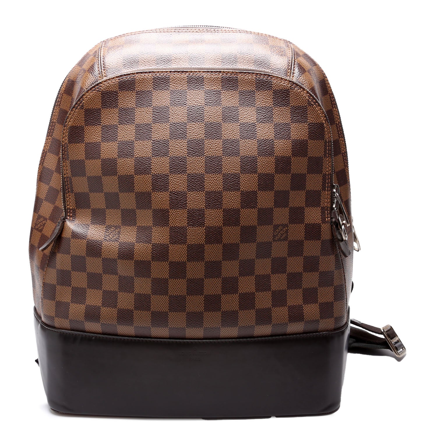 This pre-owned Louis Vuitton Jake Backpack is guaranteed 100% authentic. The exterior is in the classic Louis Vuitton Damier Ebene coated canvas.