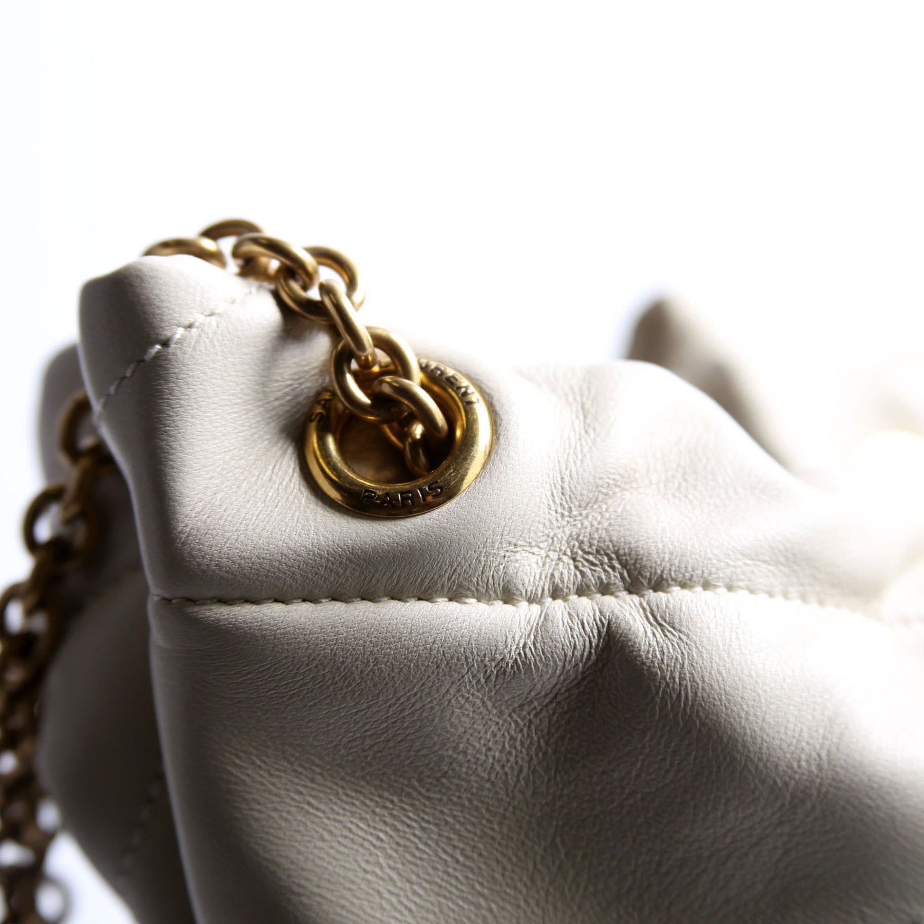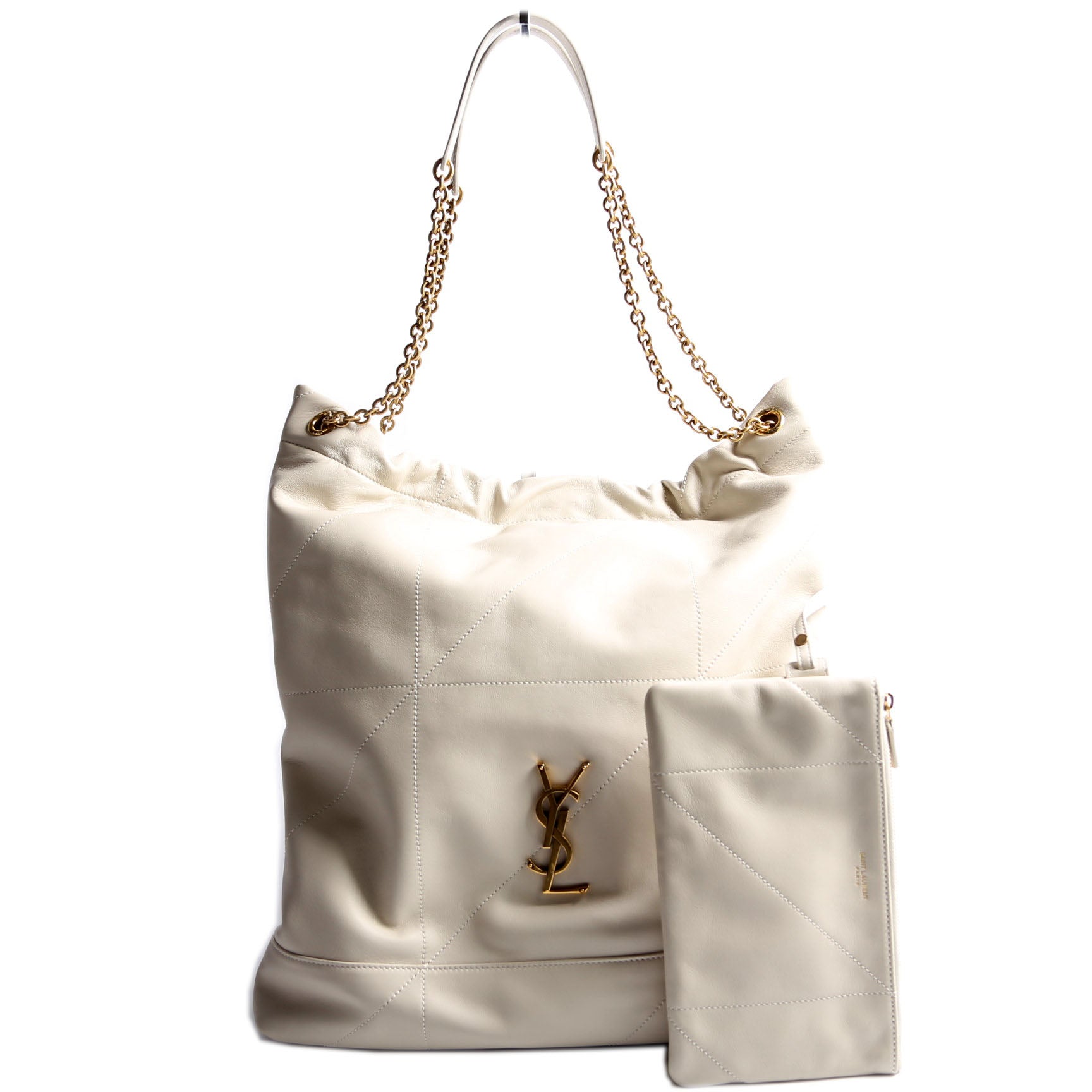 This pre-owned Saint Laurent Jamie Large Pochon is guaranteed 100% authentic. The exterior is in the classic Saint Laurent Lambskin Leather.