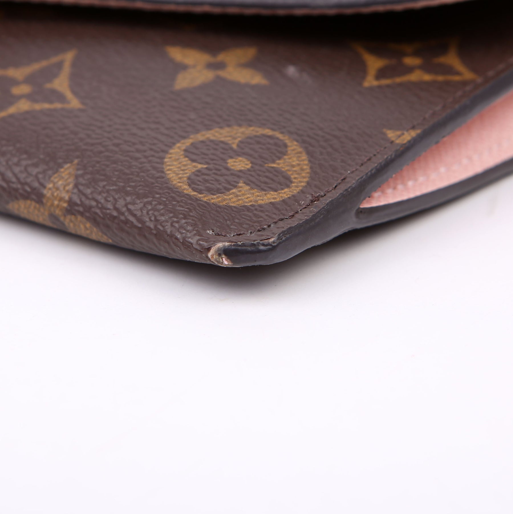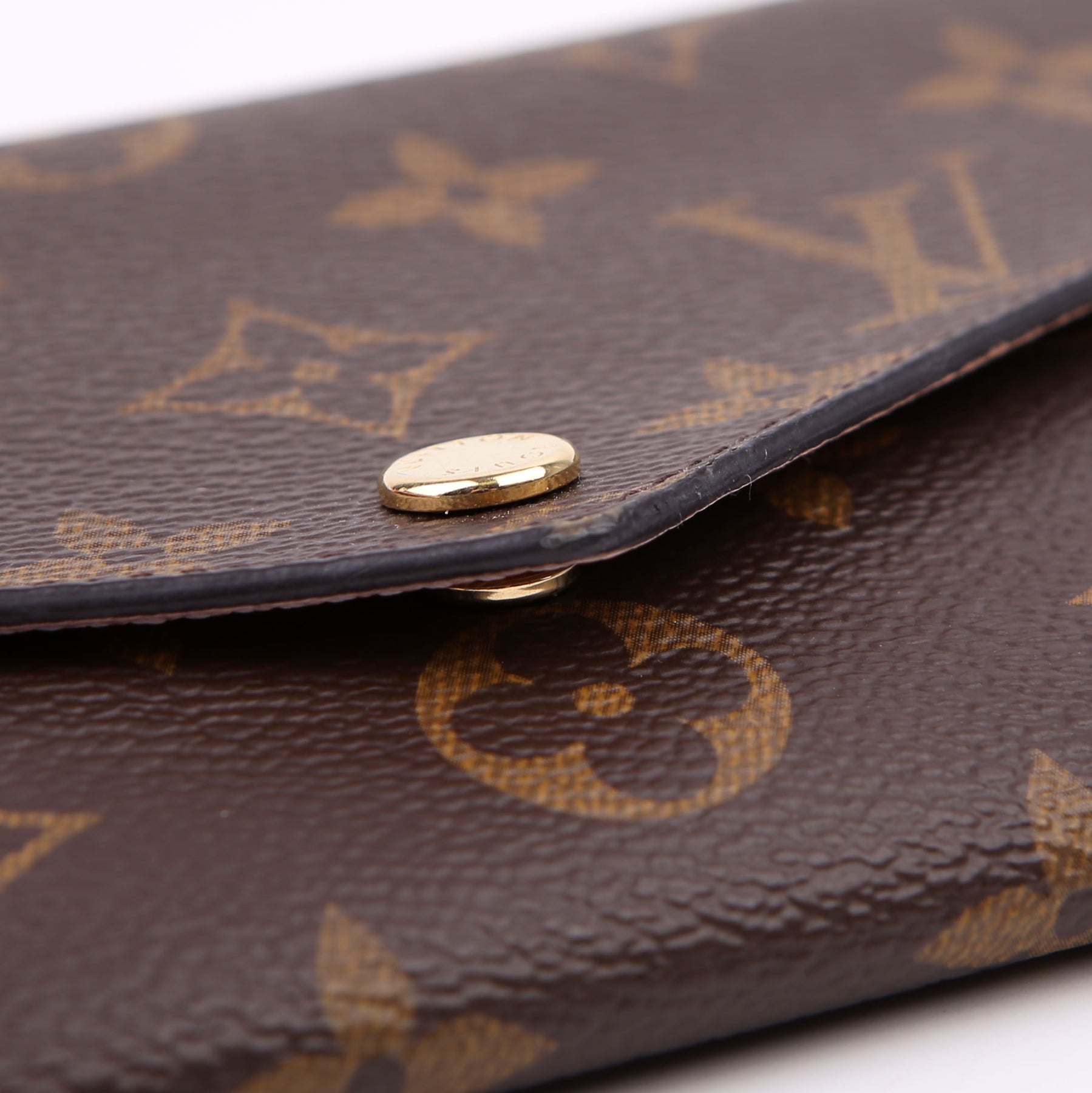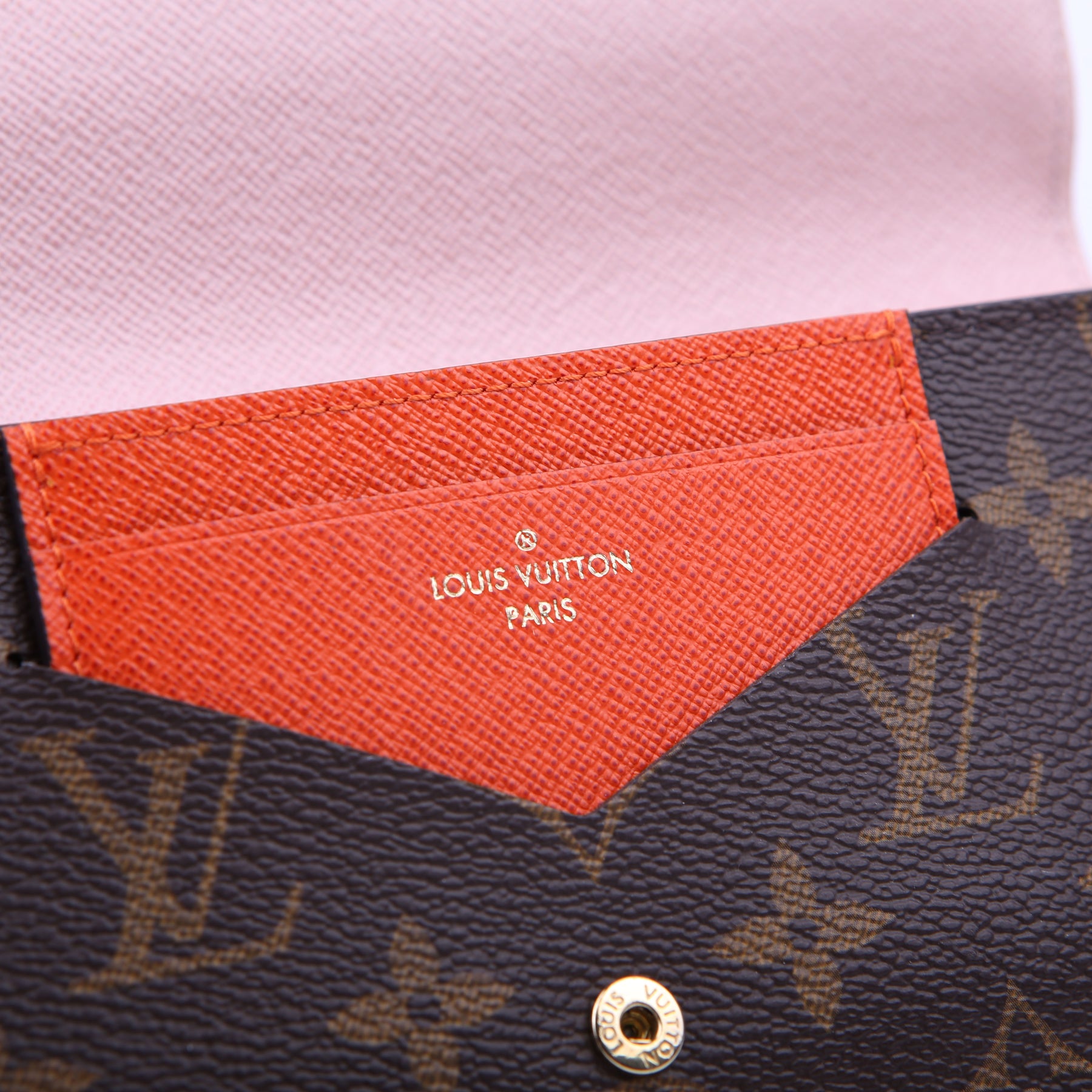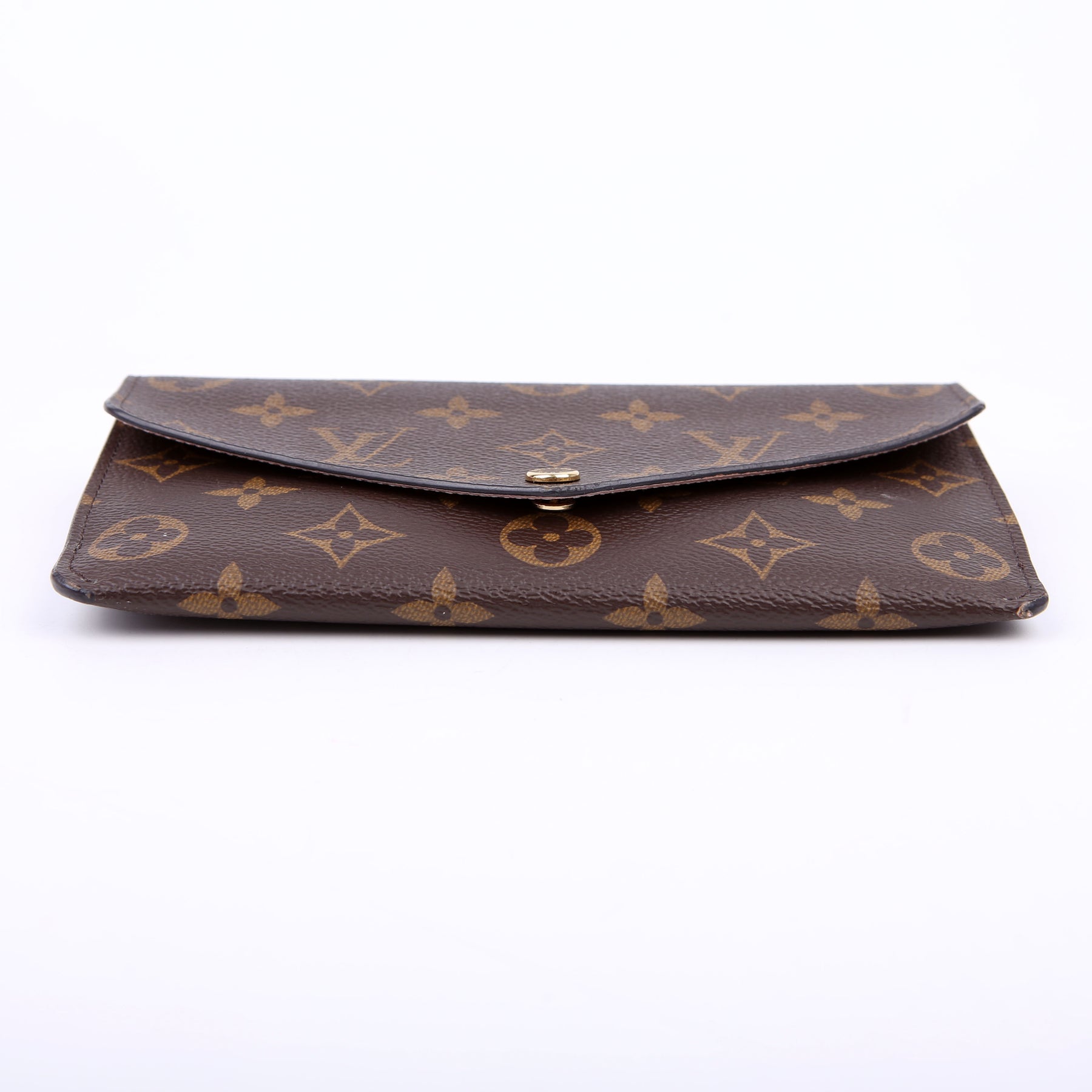 This pre-owned Louis Vuitton Jeanne Wallet is guaranteed 100% authentic. The exterior is in the classic Louis Vuitton Monogram coated canvas.