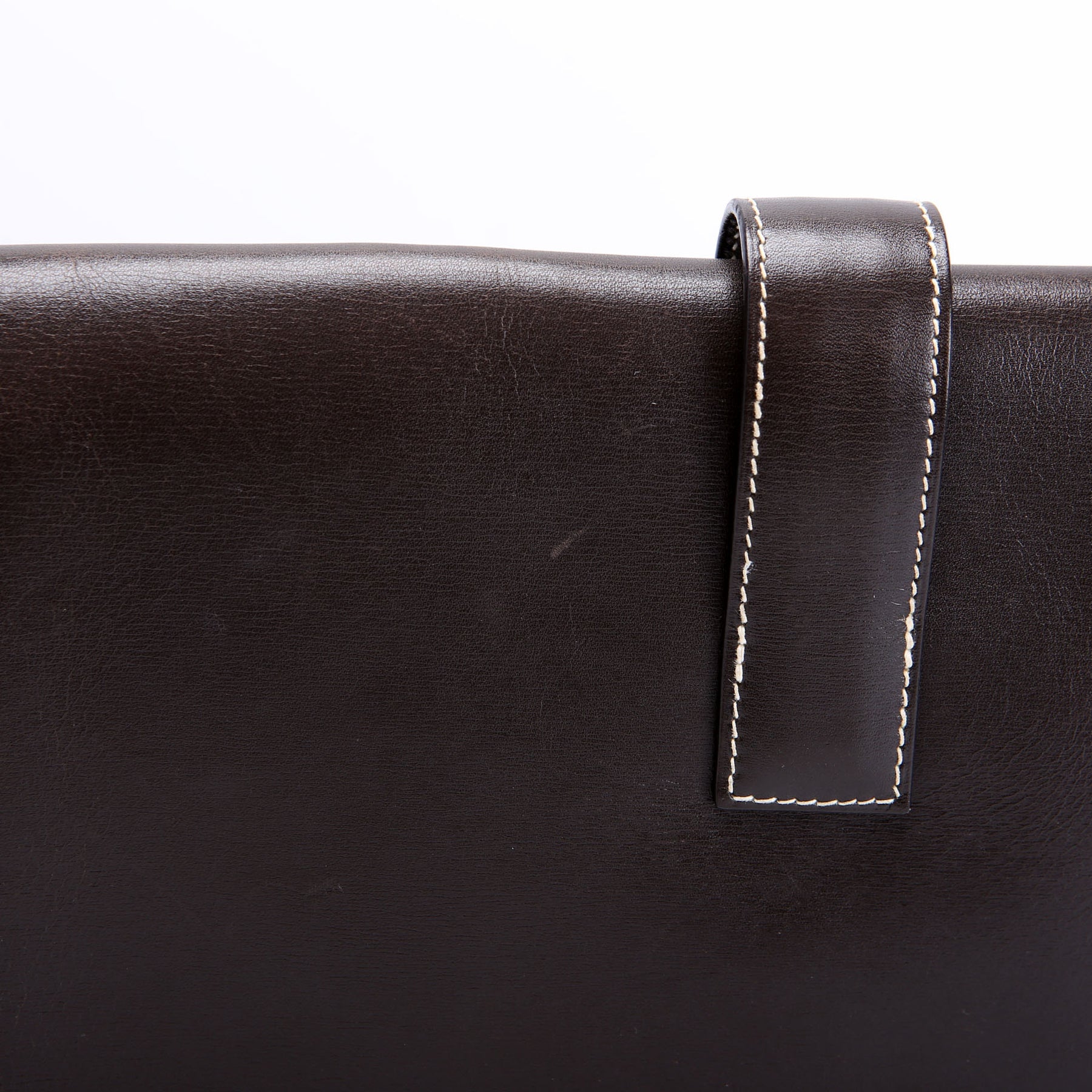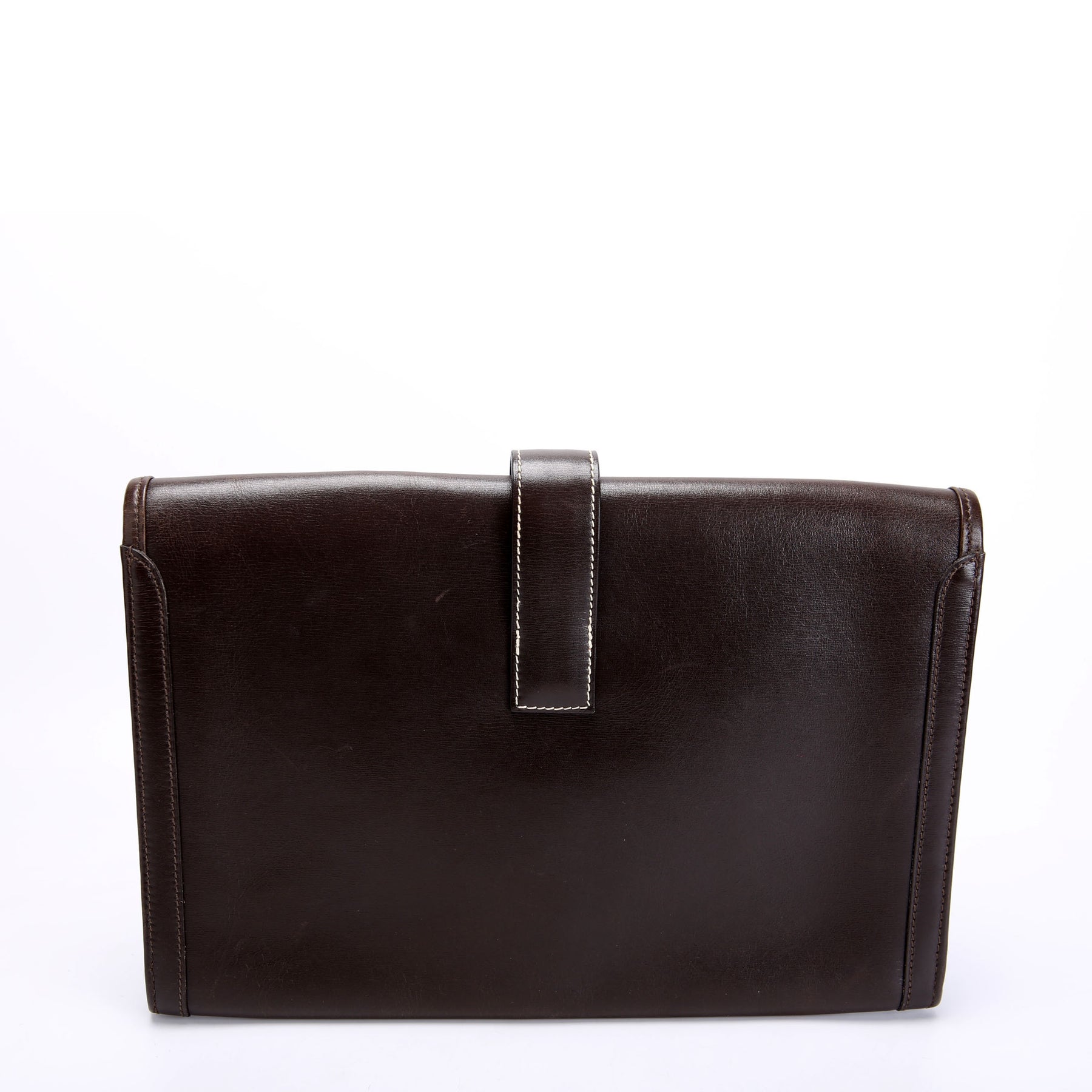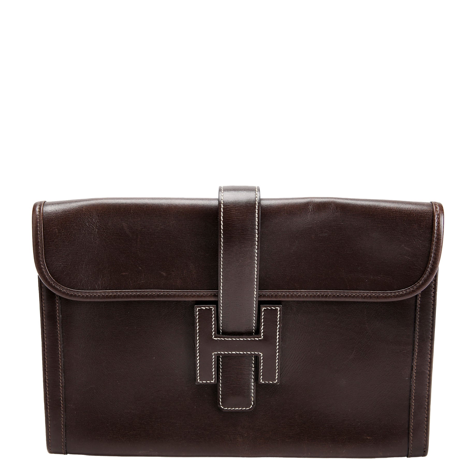 This pre-owned Hermes Jige PM Clutch Box is guaranteed 100% authentic. The exterior is in the classic Hermes Calfskin Leather.