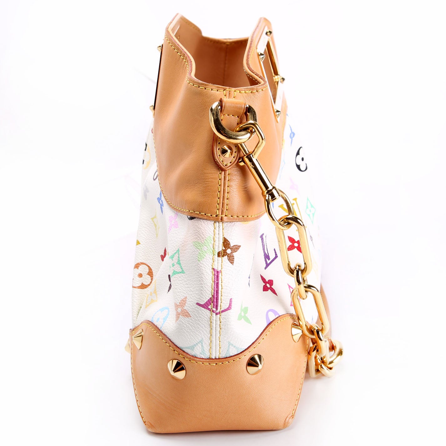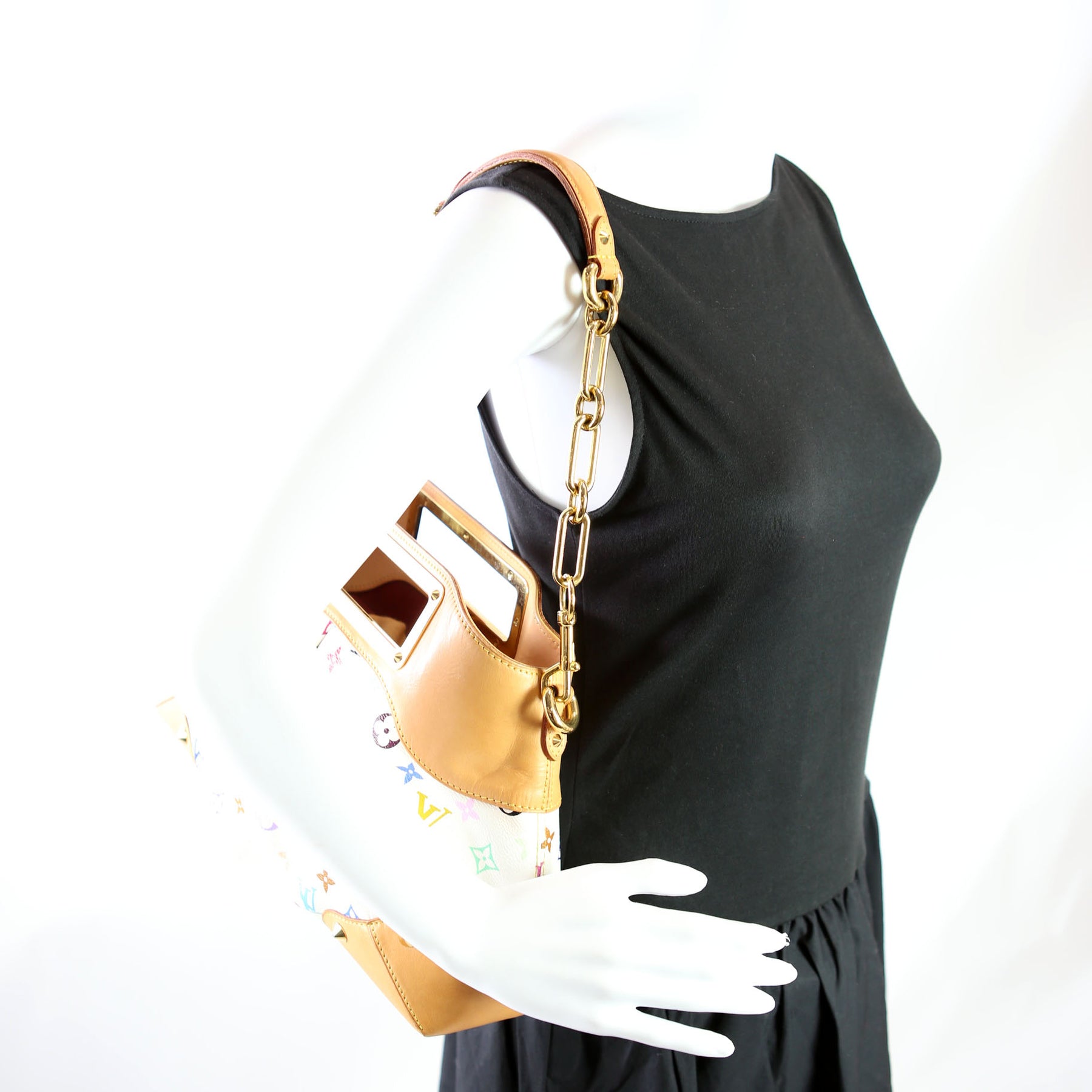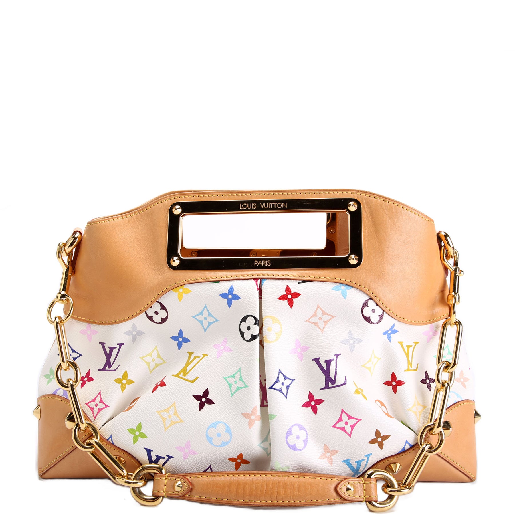 This pre-owned Louis Vuitton Judy MM Multi is guaranteed 100% authentic. The exterior is in the classic Multi Monogram coated canvas.