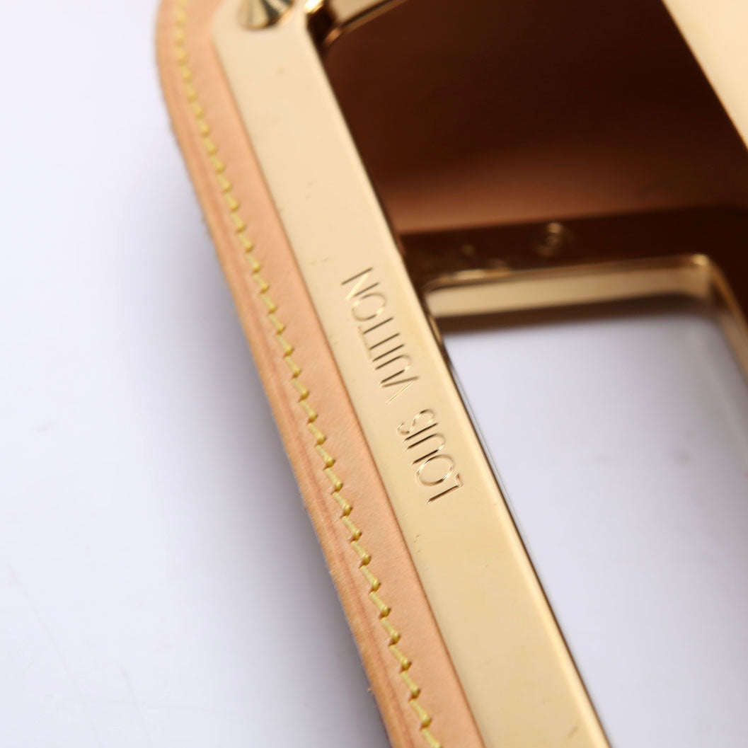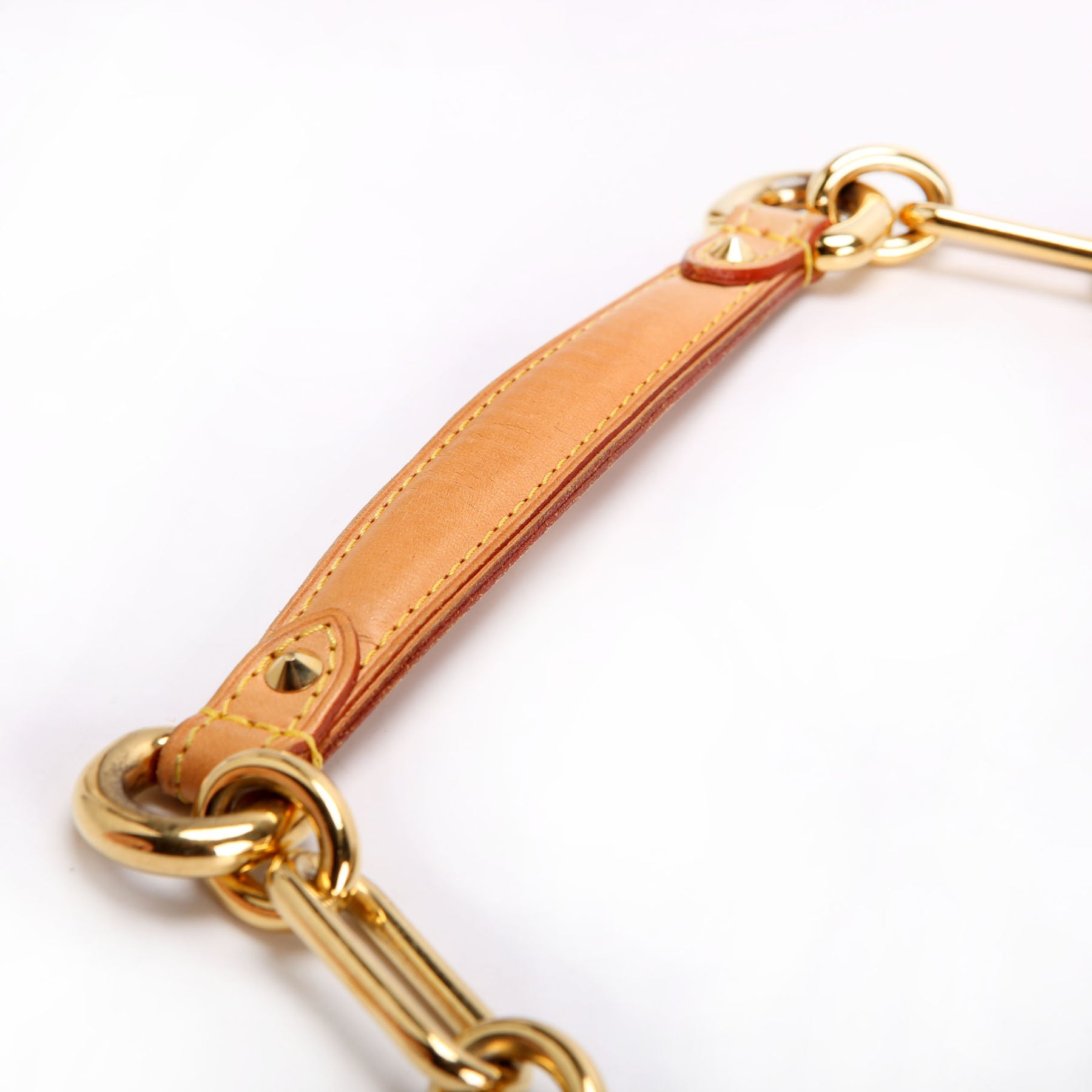 Strap: The strap has leather wear, discoloration, and light hardware scratching and tarnishing.