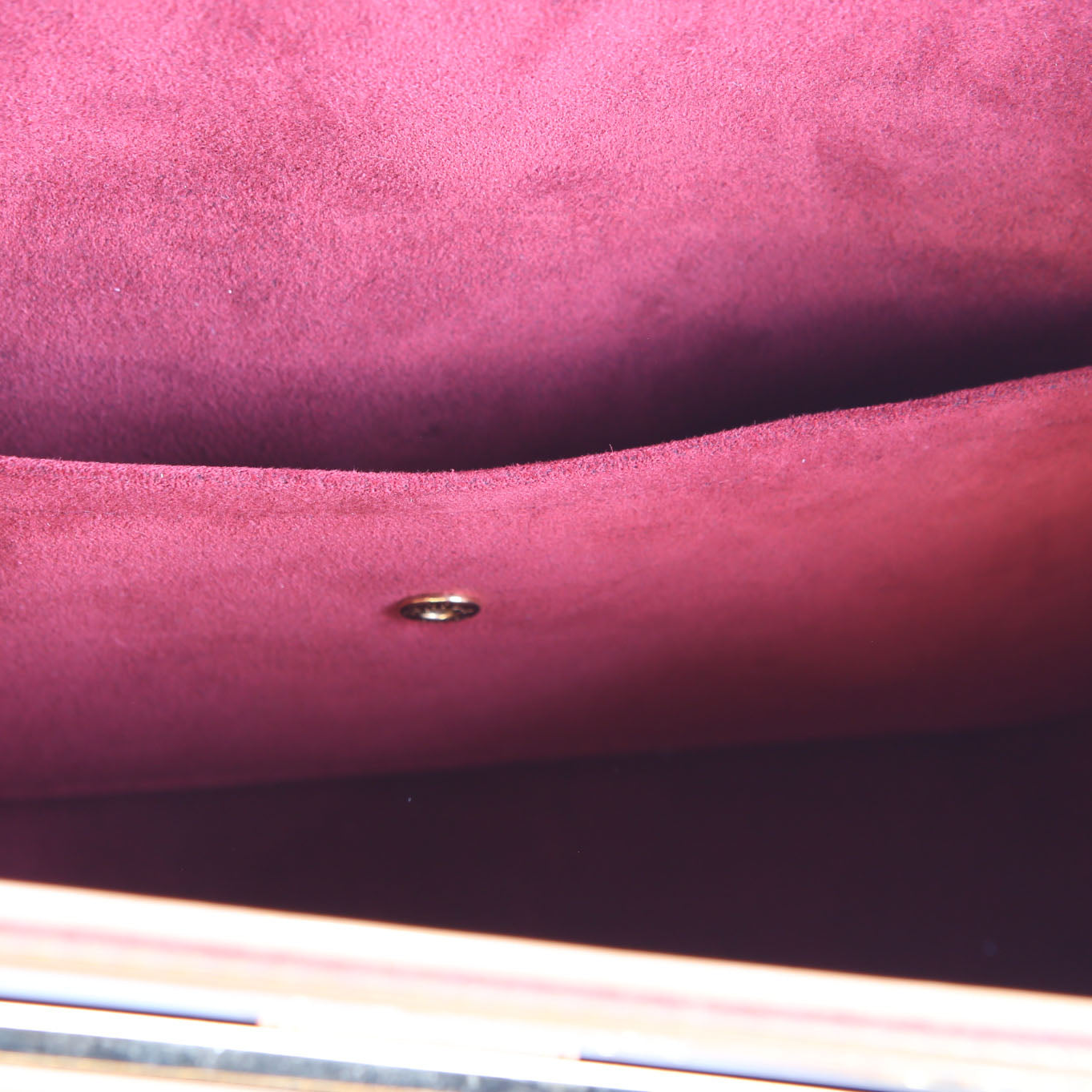 Interior: The interior is free of wear and has one snap button pocket. The interior has light moth ball odor.