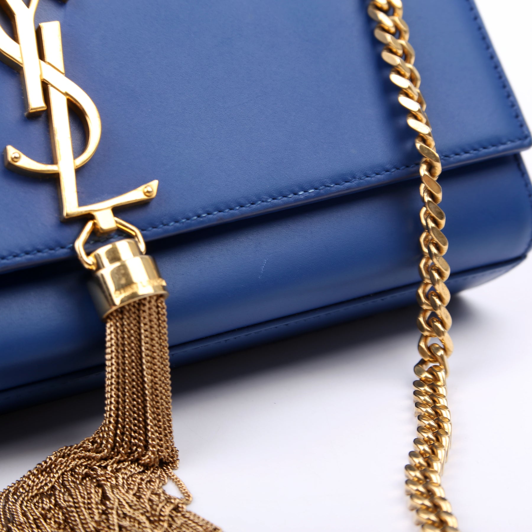 Hardware: The magnetic closure operates properly. The YSL logo shows light scratches.