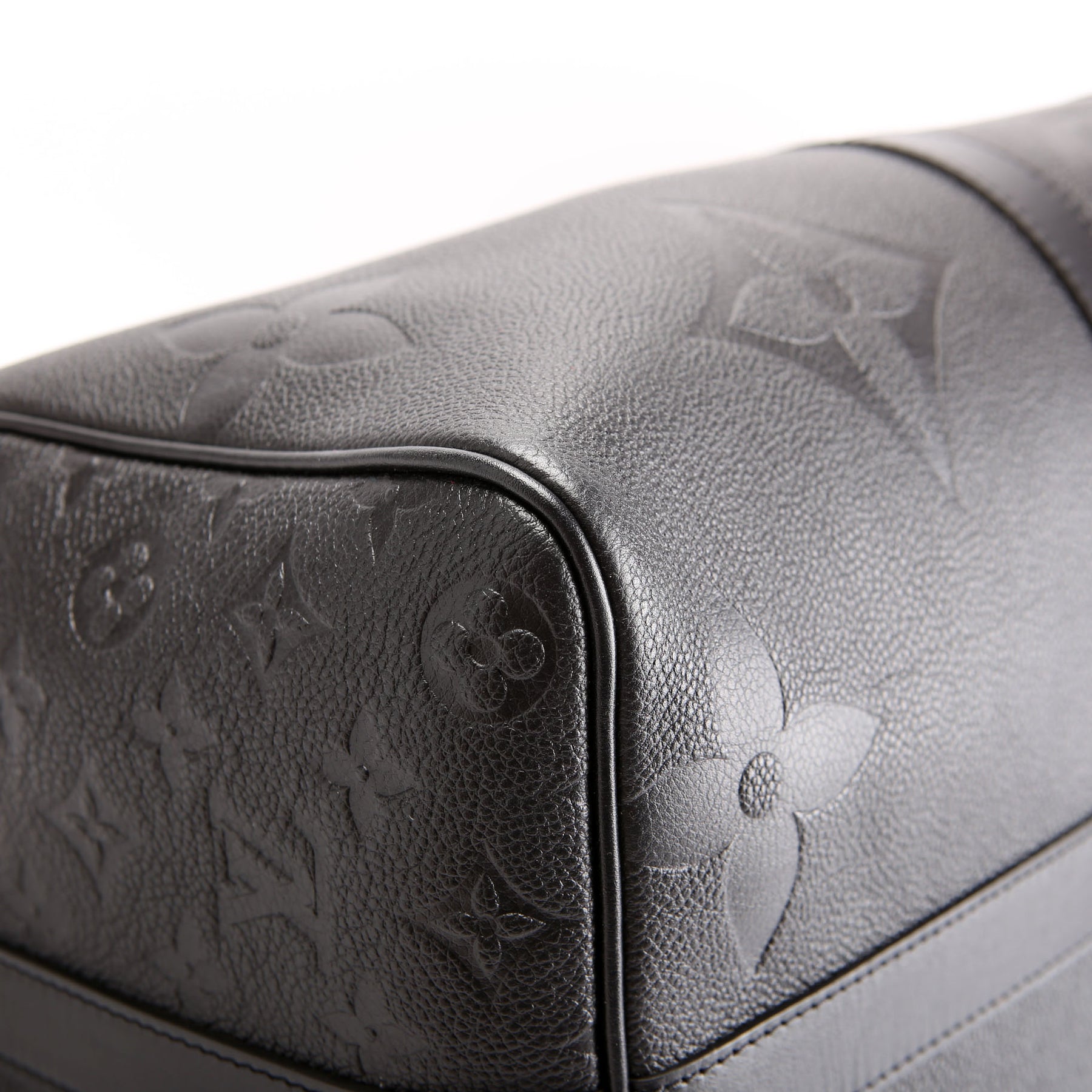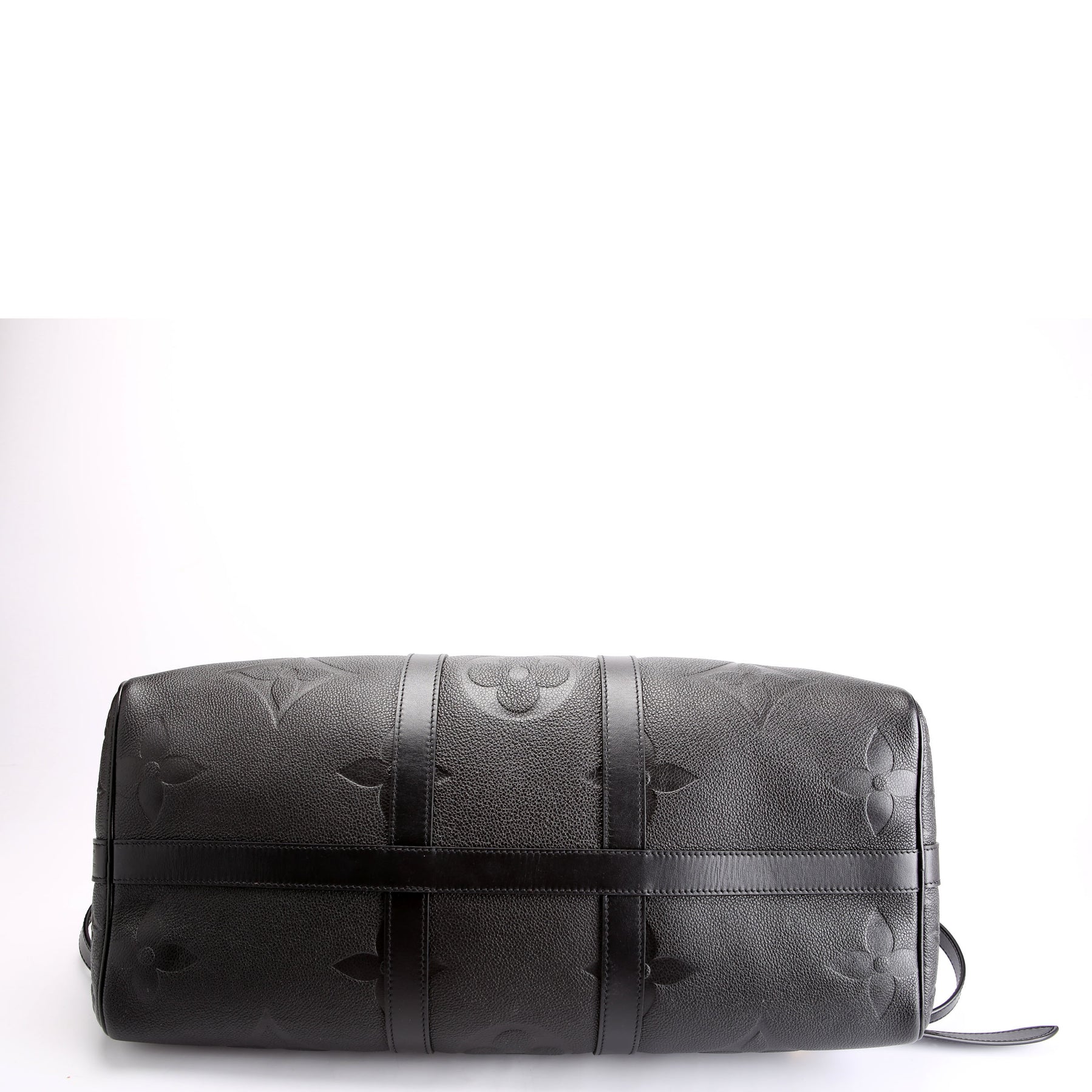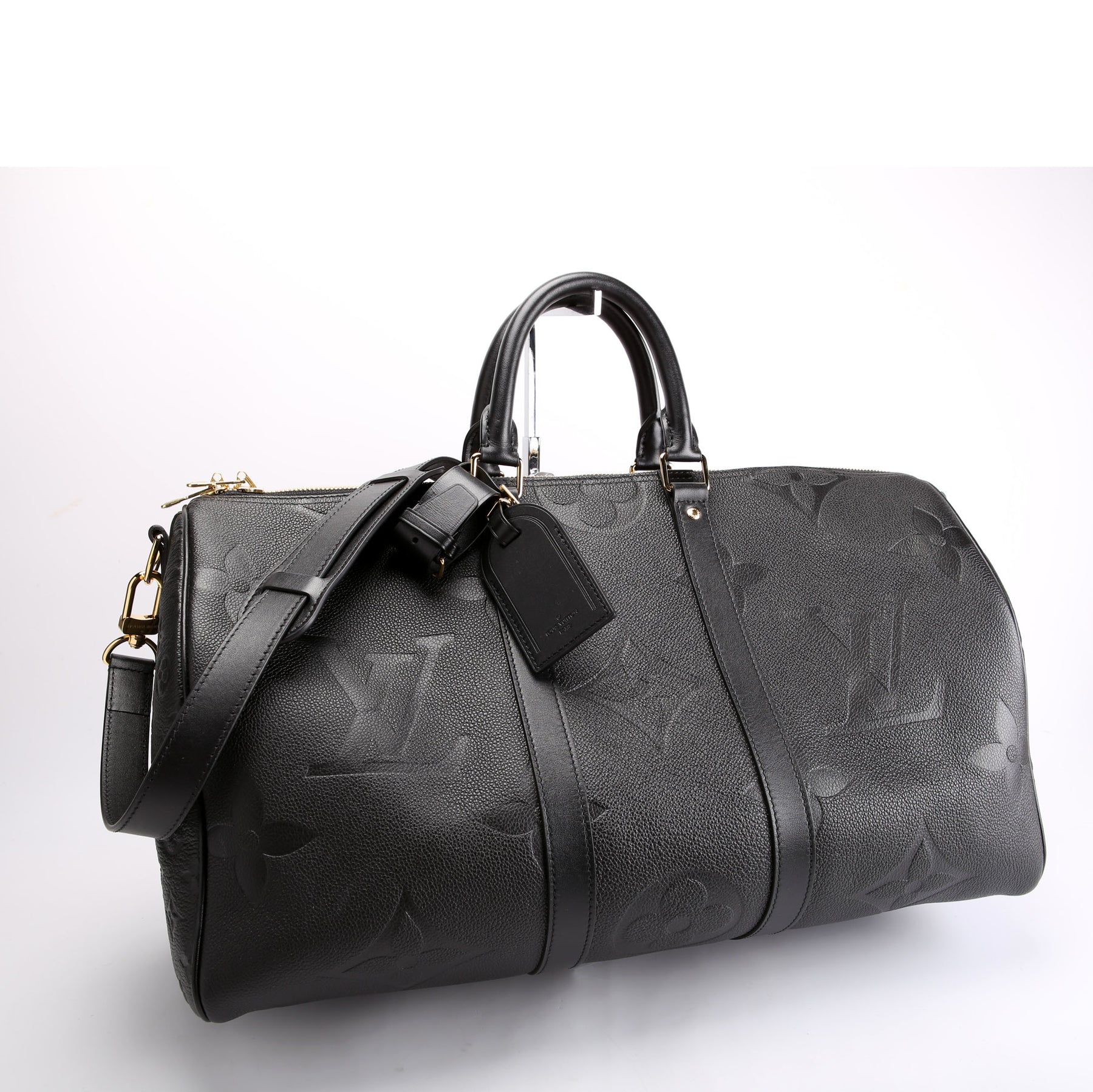 This pre-owned Louis Vuitton Keepall 45 Bandouliere guaranteed 100% authentic. The exterior is in the classic Louis Vuitton Giant Empreinte leather.