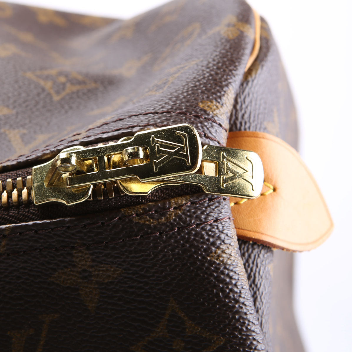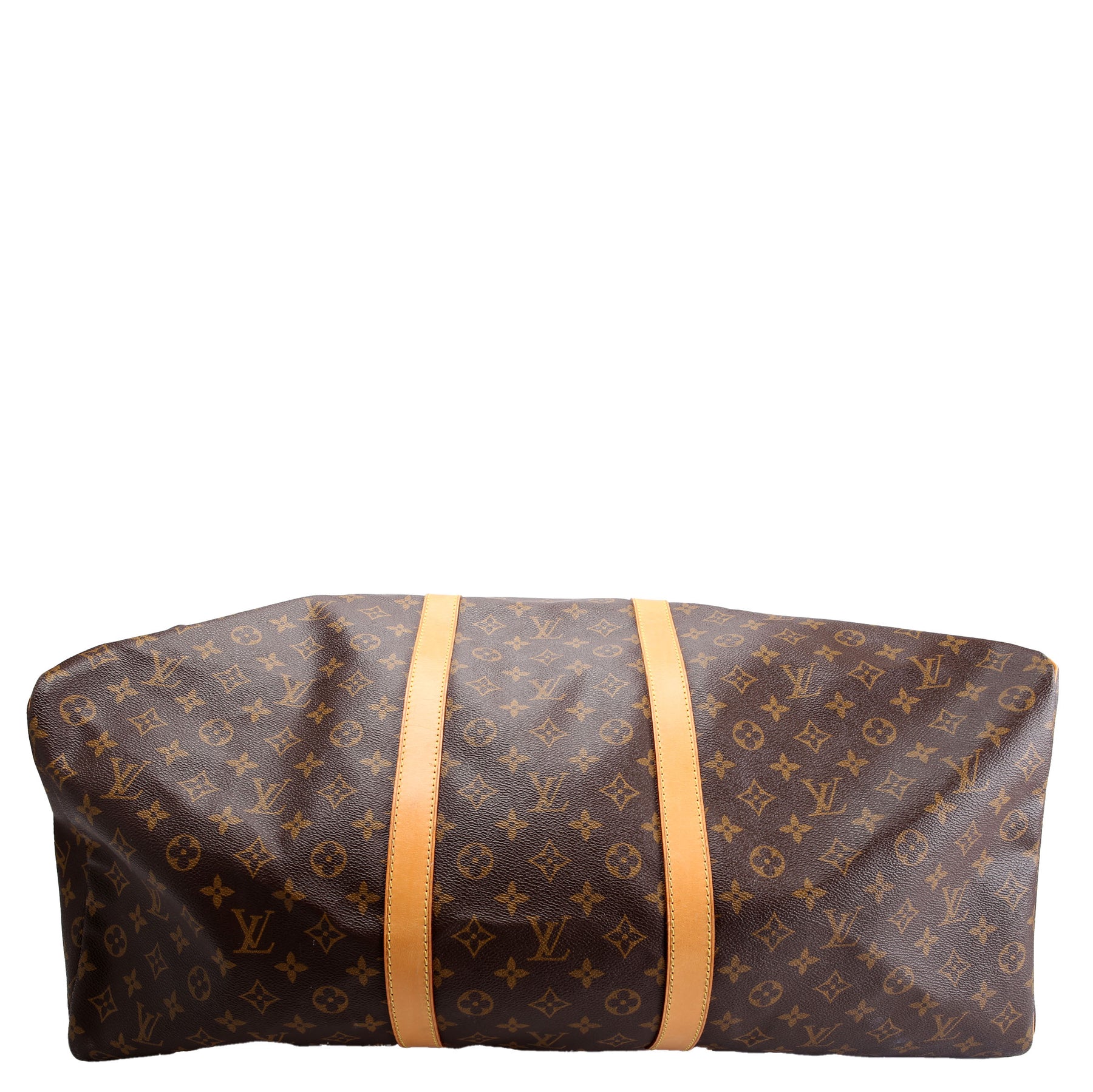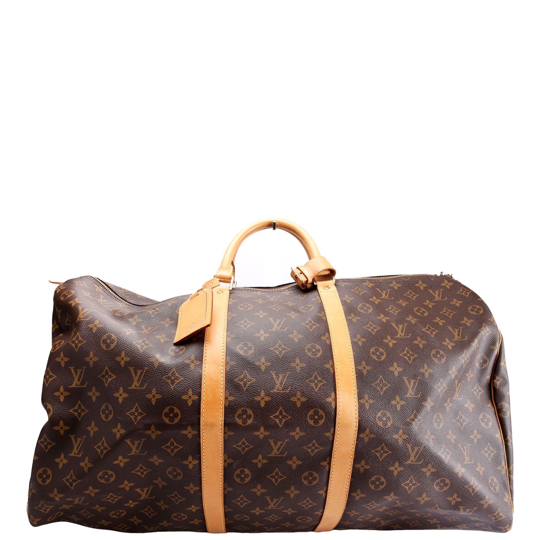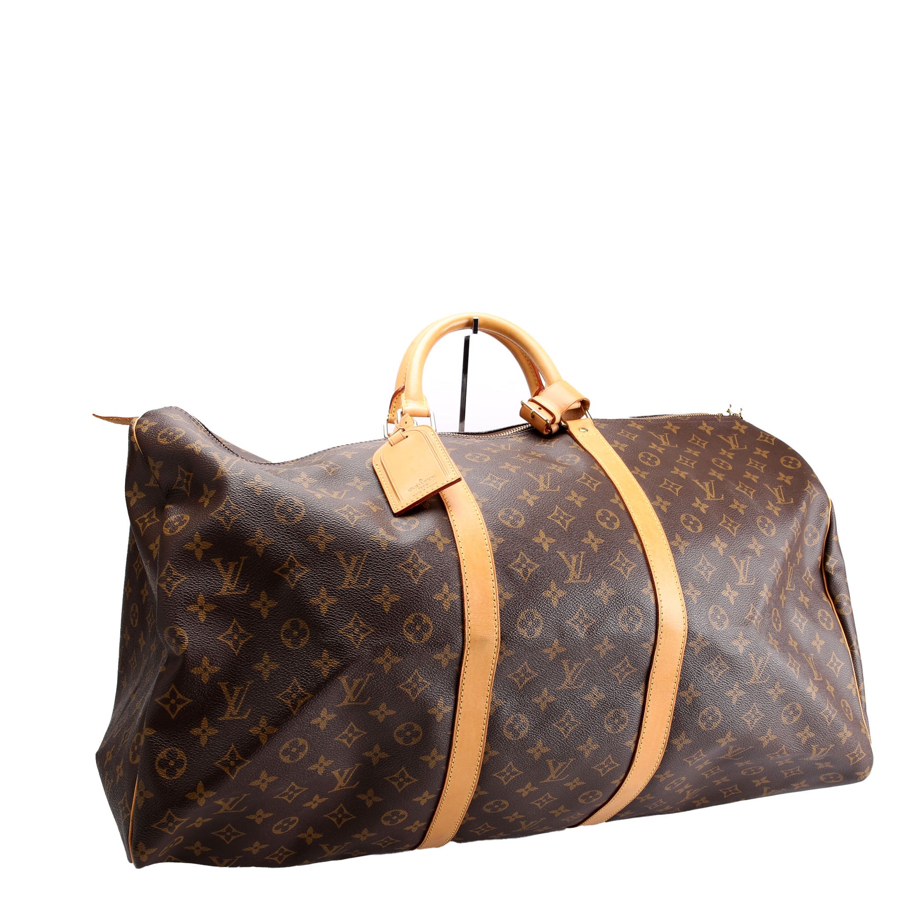 This pre-owned Louis Vuitton Keepall 60 is guaranteed 100% authentic. The exterior is in the classic Monogram coated canvas.