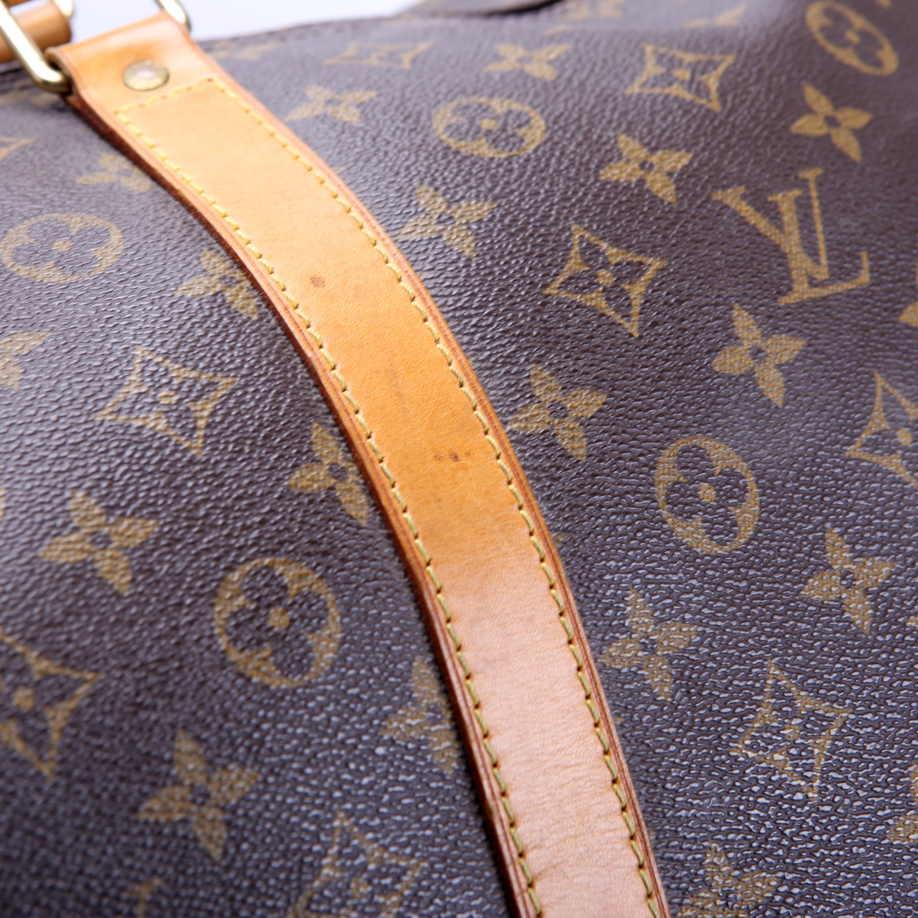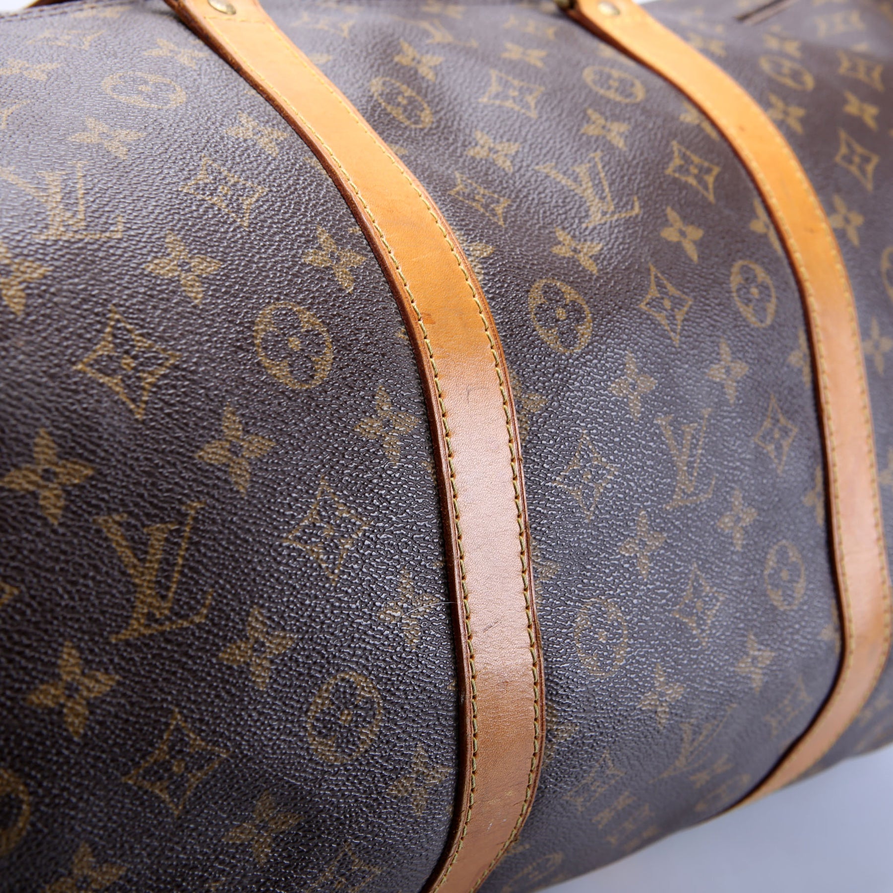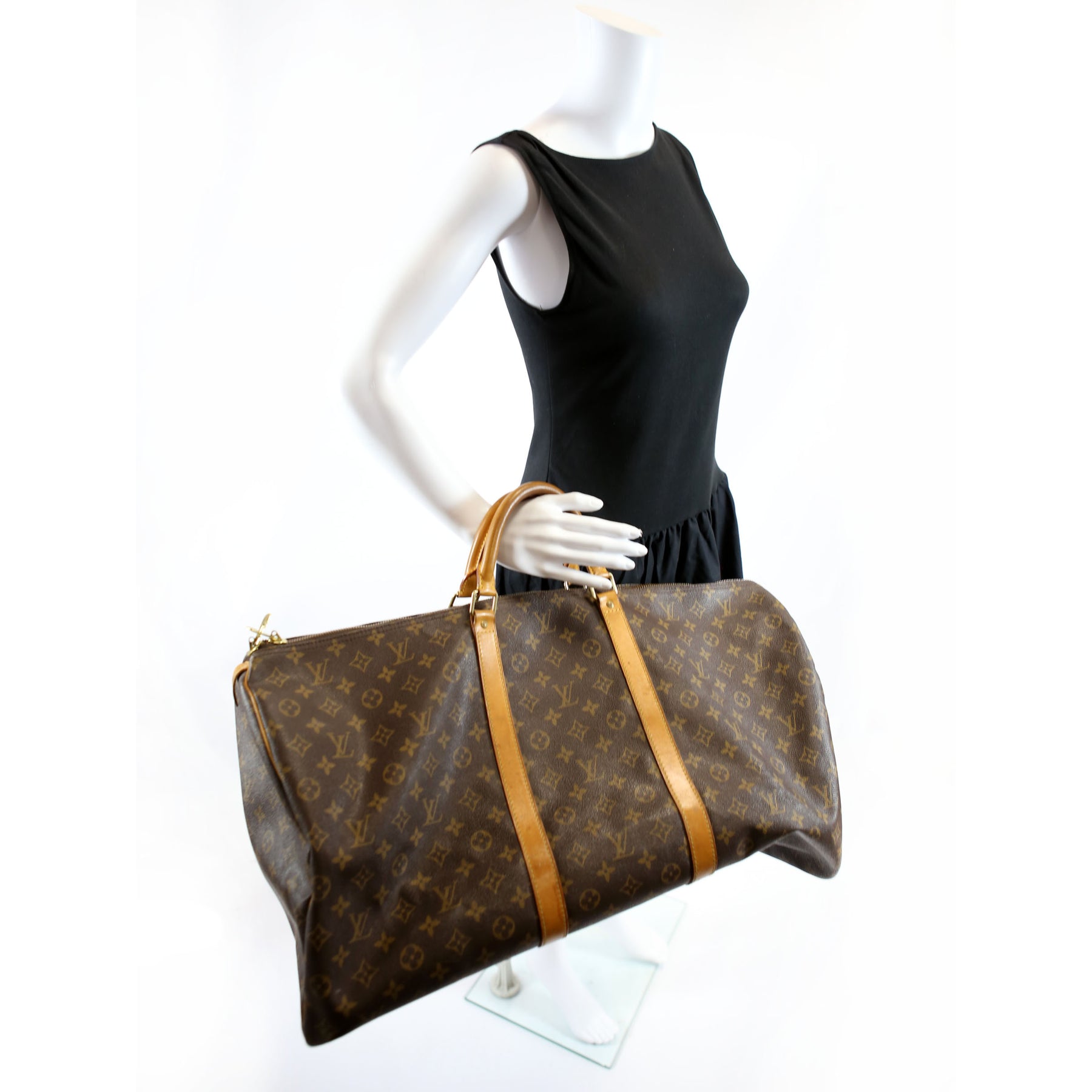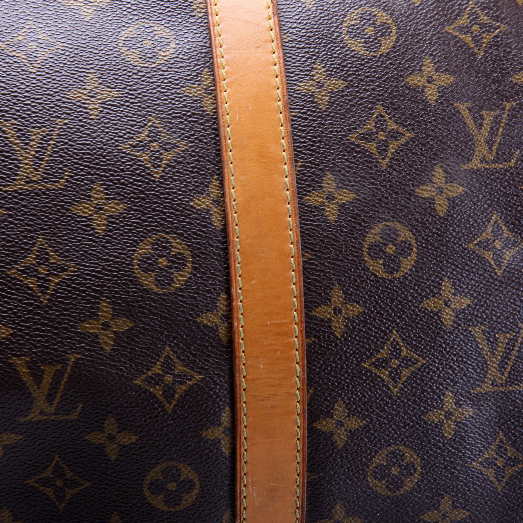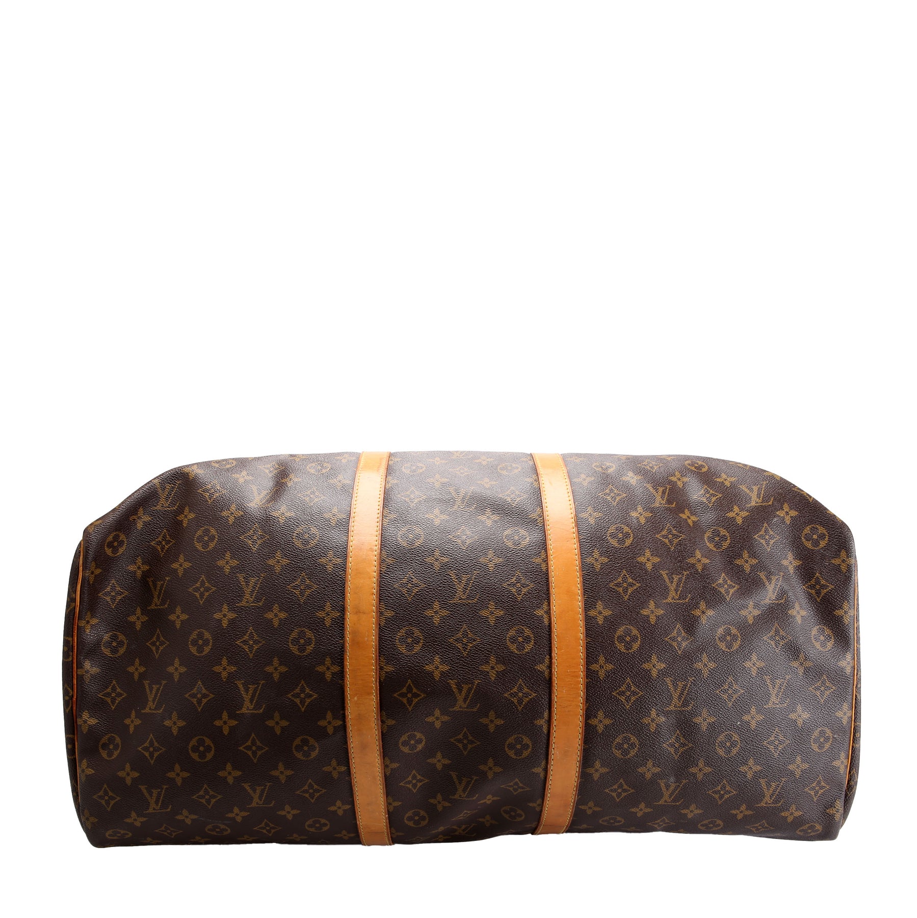 This pre-owned Louis Vuitton Keepall 60 is guaranteed 100% authentic. The exterior is in the classic Louis Vuitton Monogram coated canvas.