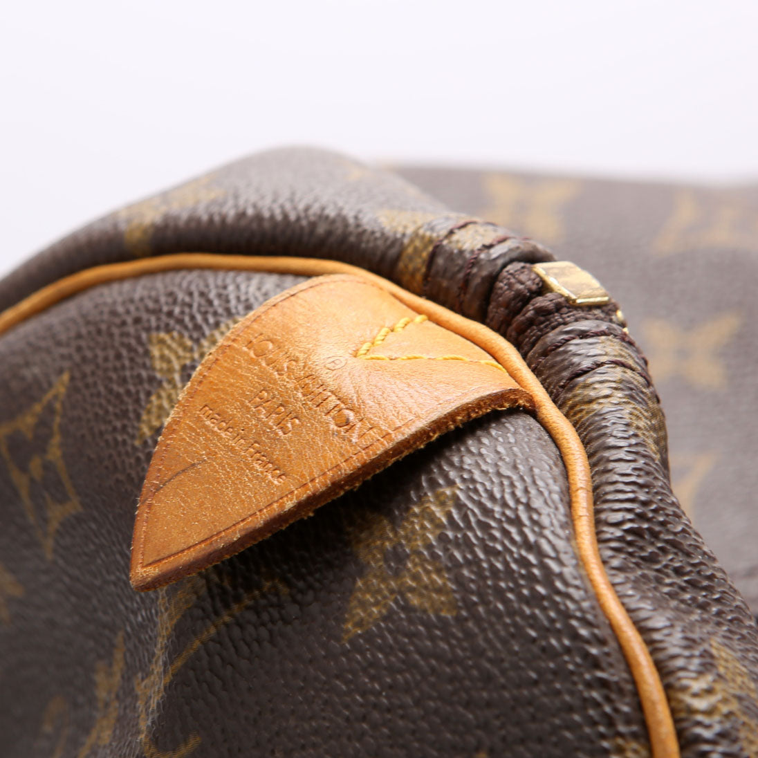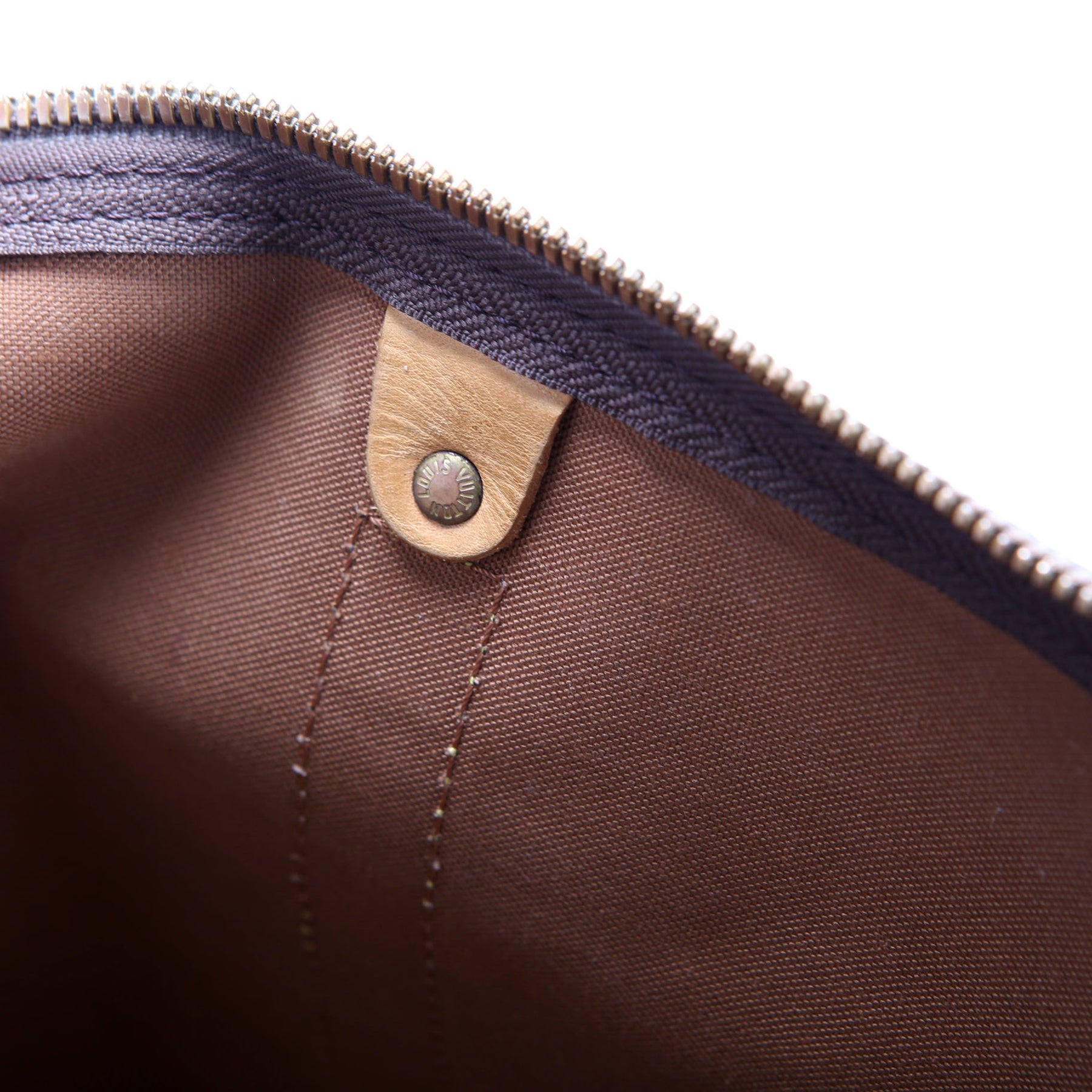 Hardware: The zipper operates properly and runs smoothly. The hardware shows wear and discoloration.