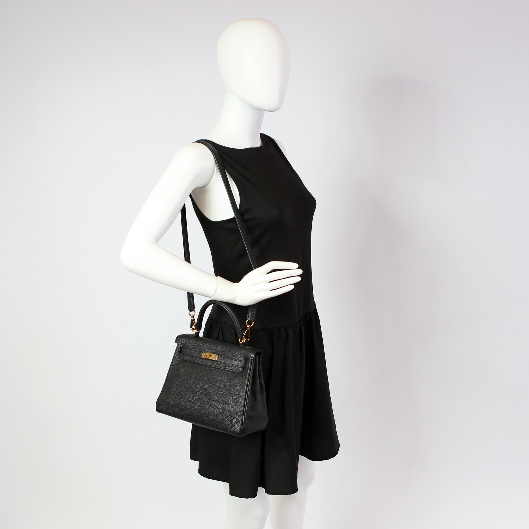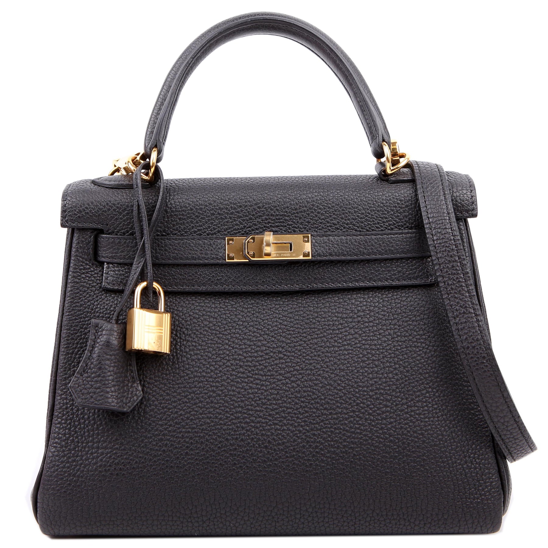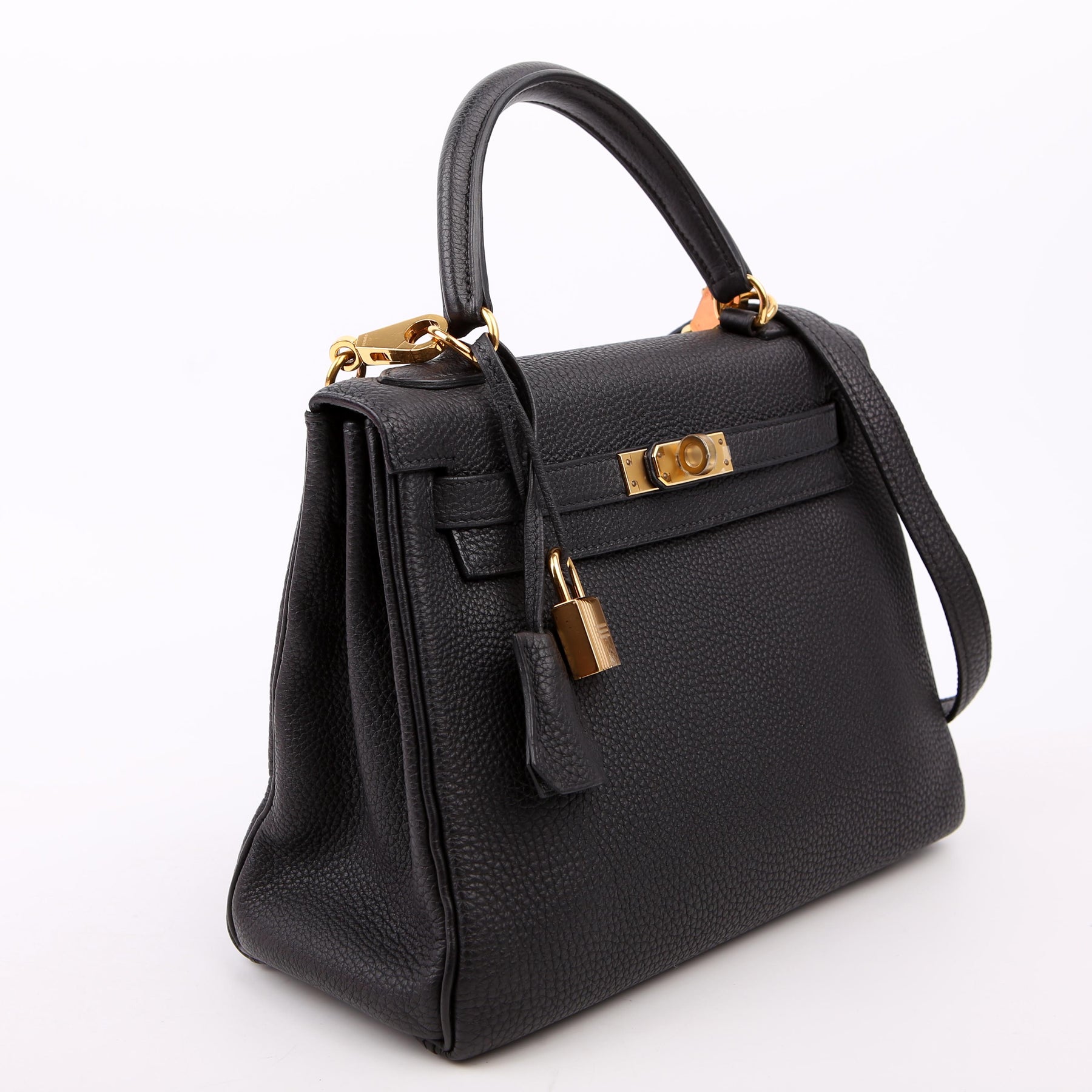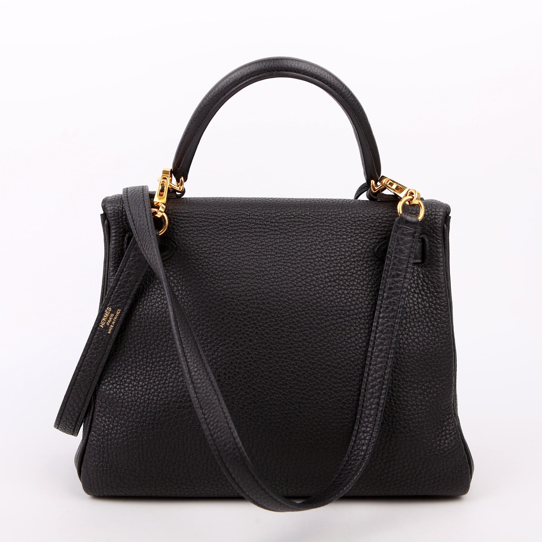 These pre-owned Hermes Kelly Retourne 25 is guaranteed 100% authentic. The exterior is in the classic Hermes Togo leather.