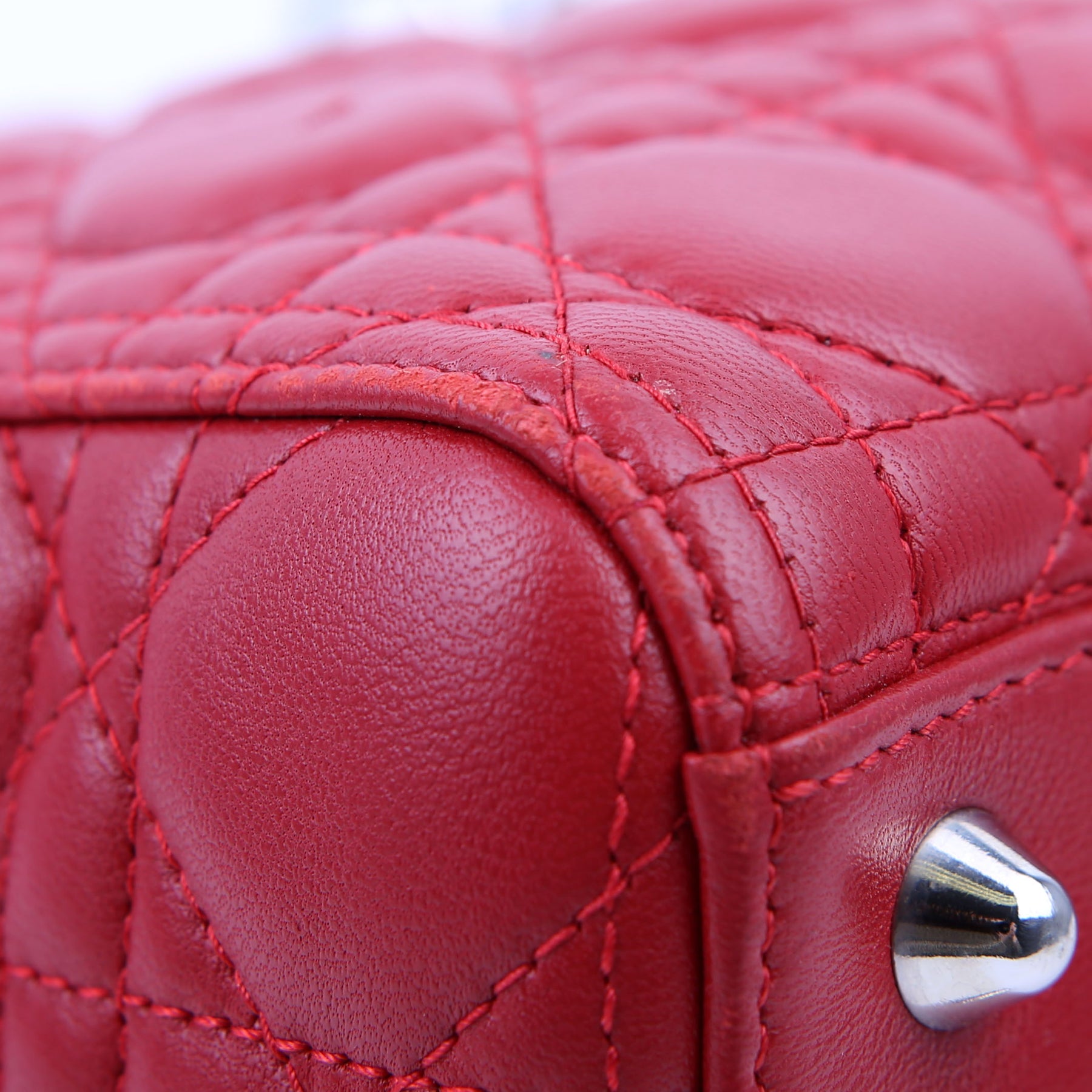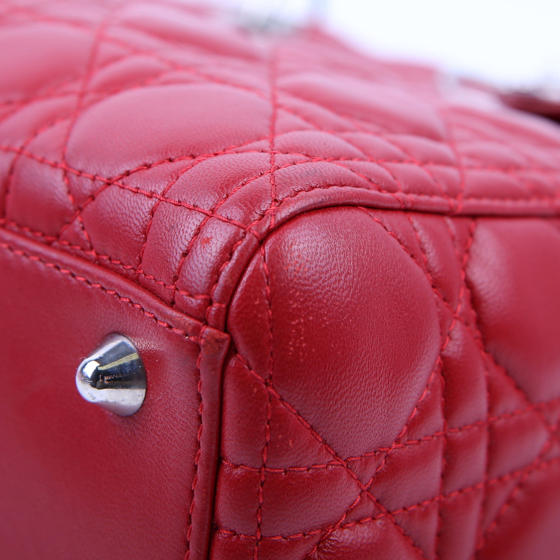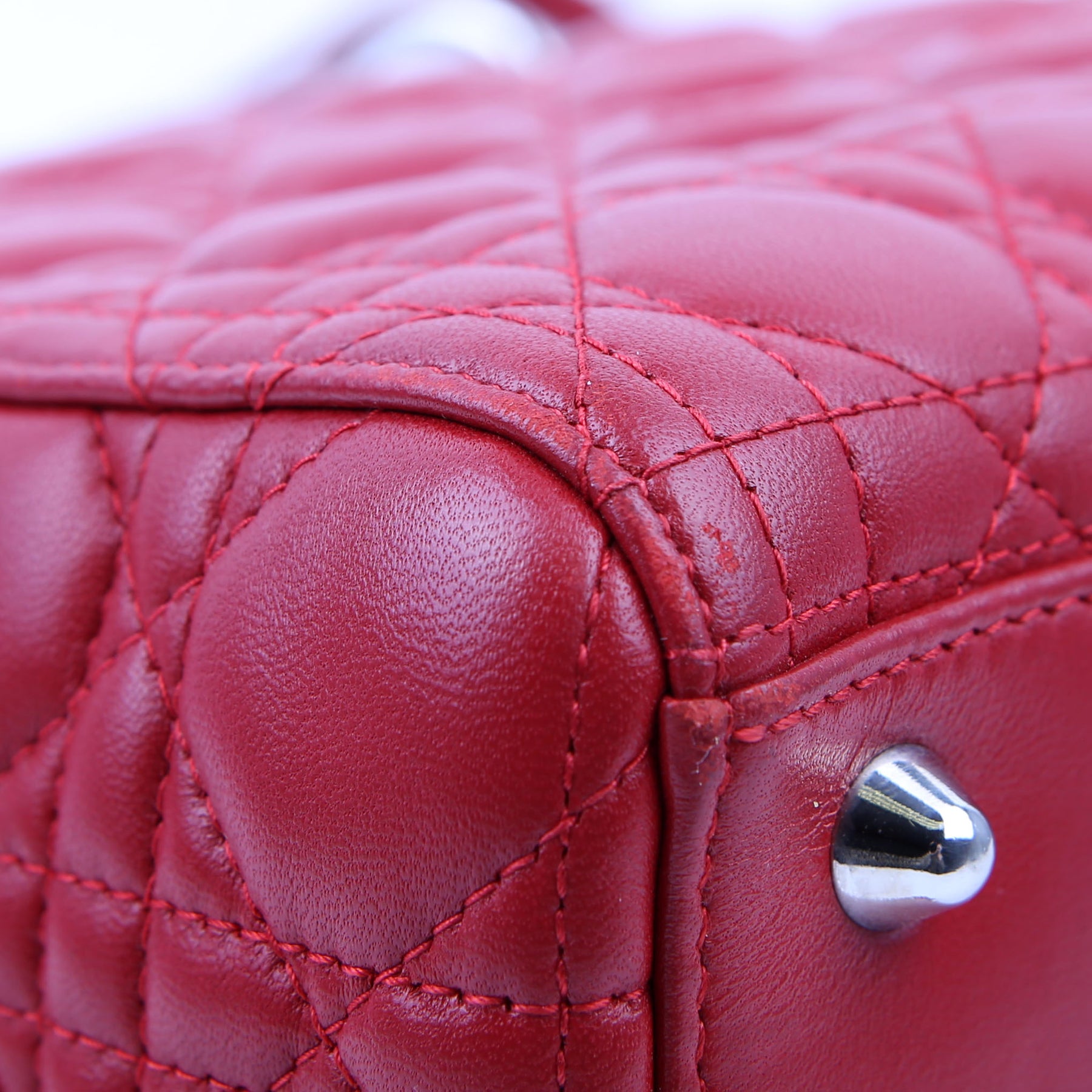 This pre-owned Lady Dior Large is guaranteed 100% authentic. The exterior is in the classic Dior Lambskin leather.