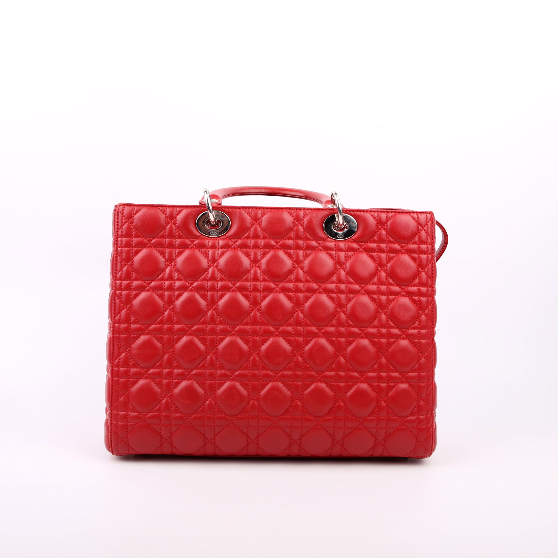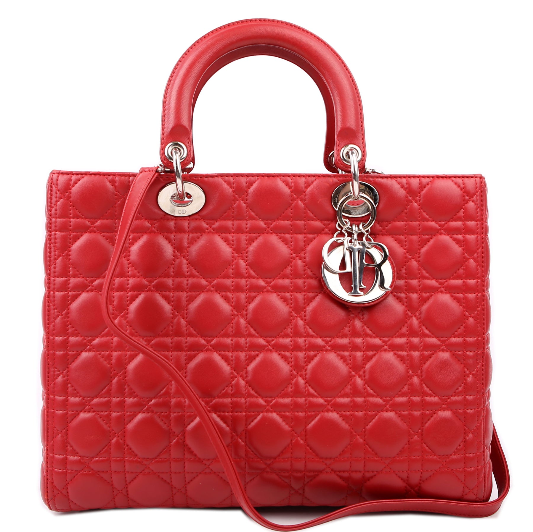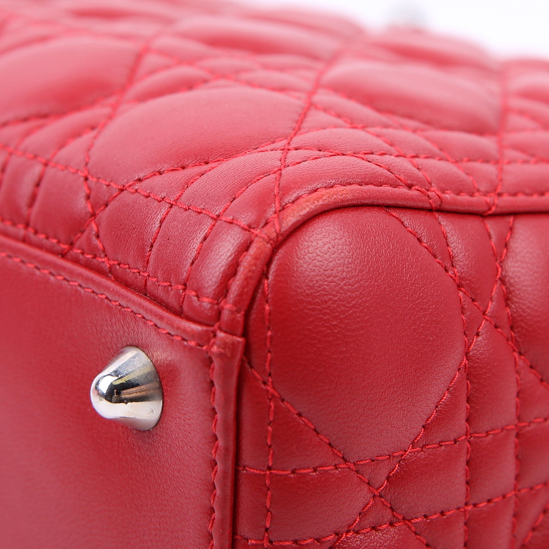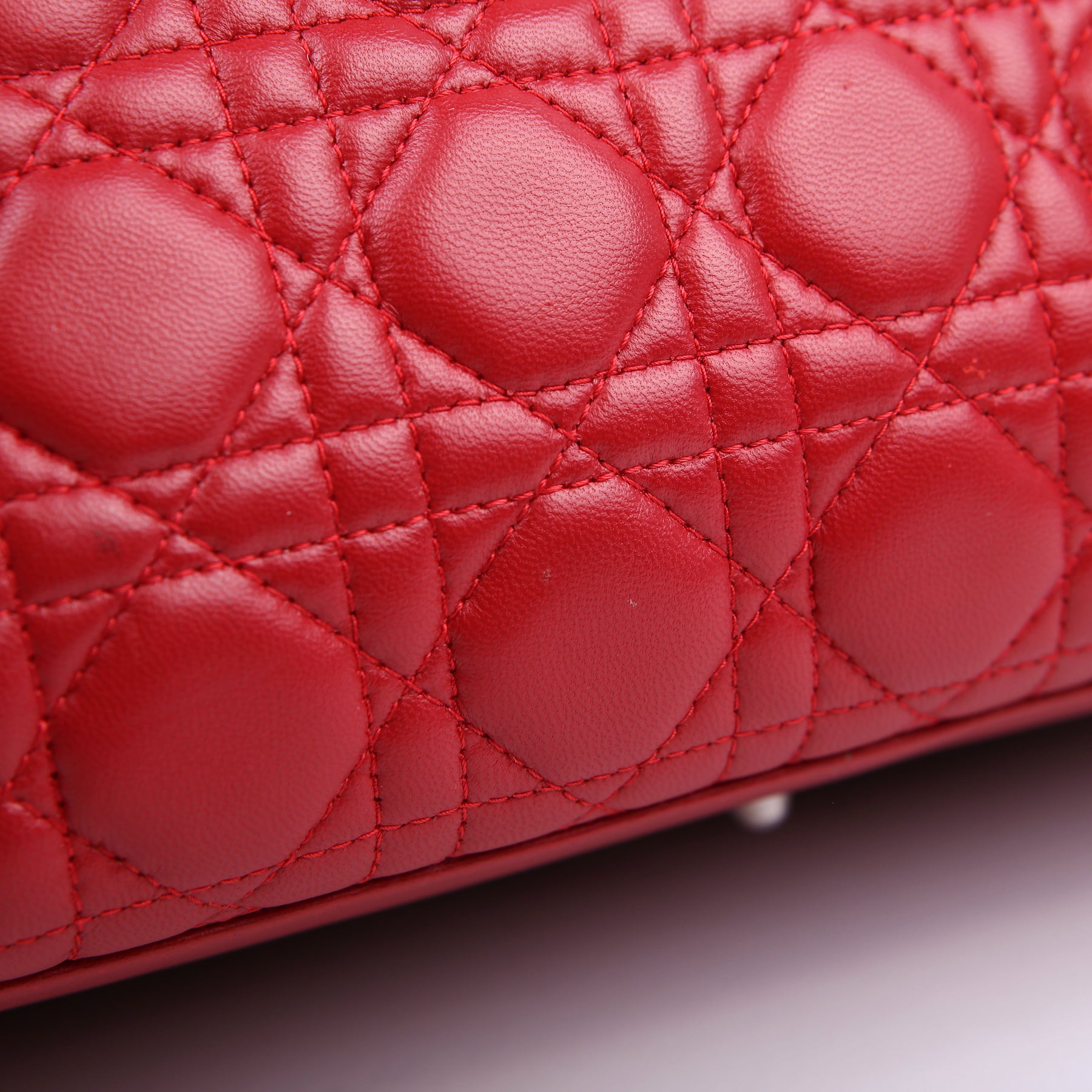 This pre-owned Lady Dior Large is guaranteed 100% authentic. The exterior is in the classic Dior Lambskin leather.