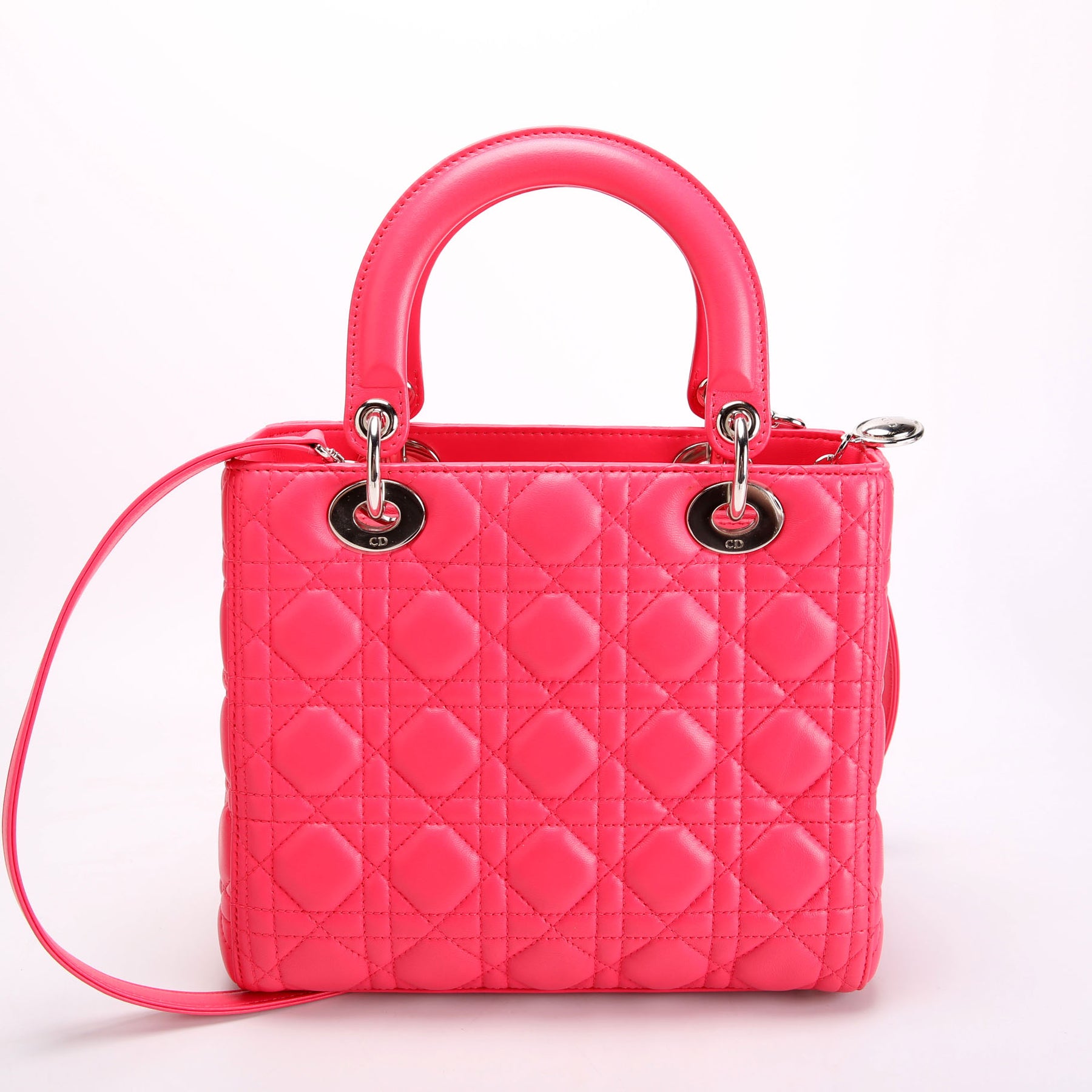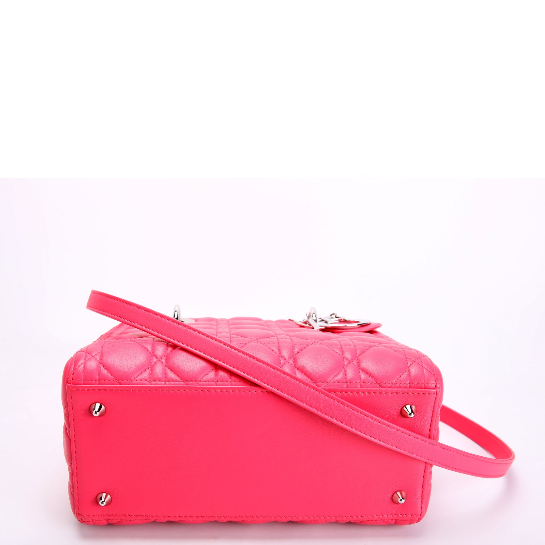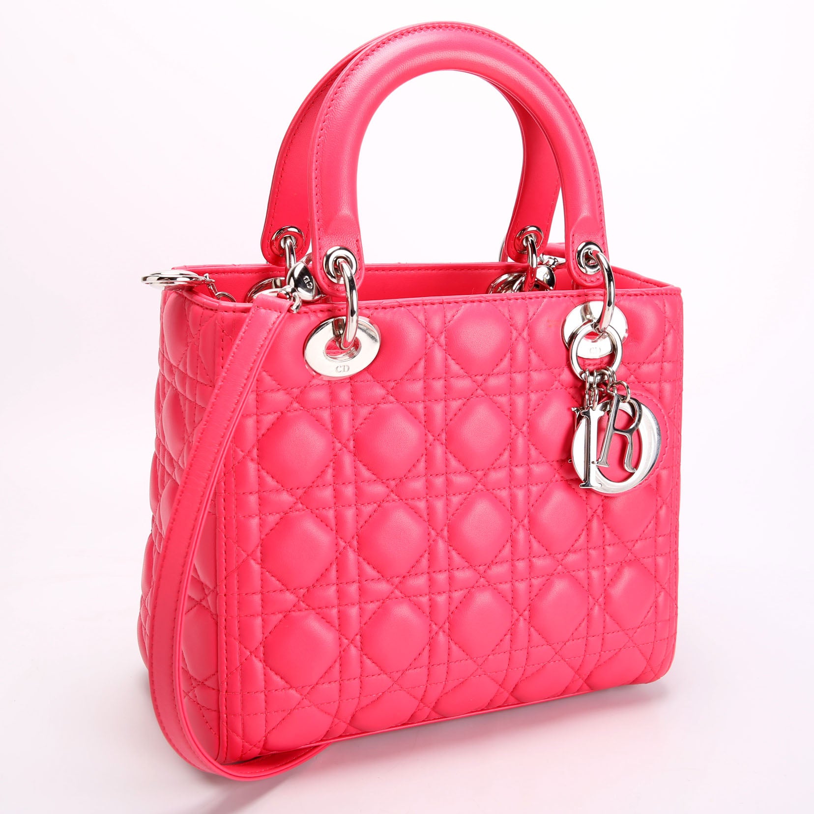 This pre-owned Christian Dior Lady Dior Medium is guaranteed 100% authentic. The exterior is in the classic Christian Dior Lambskin leather.