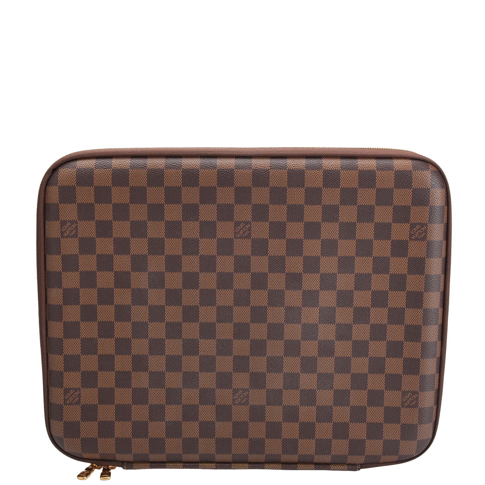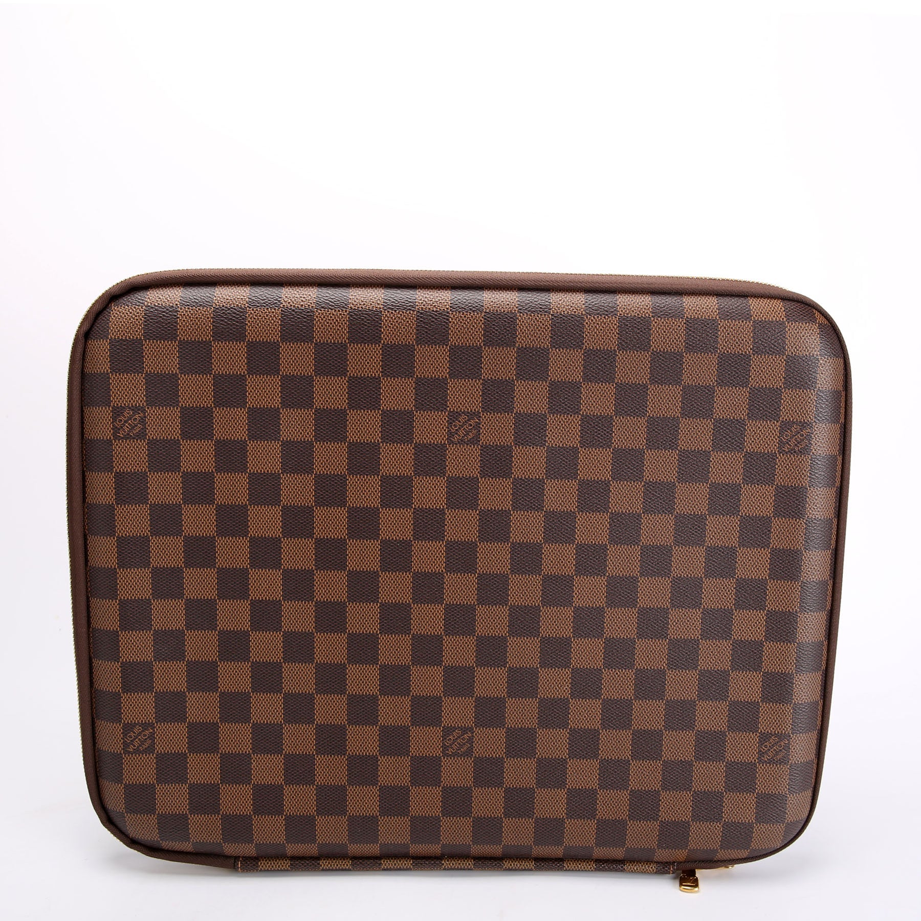This pre-owned Louis Vuitton Laptop Sleeve 15 is guaranteed 100% authentic. The exterior is in the classic Louis Vuitton Coated Canvas Ebene Monogram.