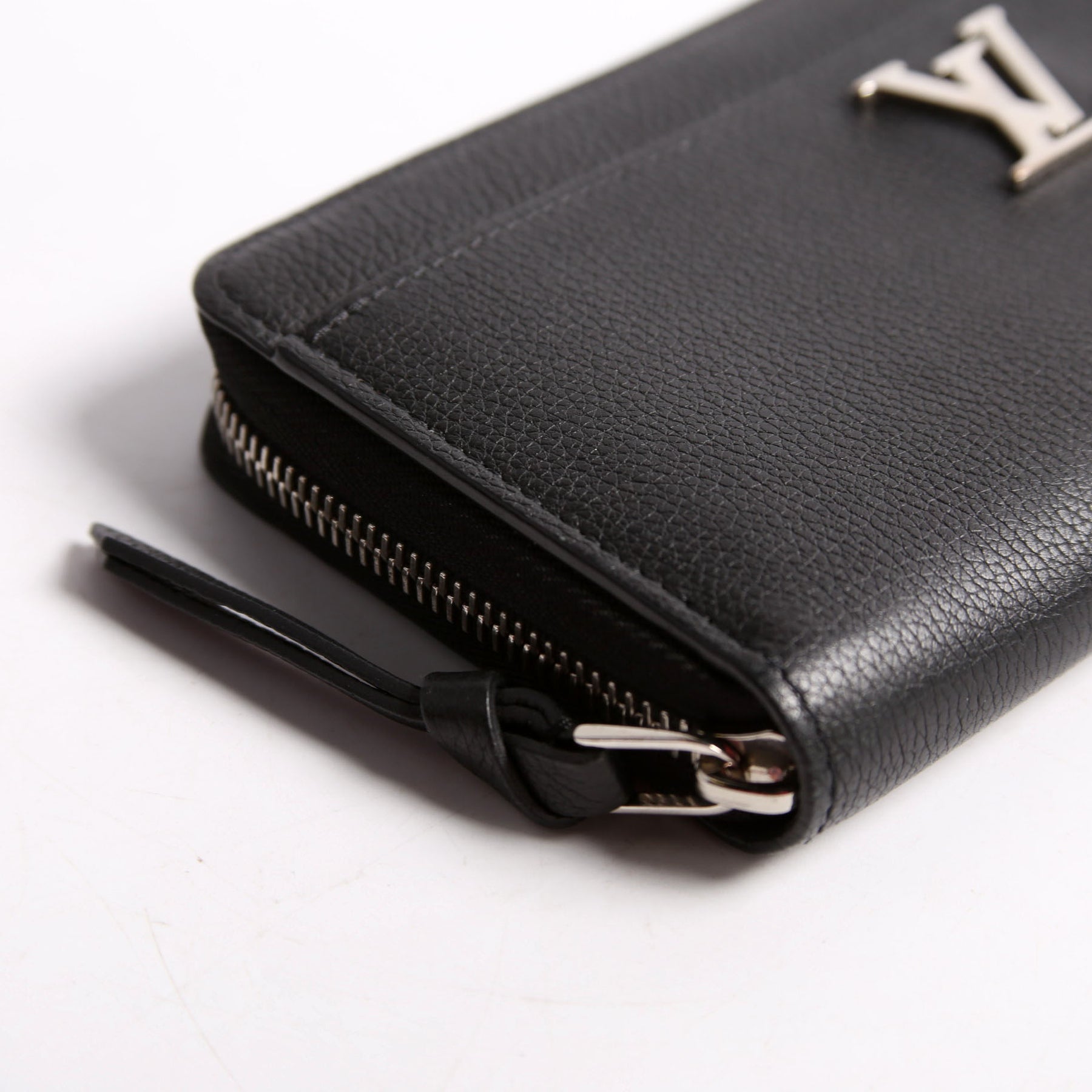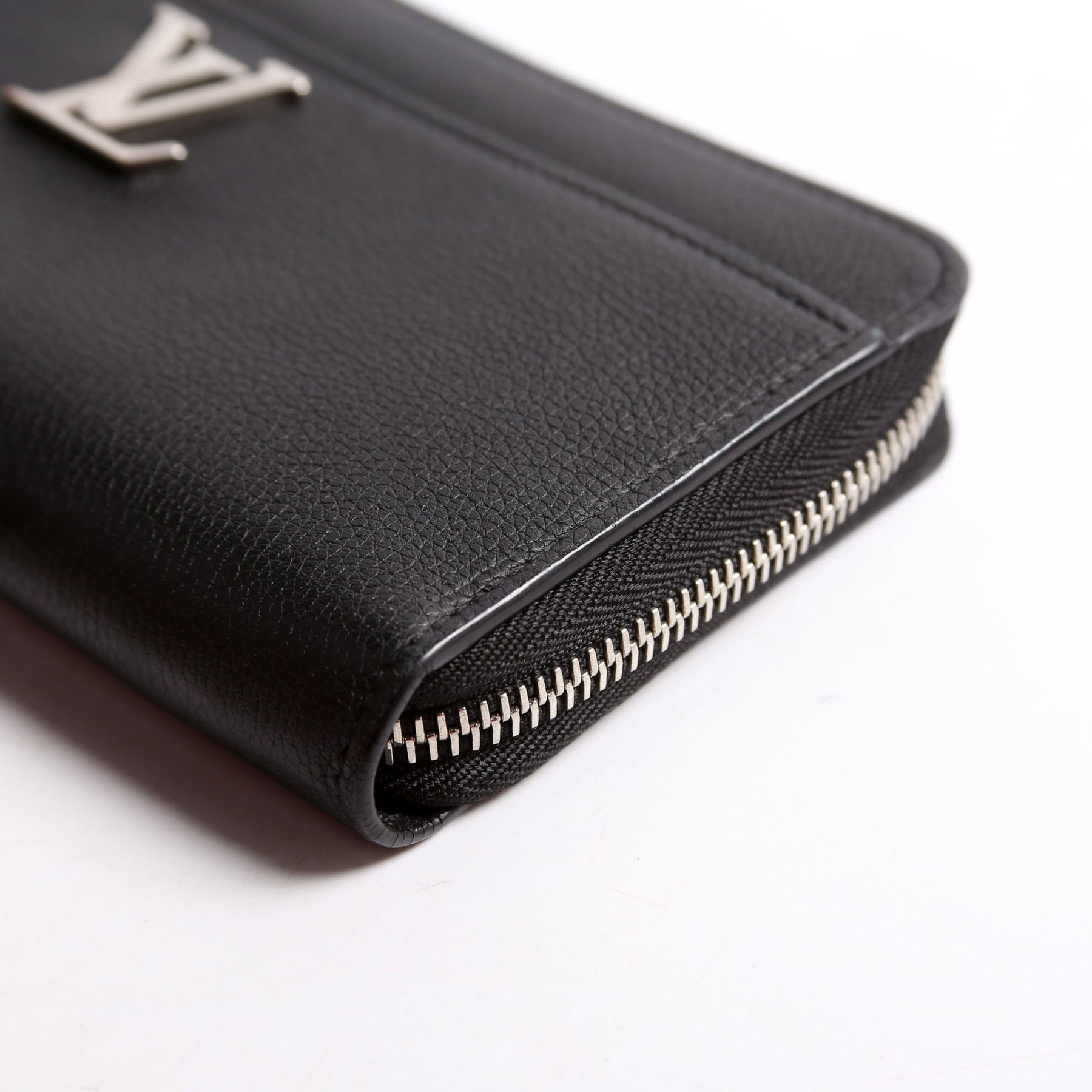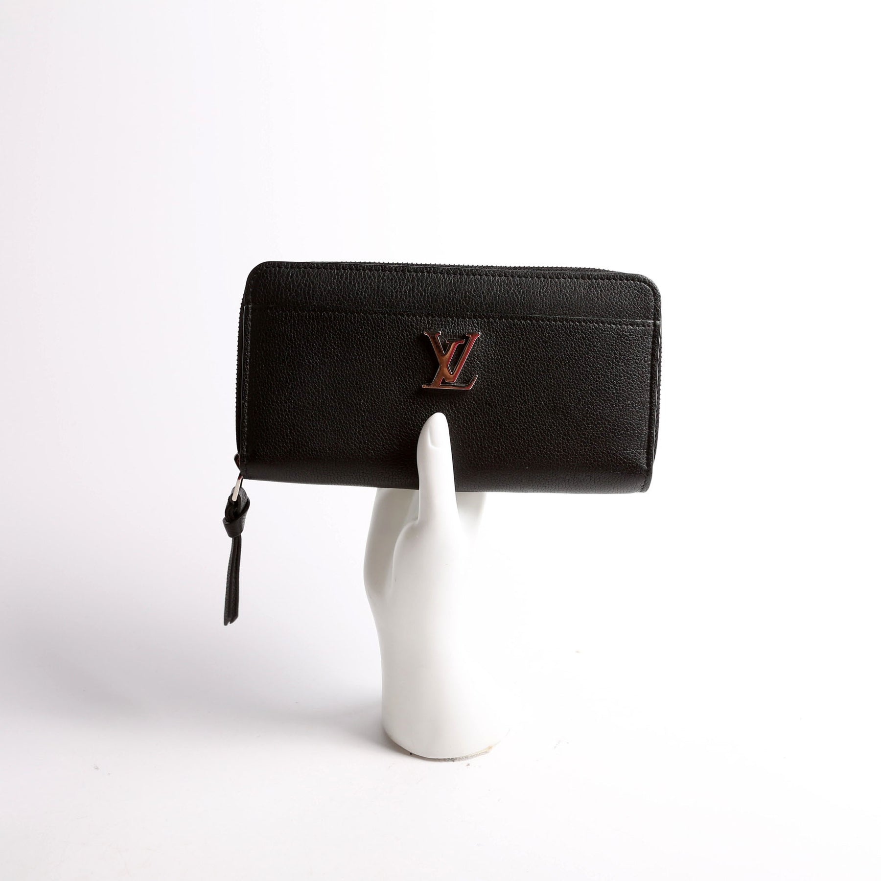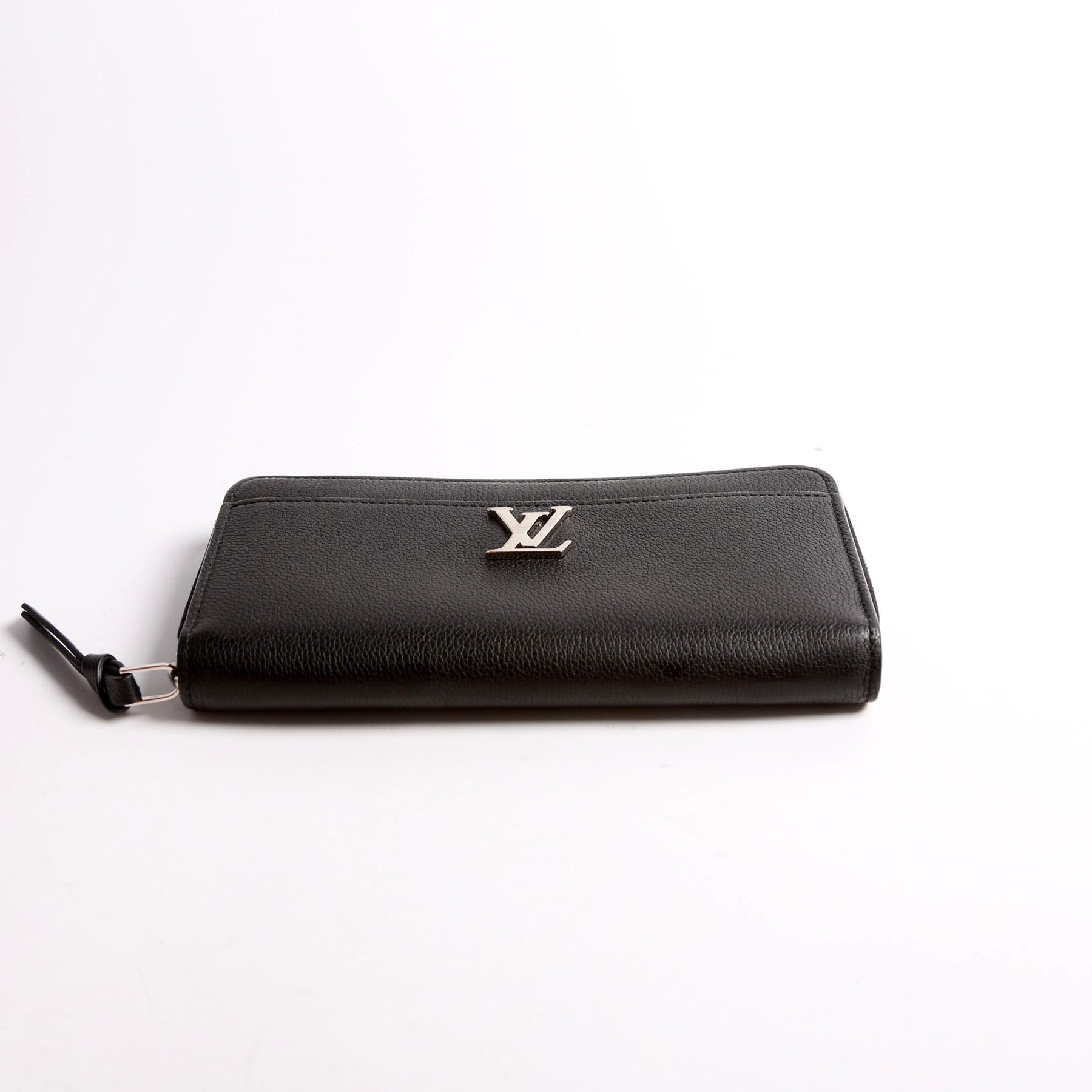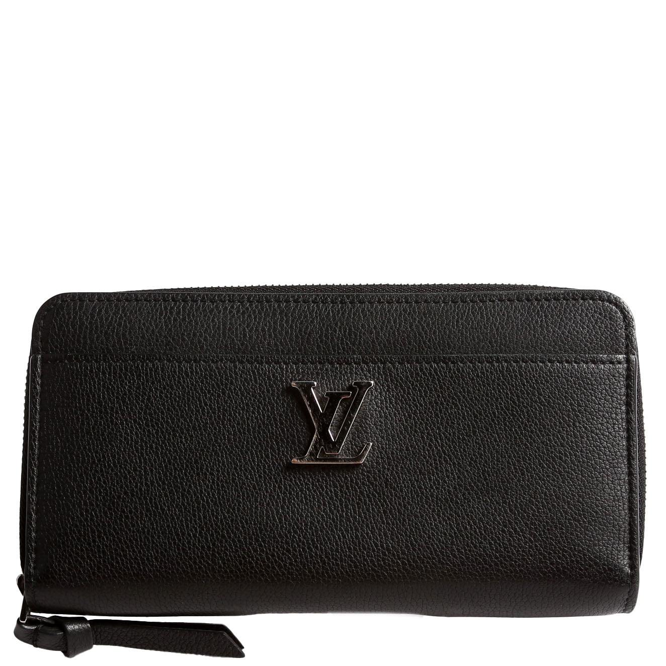 This pre-owned Louis Vuitton My Lockme Zippy Wallet is guaranteed 100% authentic. The exterior is in calfskin leather.