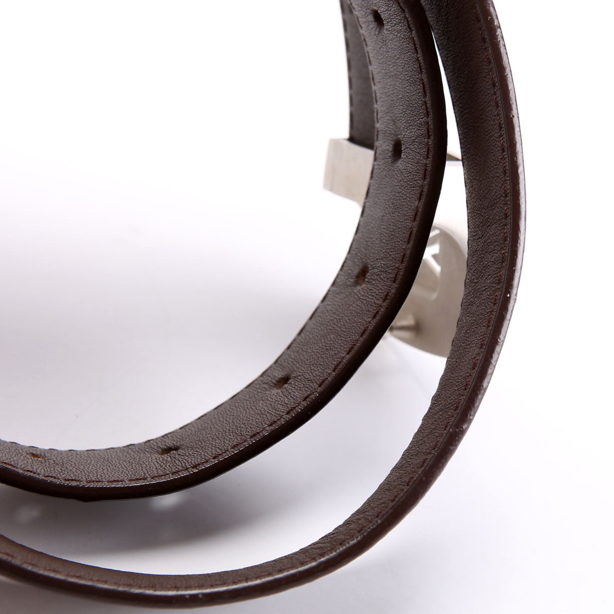 Hardware: The buckle operates properly. It shows light staining.