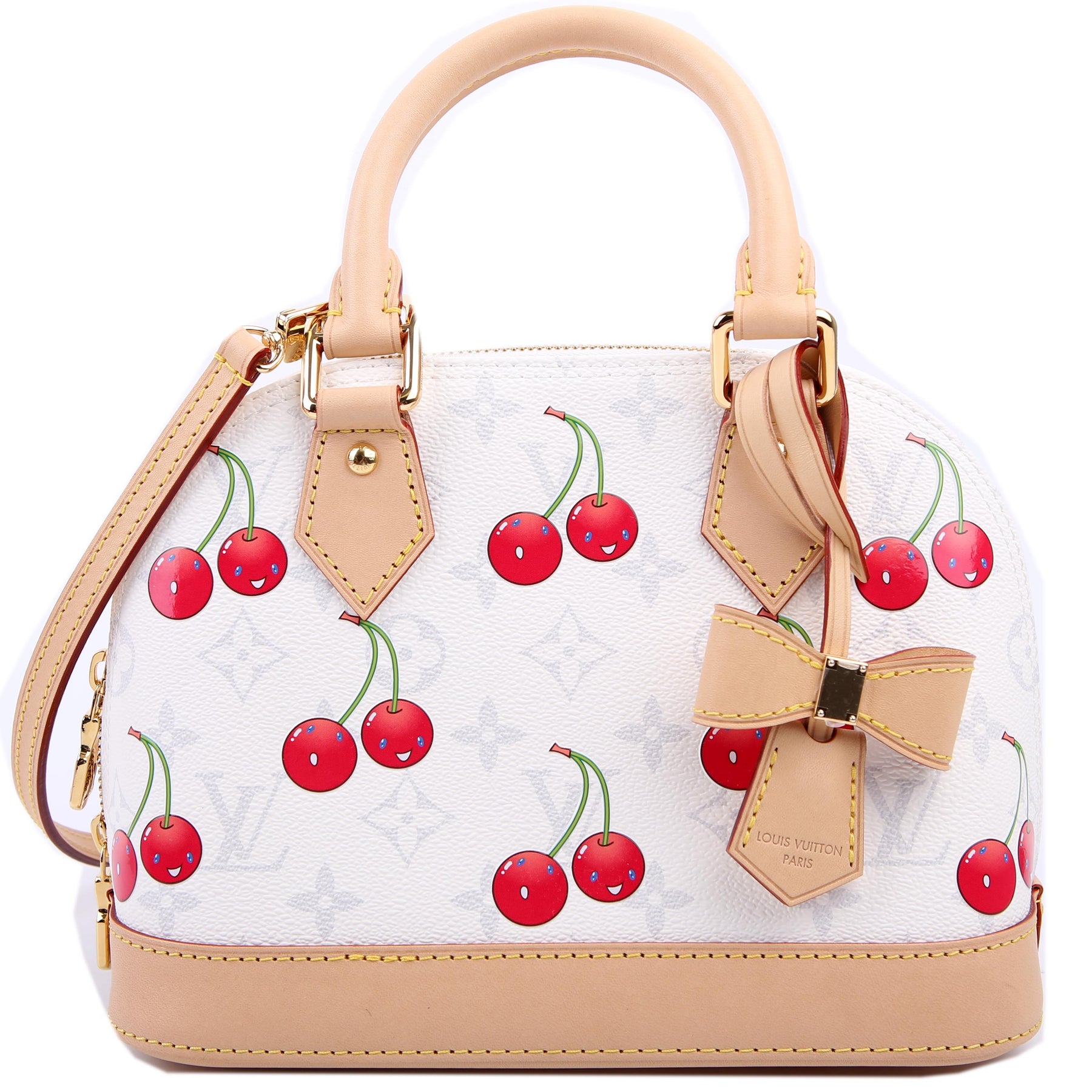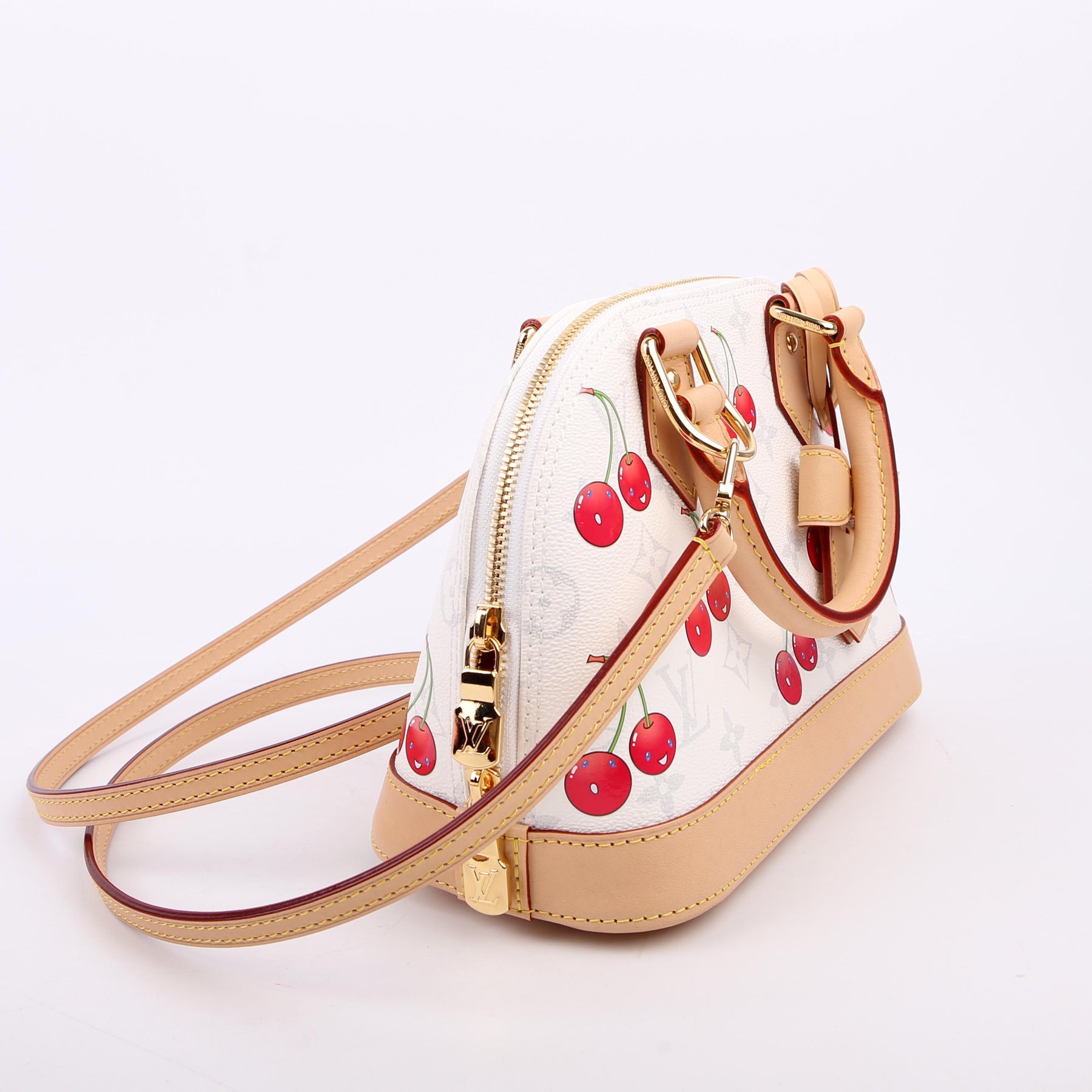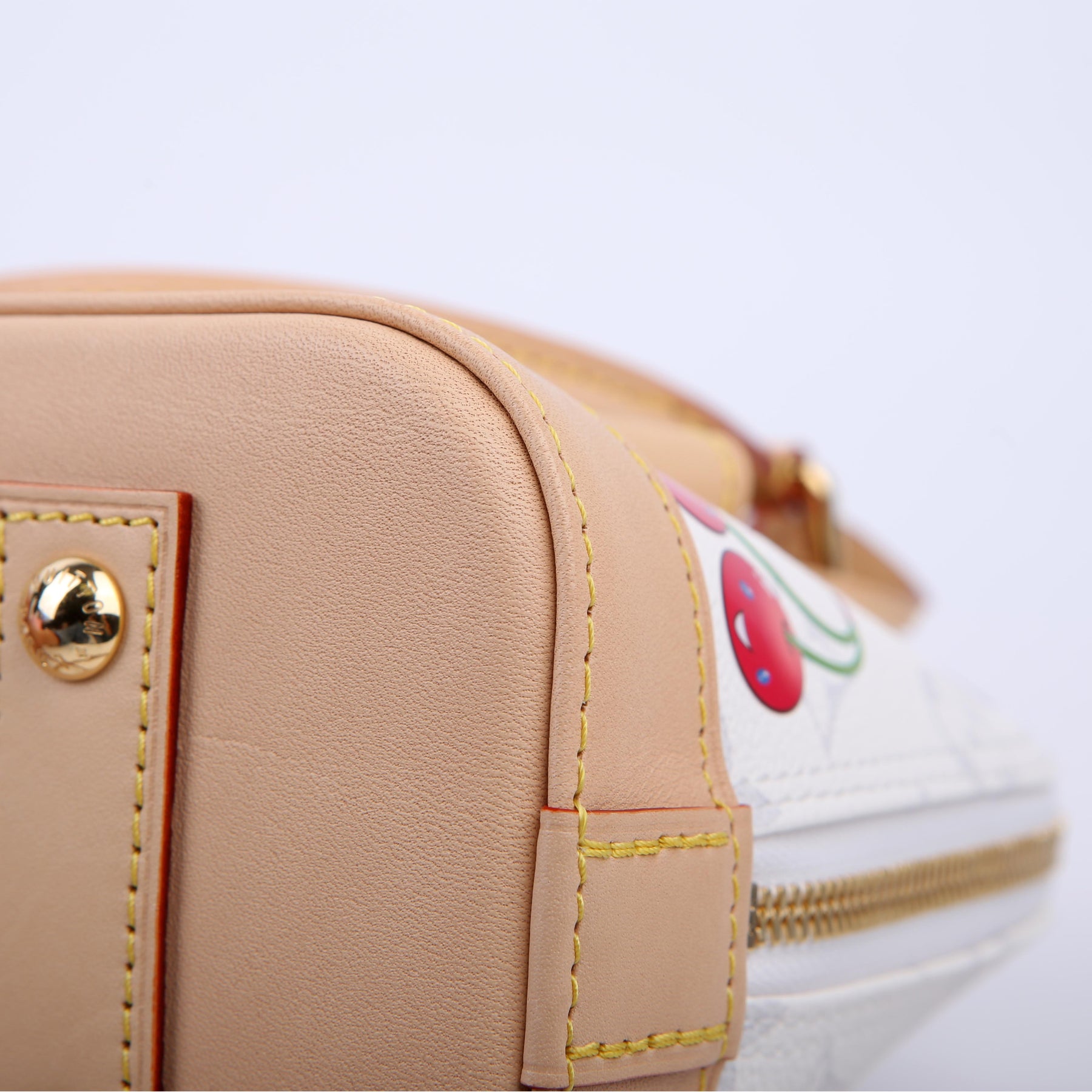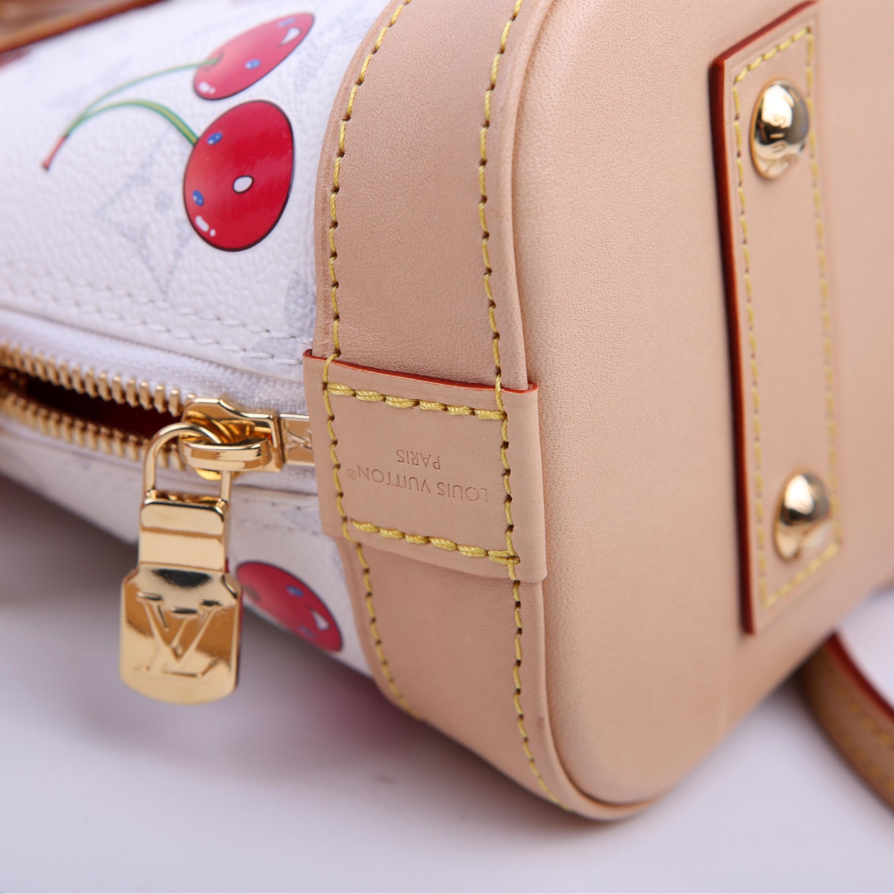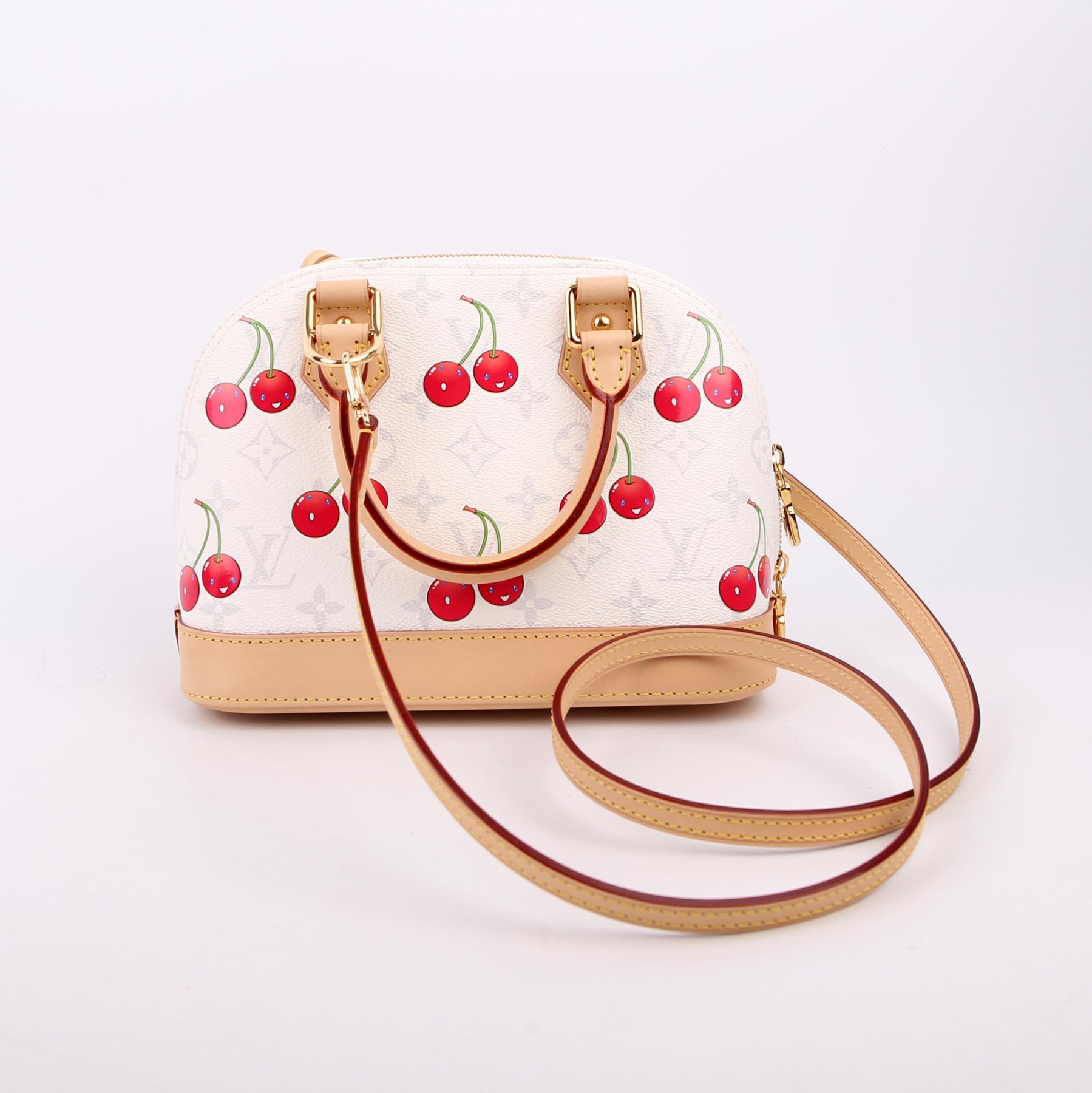 This pre-owned Louis Vuitton LV X TM Alma BB Cerises is guaranteed 100% authentic. The exterior is in the classic Louis Vuitton Monogram coated canvas.