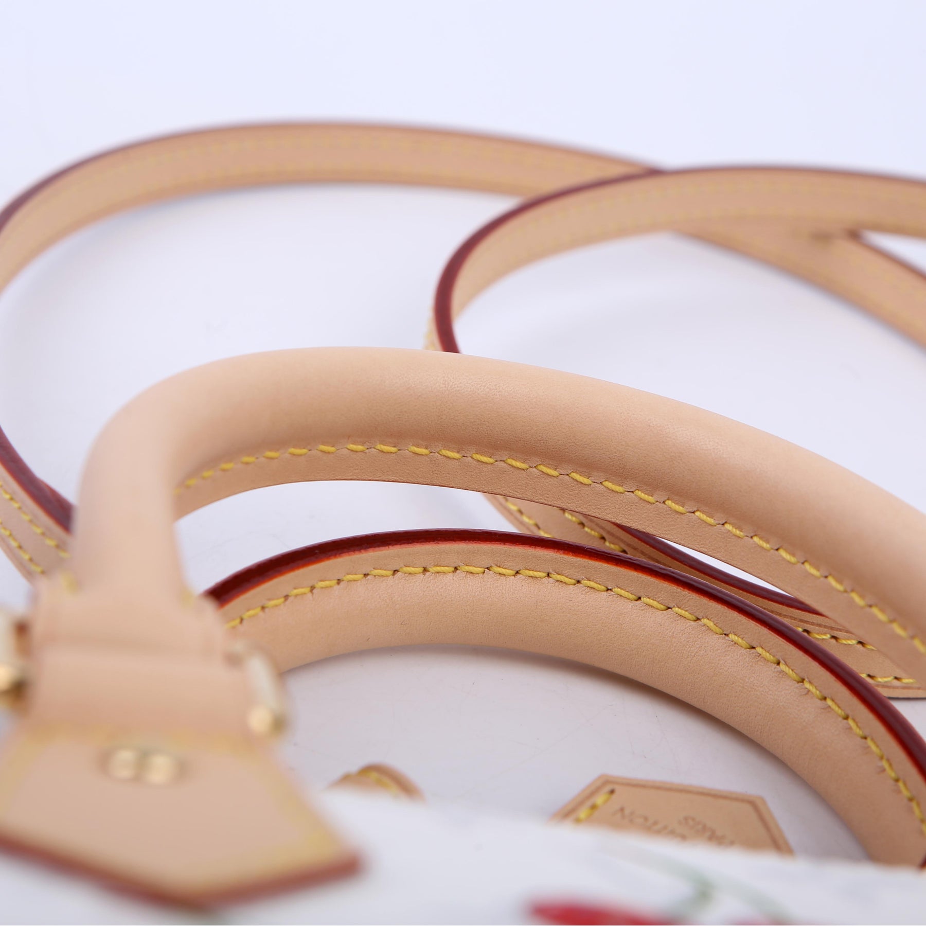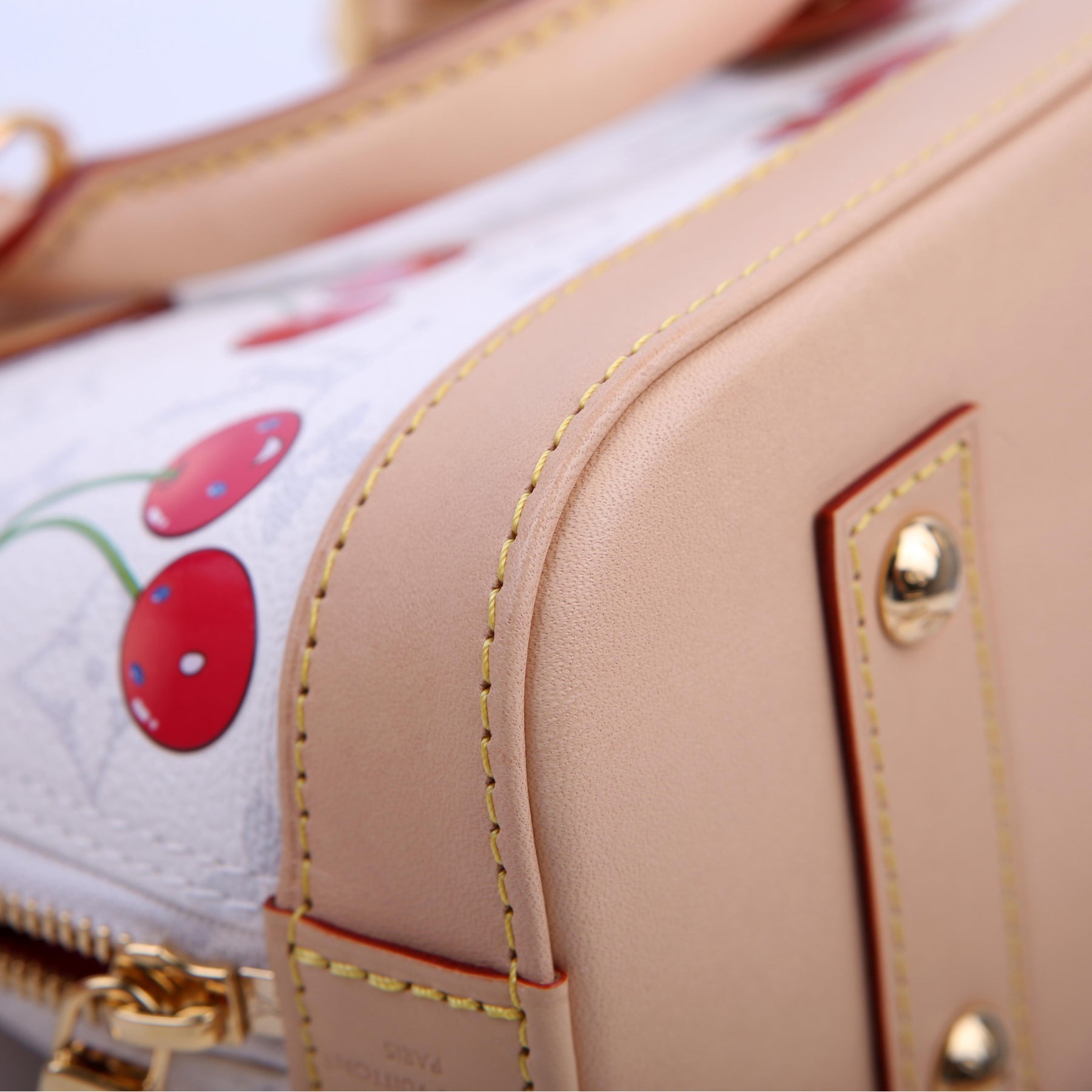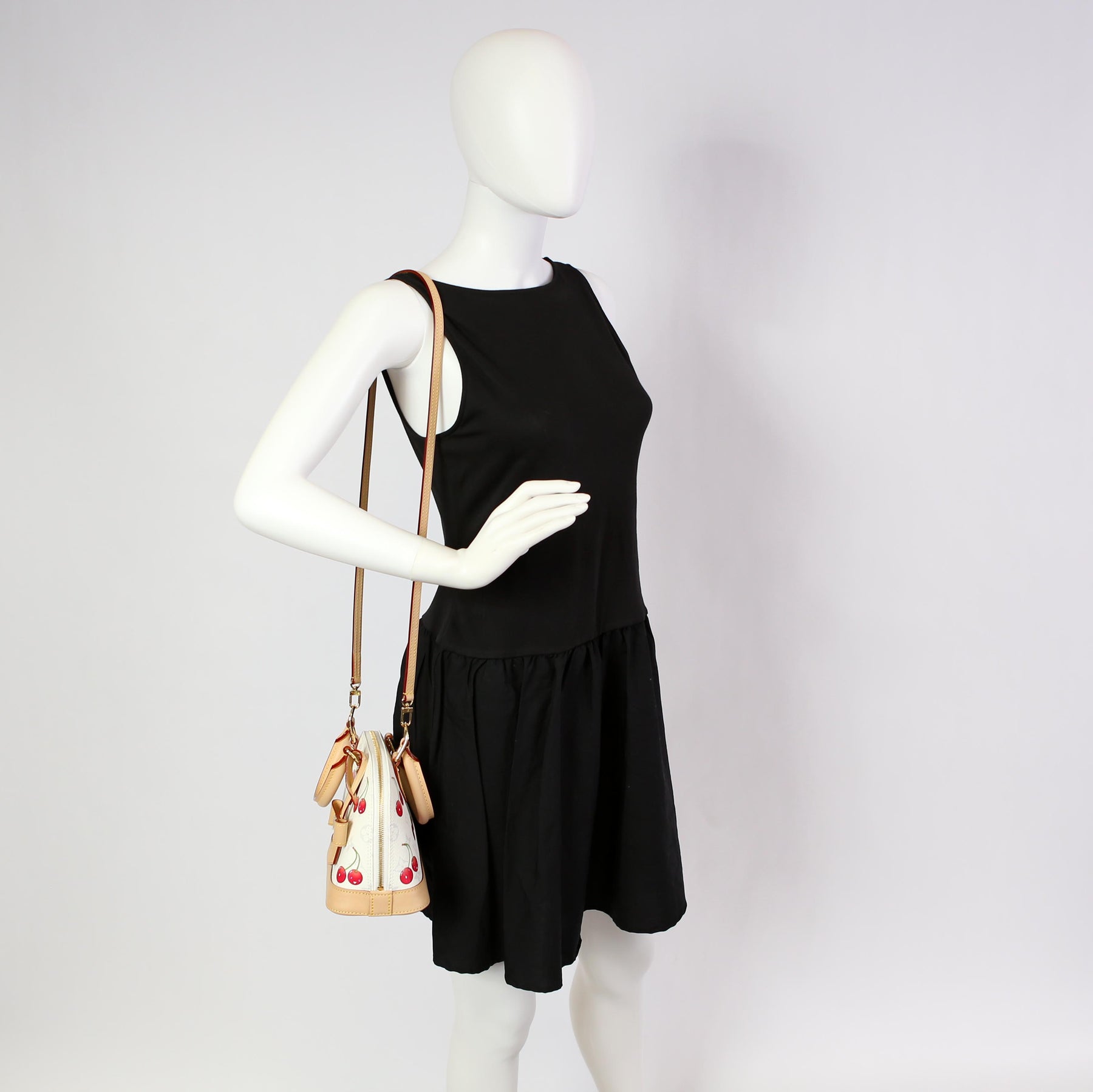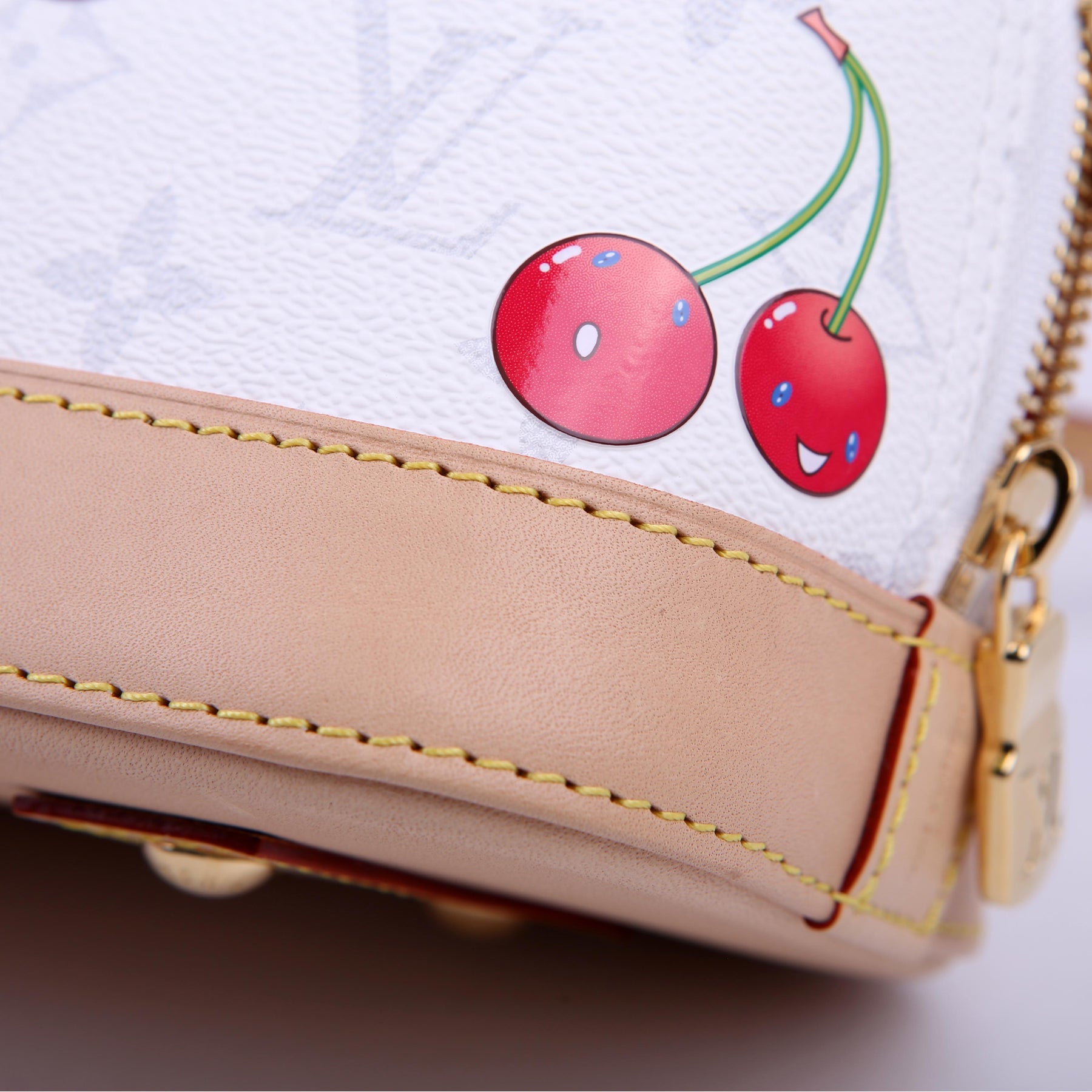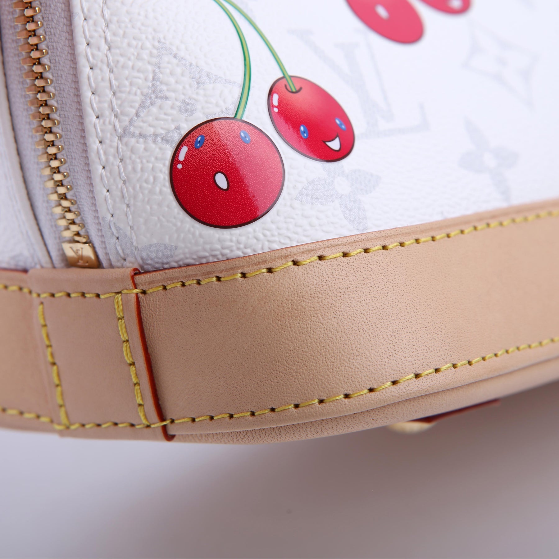 This pre-owned Louis Vuitton LV X TM Alma BB Cerises is guaranteed 100% authentic. The exterior is in the classic Louis Vuitton Monogram coated canvas.