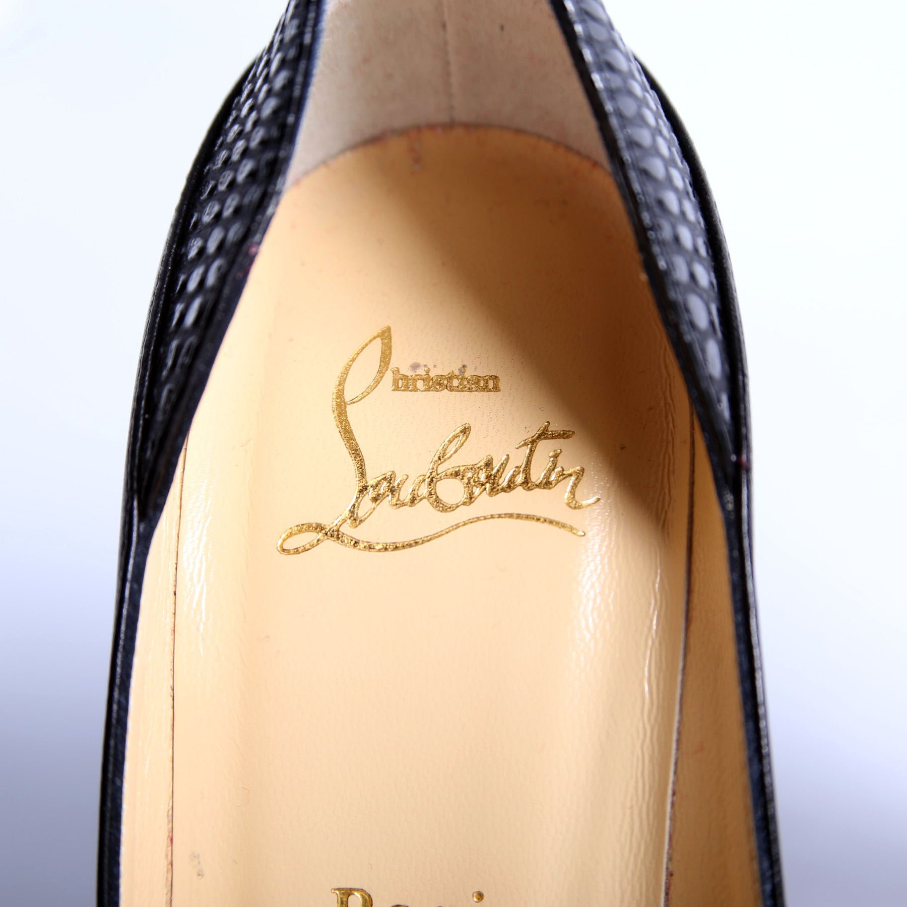 This pre-owned Christian Louboutin Maastrict Nappa Leather 100MM is guaranteed 100% authentic.