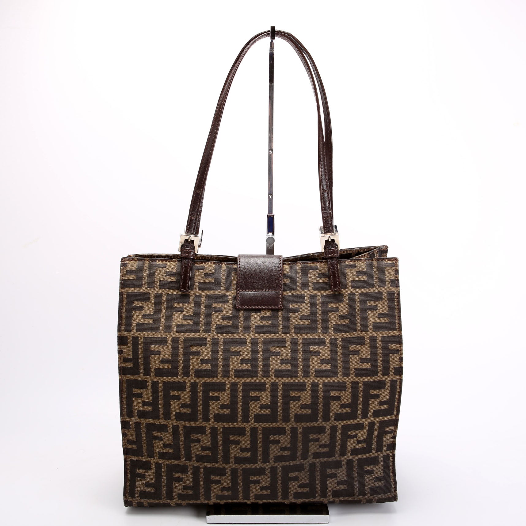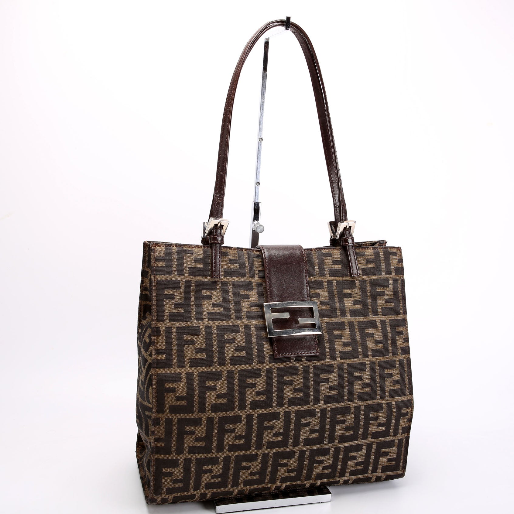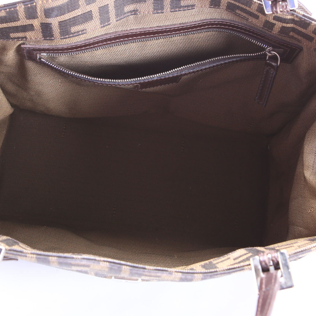 This pre-owned Fendi Mama Baguette Tote is guaranteed 100% authentic. The exterior is in the classic Fendi Canvas.