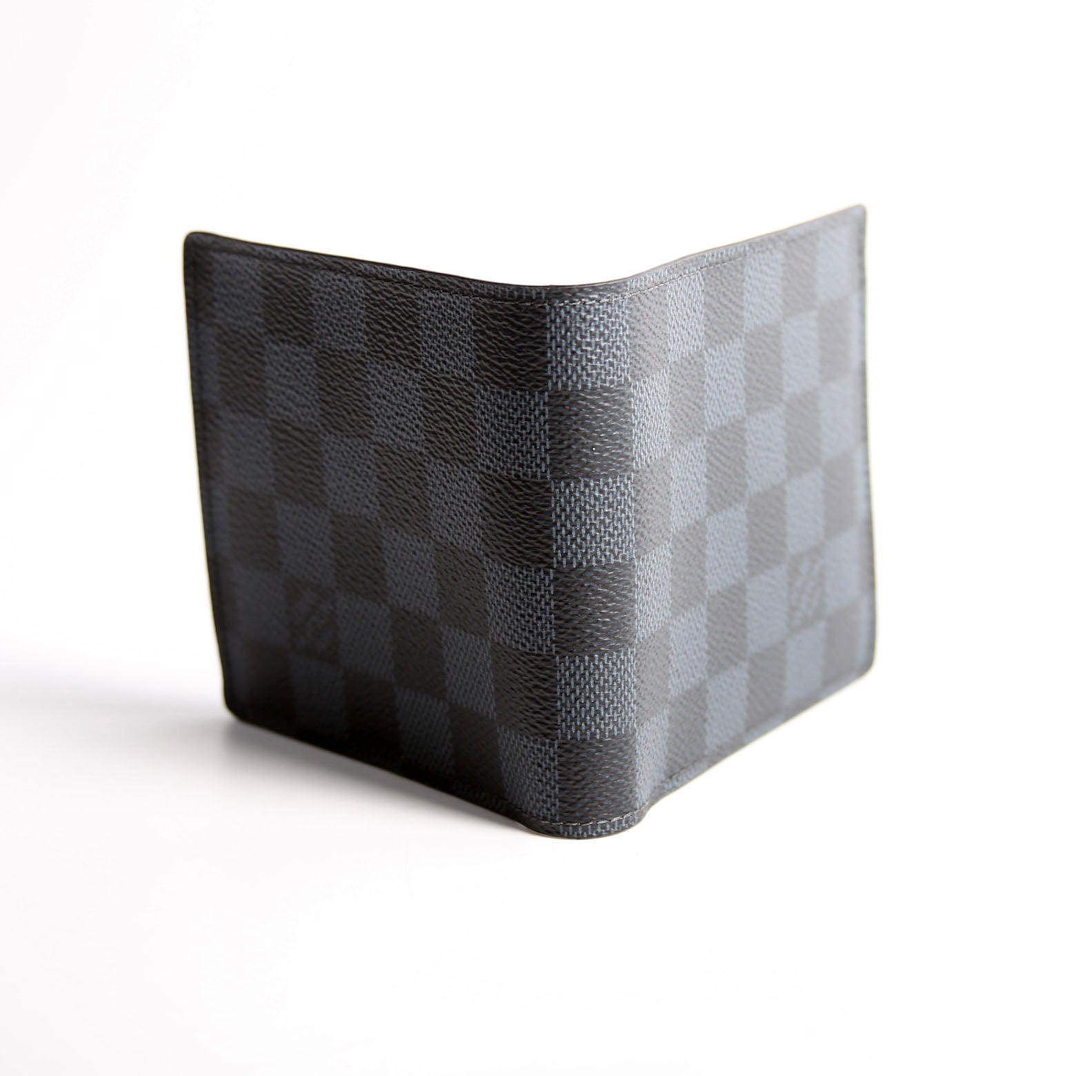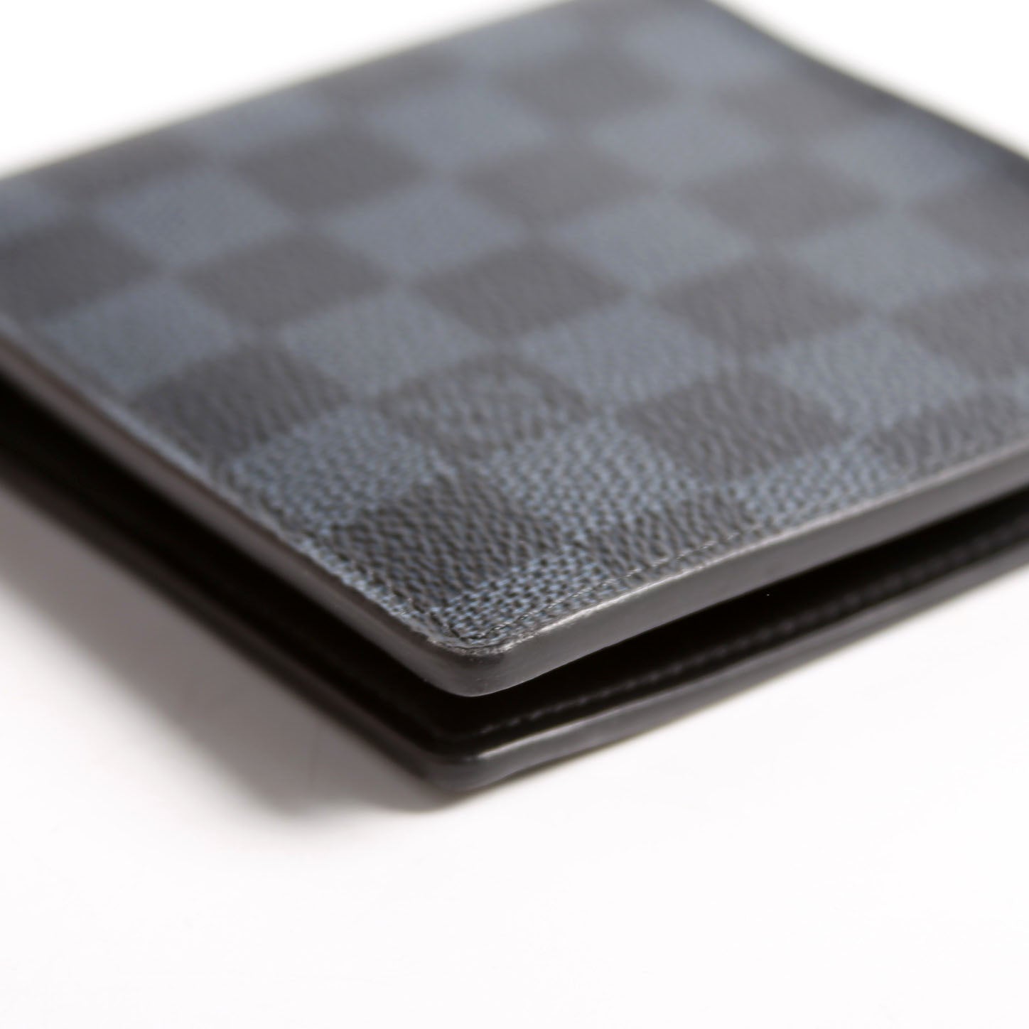 This pre-owned Louis Vuitton Marco Wallet is guaranteed 100% authentic. The exterior is in the classic Louis Vuitton Damier Graphite coated canvas.