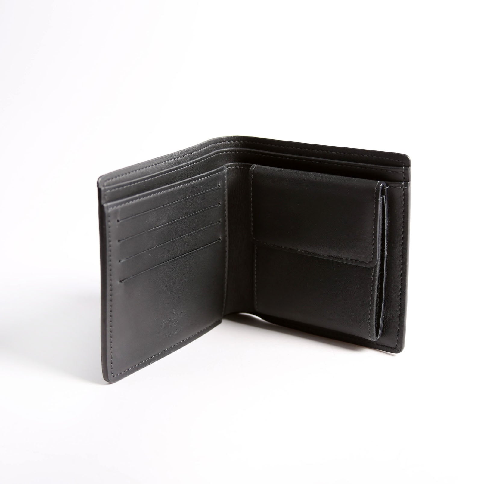 Interior: The interior shows light scuffs to the leather throughout. It features five card slots, one snap closure coin pouch, and two bill slots.
