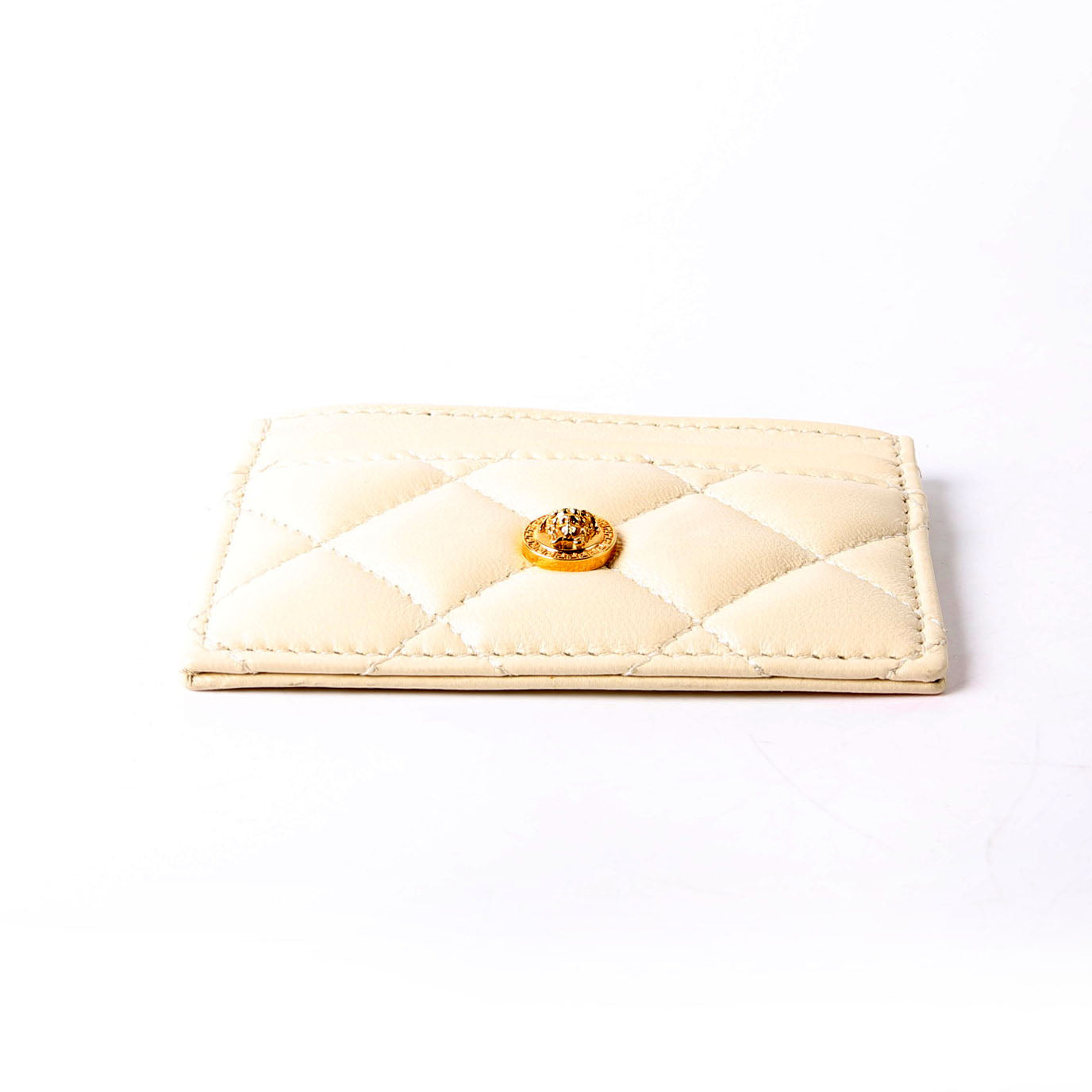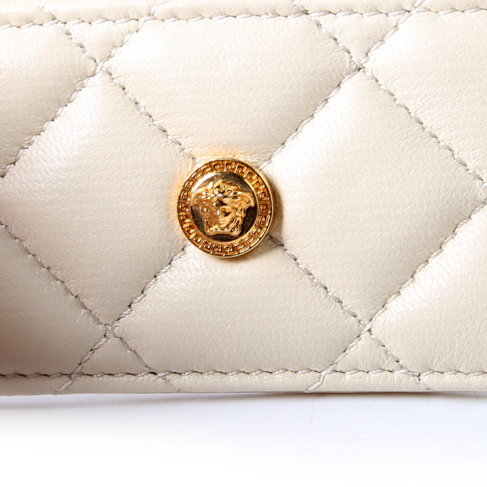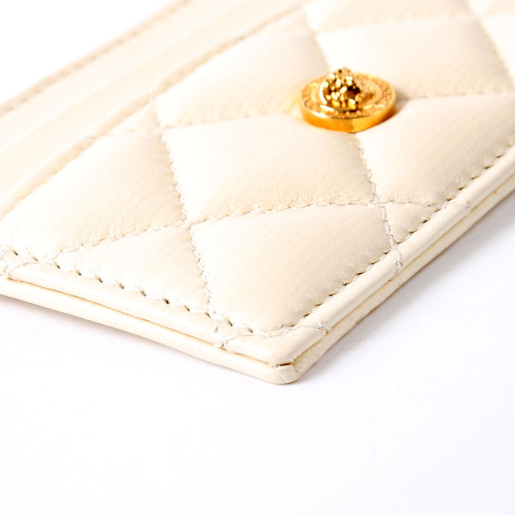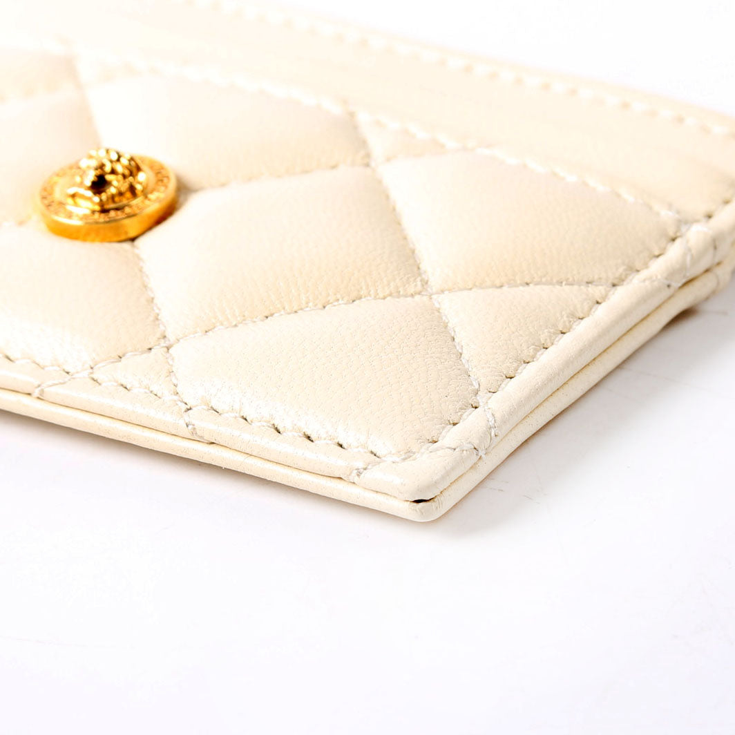 Medusa Biggie Quilted Leather Card Holder Cream