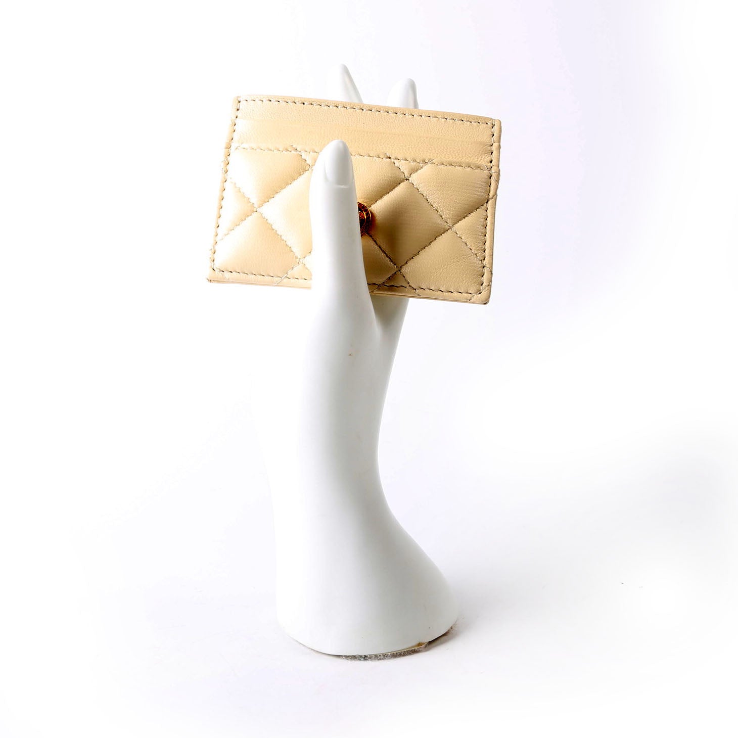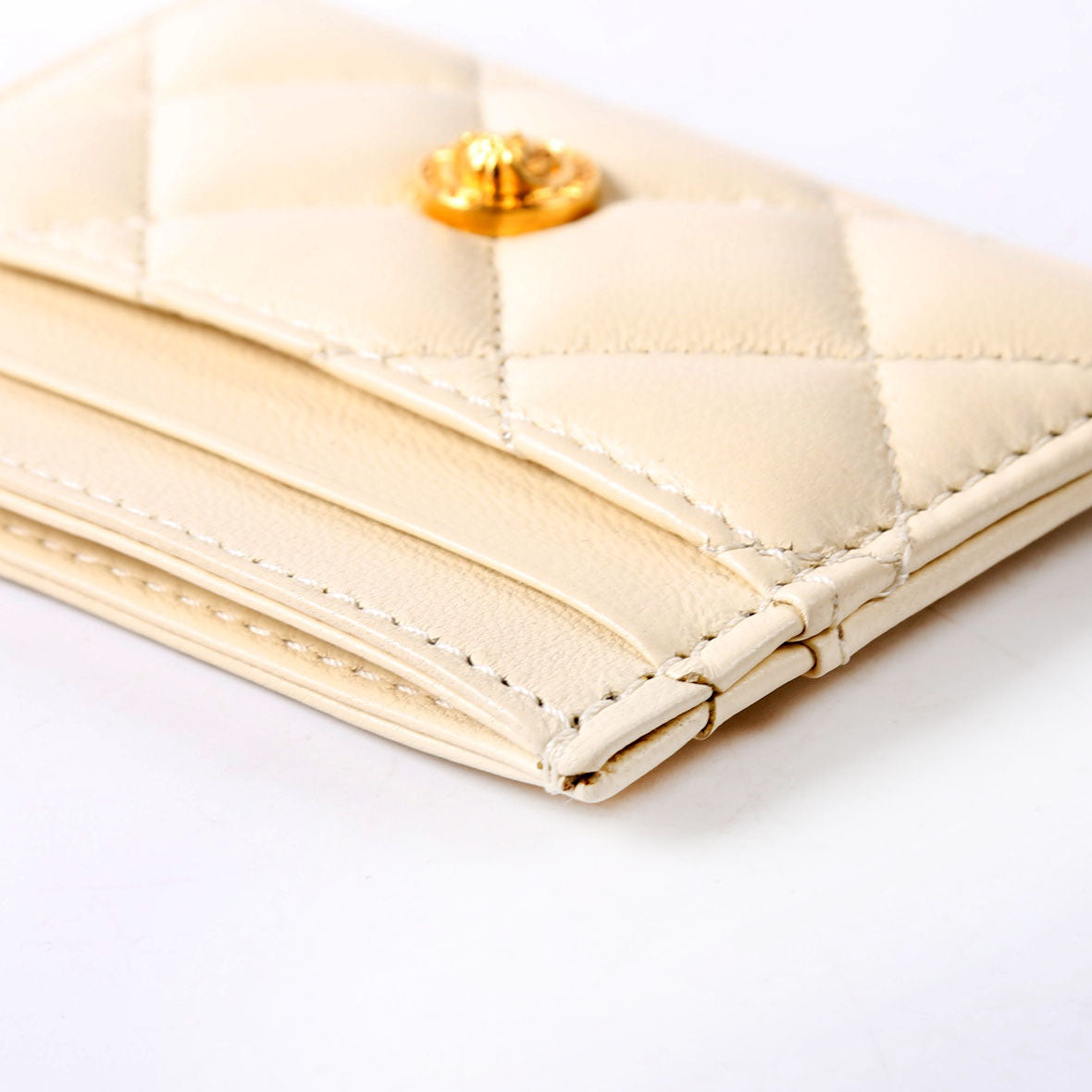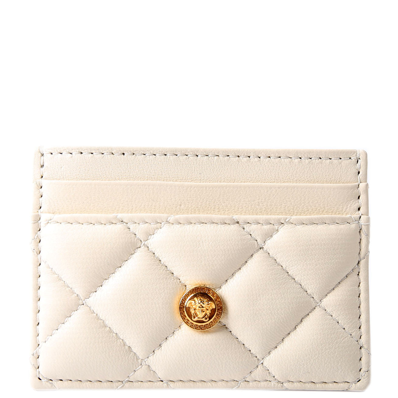 Medusa Biggie Quilted Leather Card Holder Cream