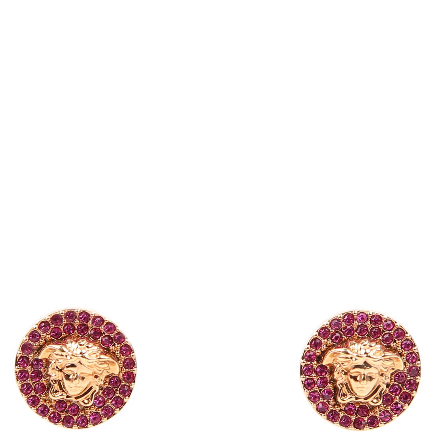 Medusa Crystal Round Stud Earrings Gold/ Pink