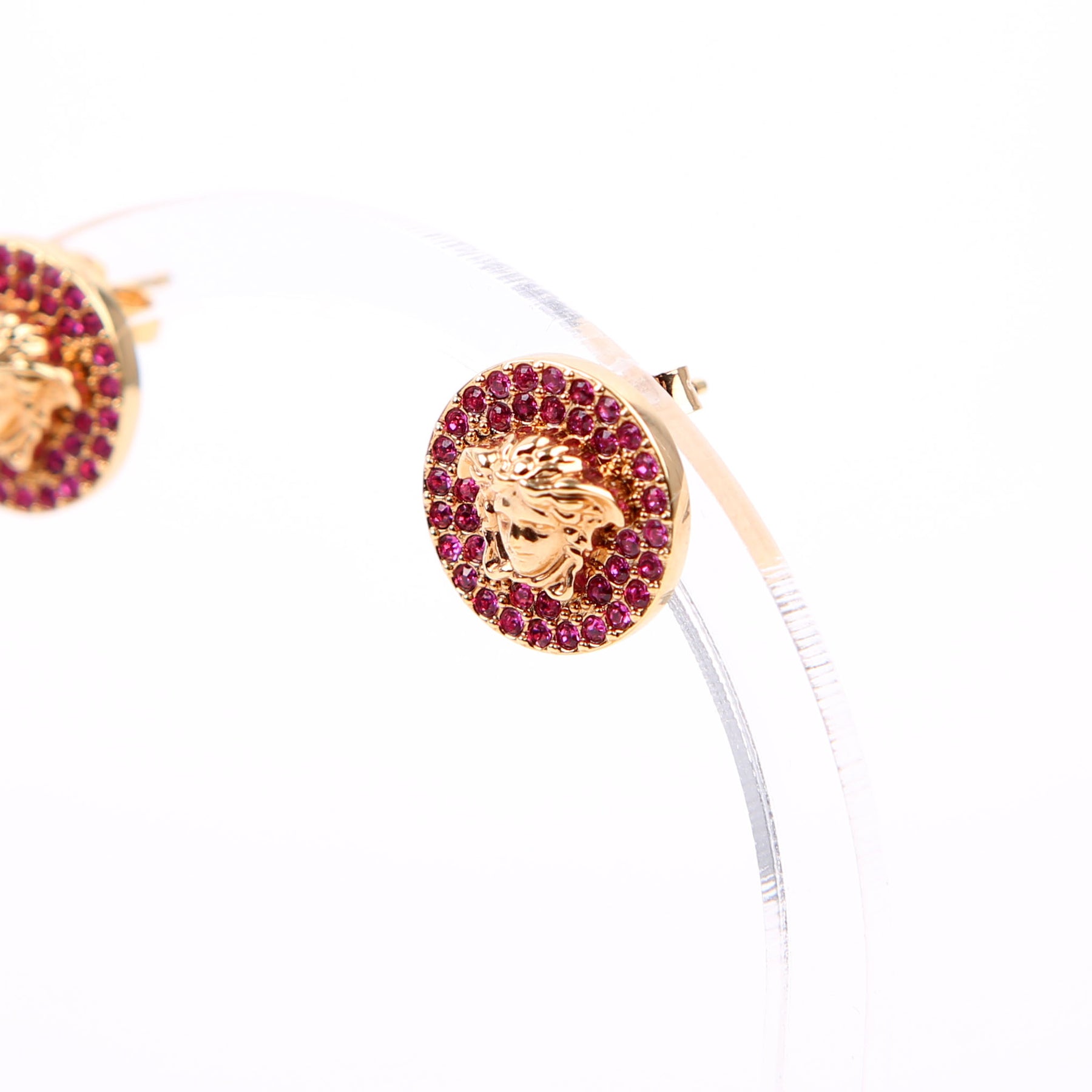 These pre-owned Versace Medusa Crystal Round Stud Earrings are guaranteed 100% authentic.