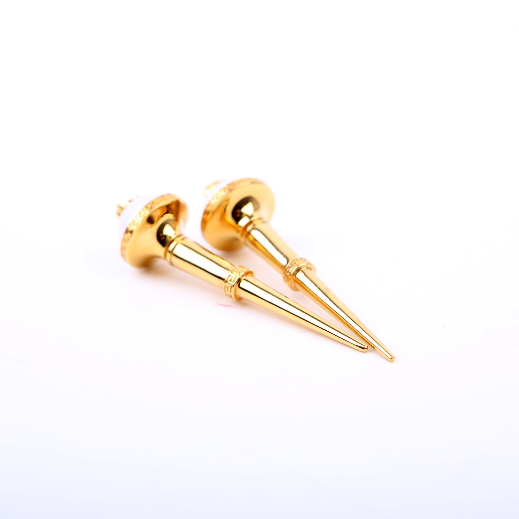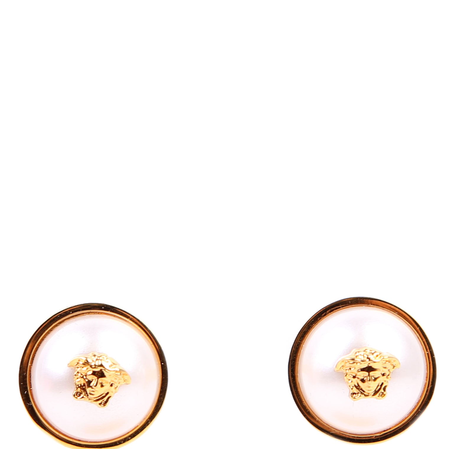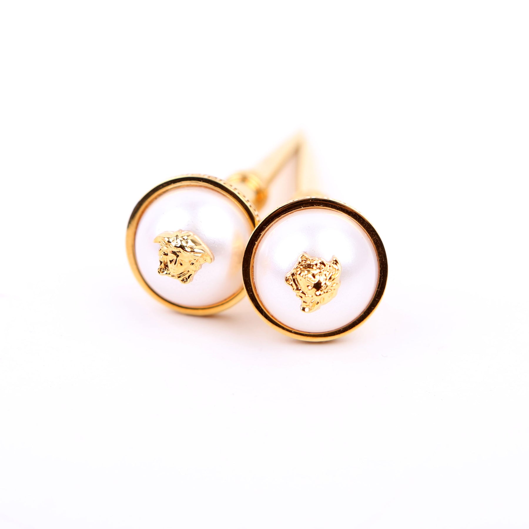 These pre-owned Versace Medusa Faux Pearl Spike Stud Earrings are guaranteed 100% authentic.