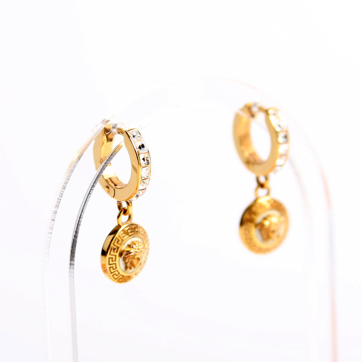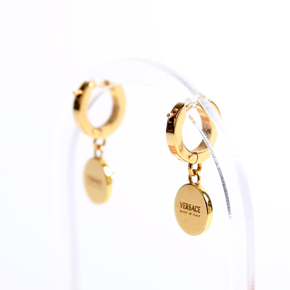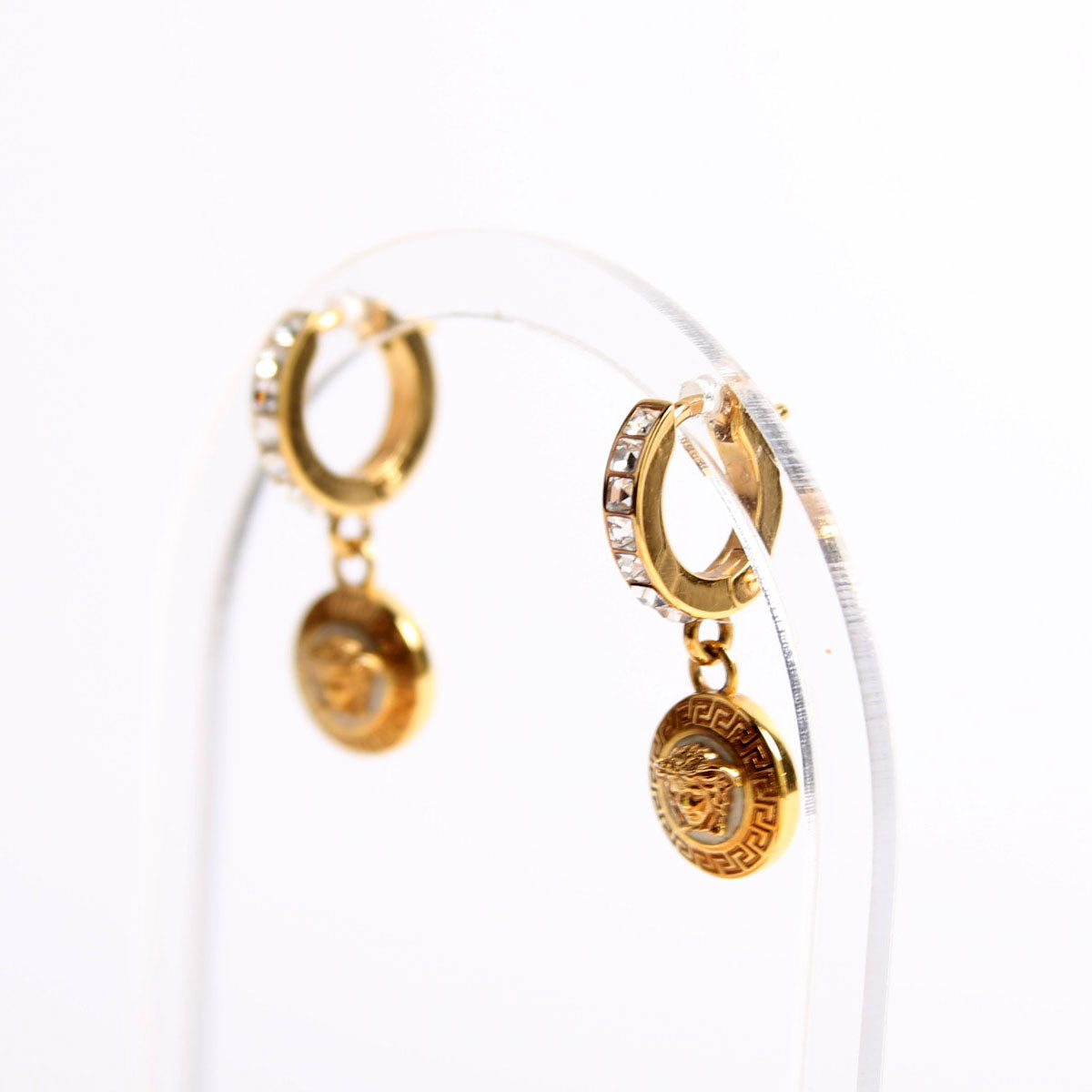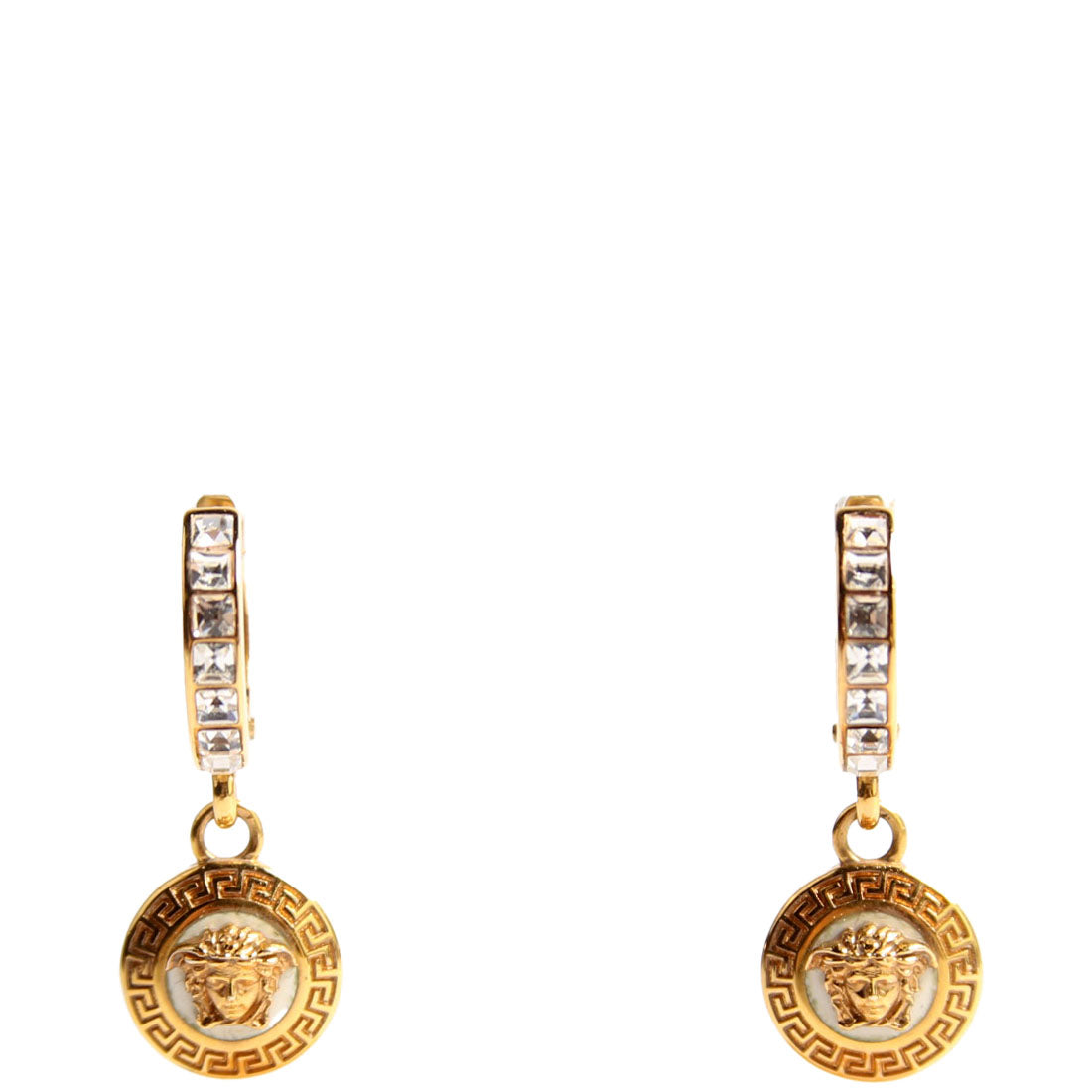 This pre-owned Versace Medusa Strass Drop Hoop Earrings is guaranteed 100% authentic.