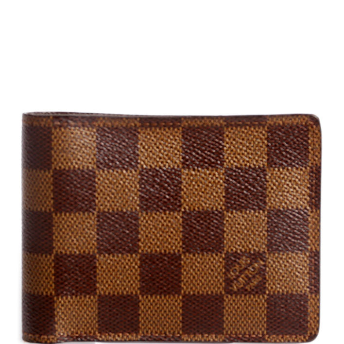 This pre-owned Louis Vuitton Mens Multiple Wallet is guaranteed 100% authentic. The exterior is in the classic Damier Ebene coated canvas.