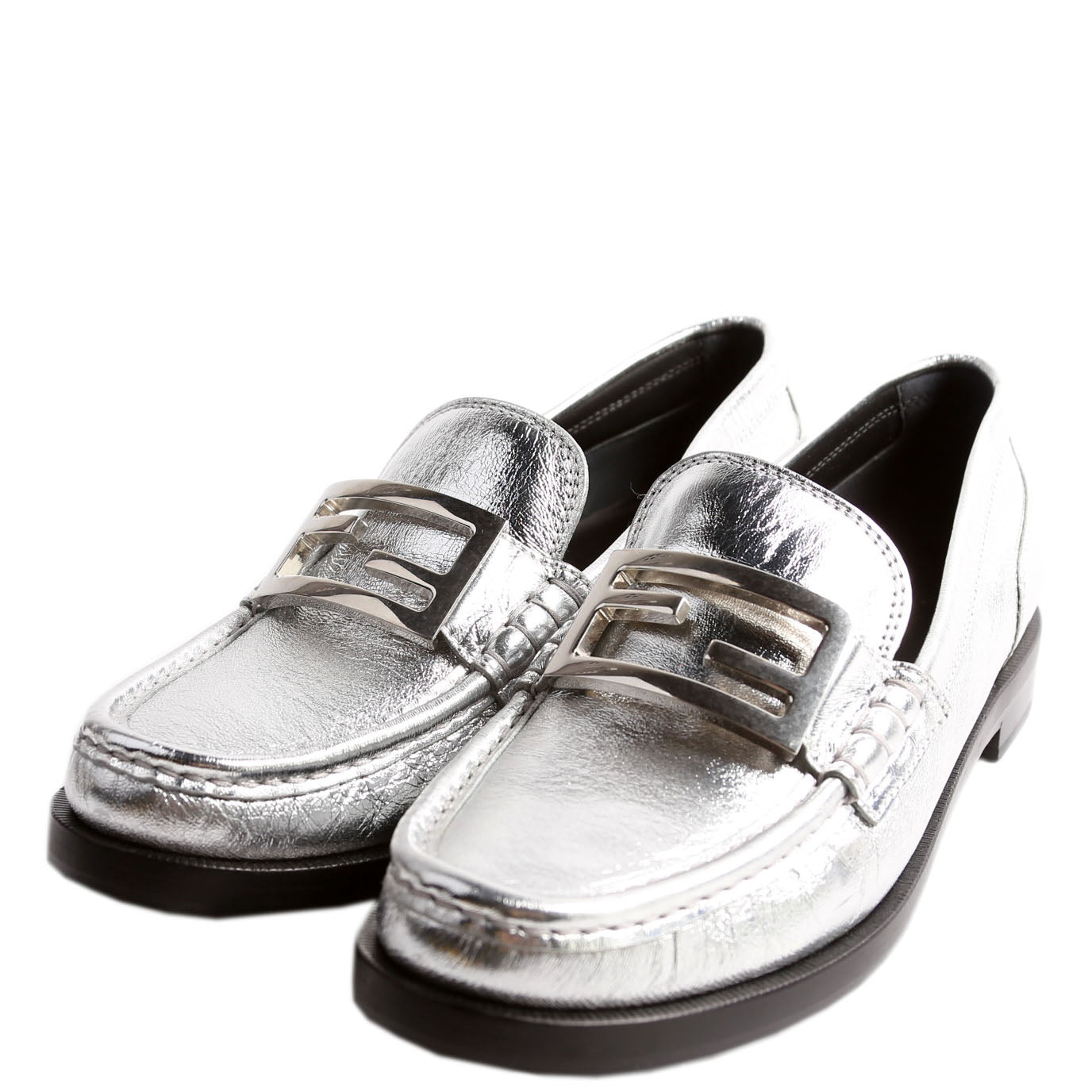 Metallic Vitello Baguette Loafers Size 39.5 Silver