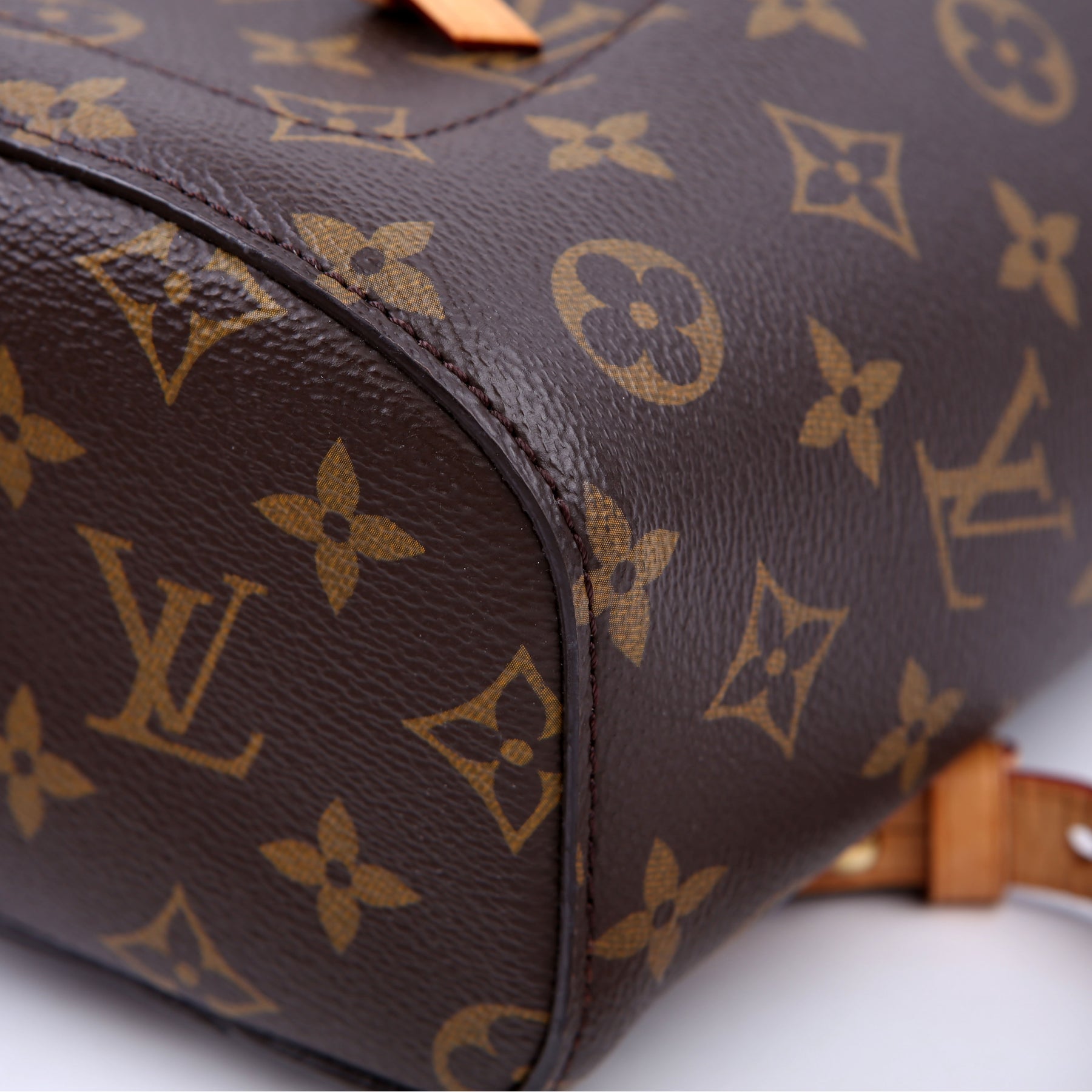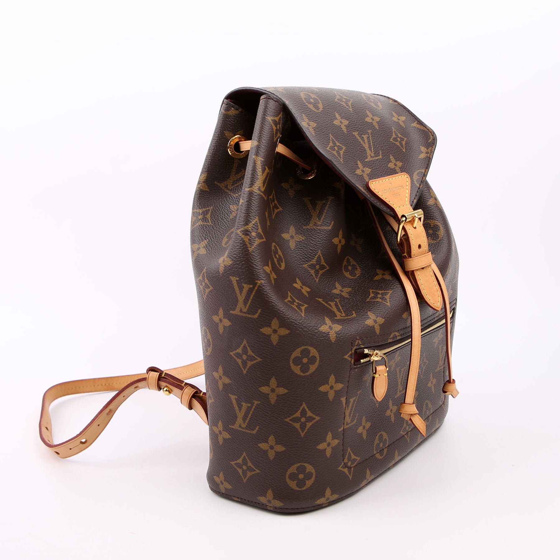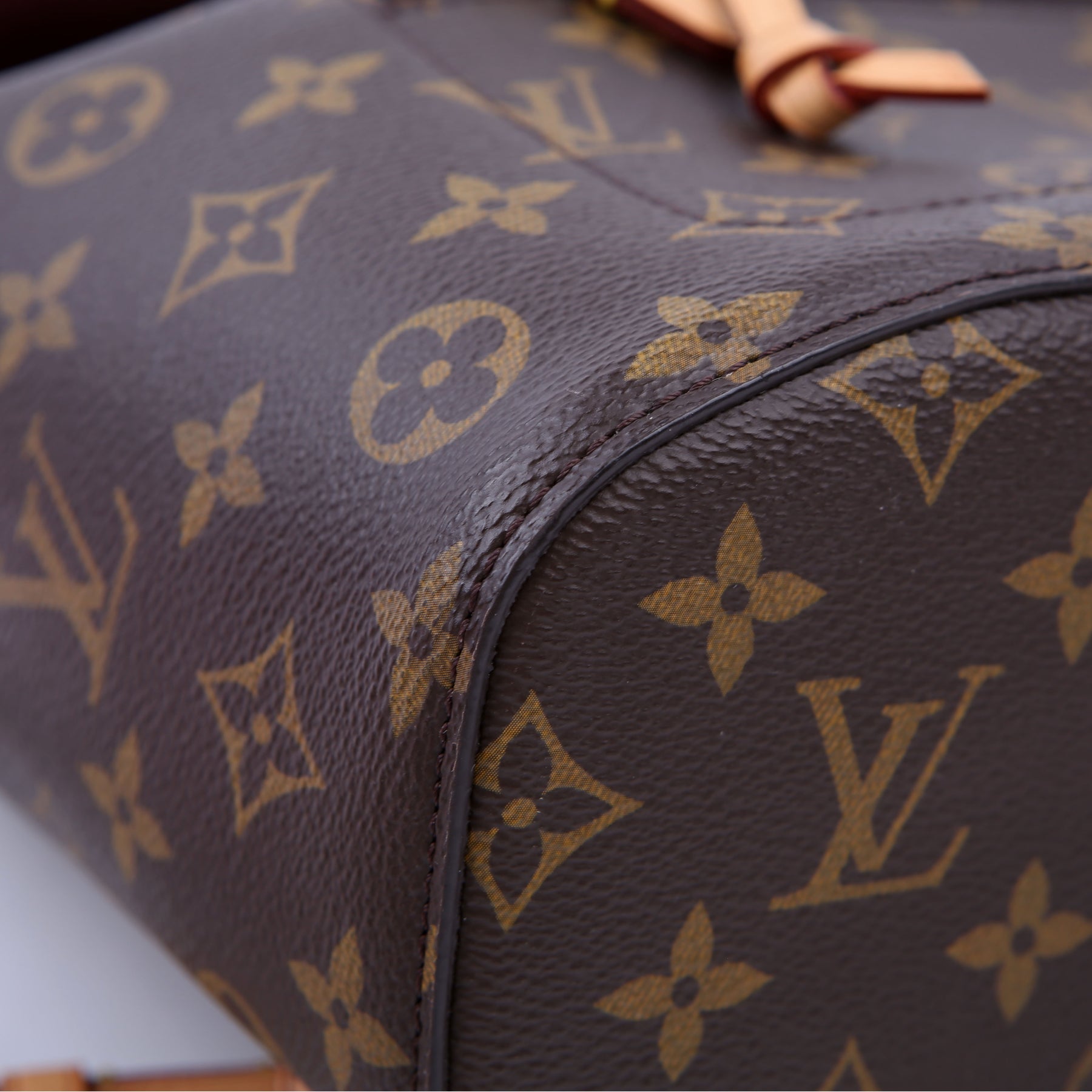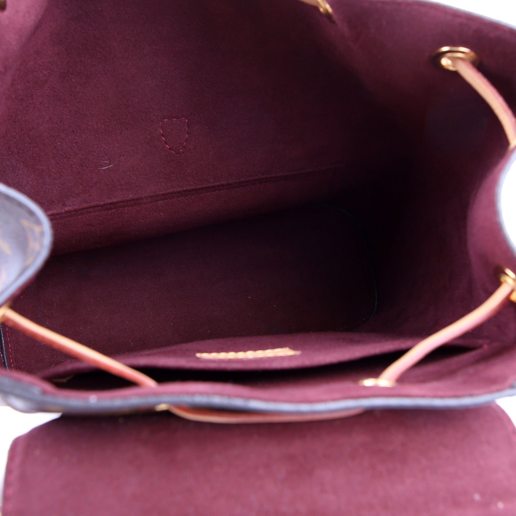 This pre-owned Louis Vuitton Montsouris NM is guaranteed 100% authentic. The exterior is in the classic Louis Vuitton Monogram coated canvas.